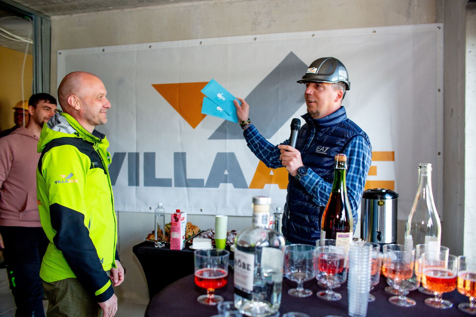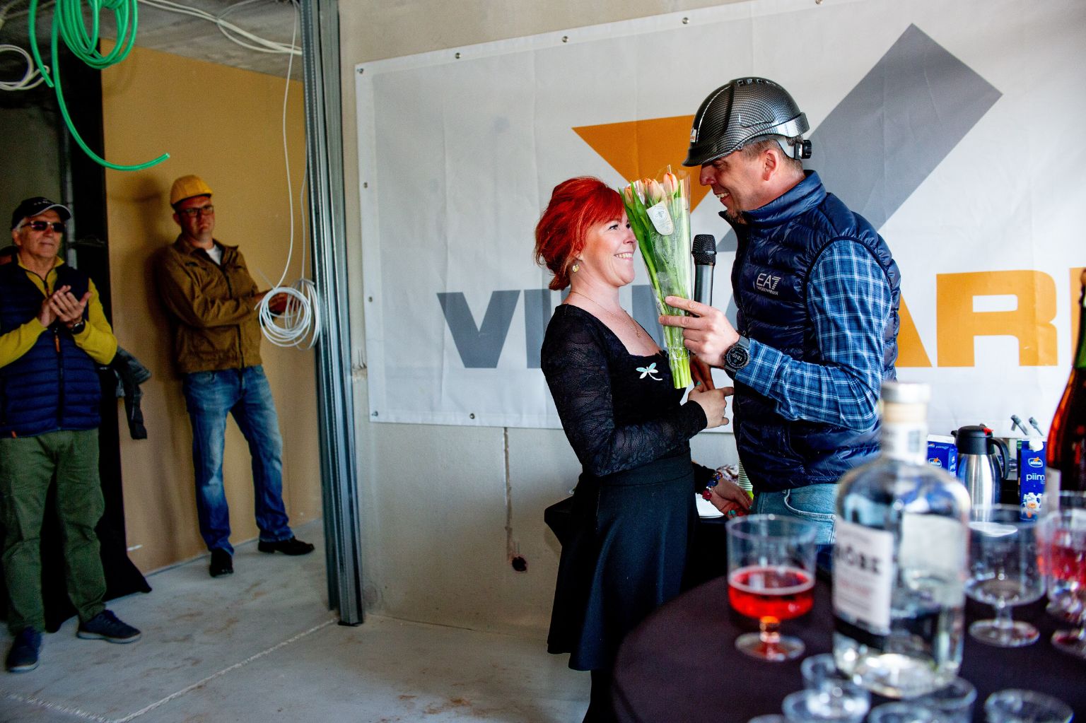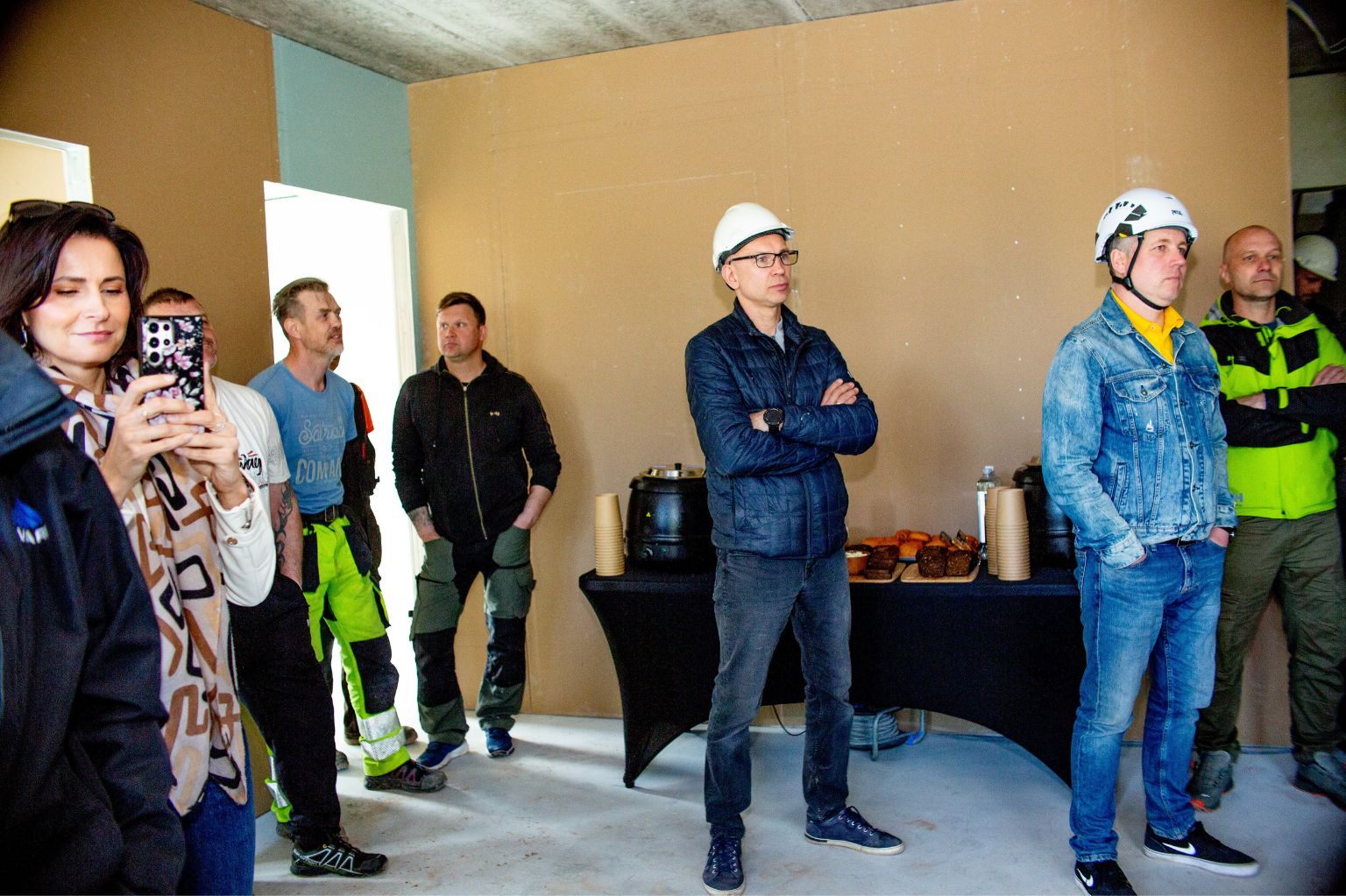 Reiko Kallion pidas kõne, kus tänas kõiki ehitajaid, objektijuhti ja projektijuhti. Mait Vahesaar ja Alar Tootmaa on igati välja teeninud väikese higetõmbepausi ning said arendajate poolt loa aeg korraks maha võtta ja nautida spaamõnusid. Lillekimbud ja soojad tänusõnad said oma pingutuste eest ka sisekujundaja Kristi Kass ning uute kodude müügimaakler Margit Vähi. Tüdrukud tänavad omakorda arendajaid selle armsa tähelepaneku eest.