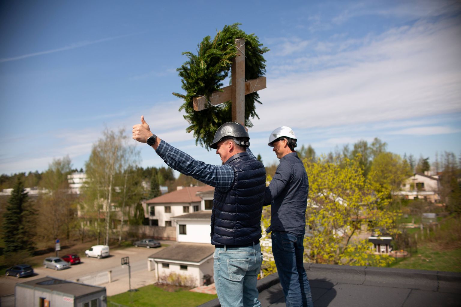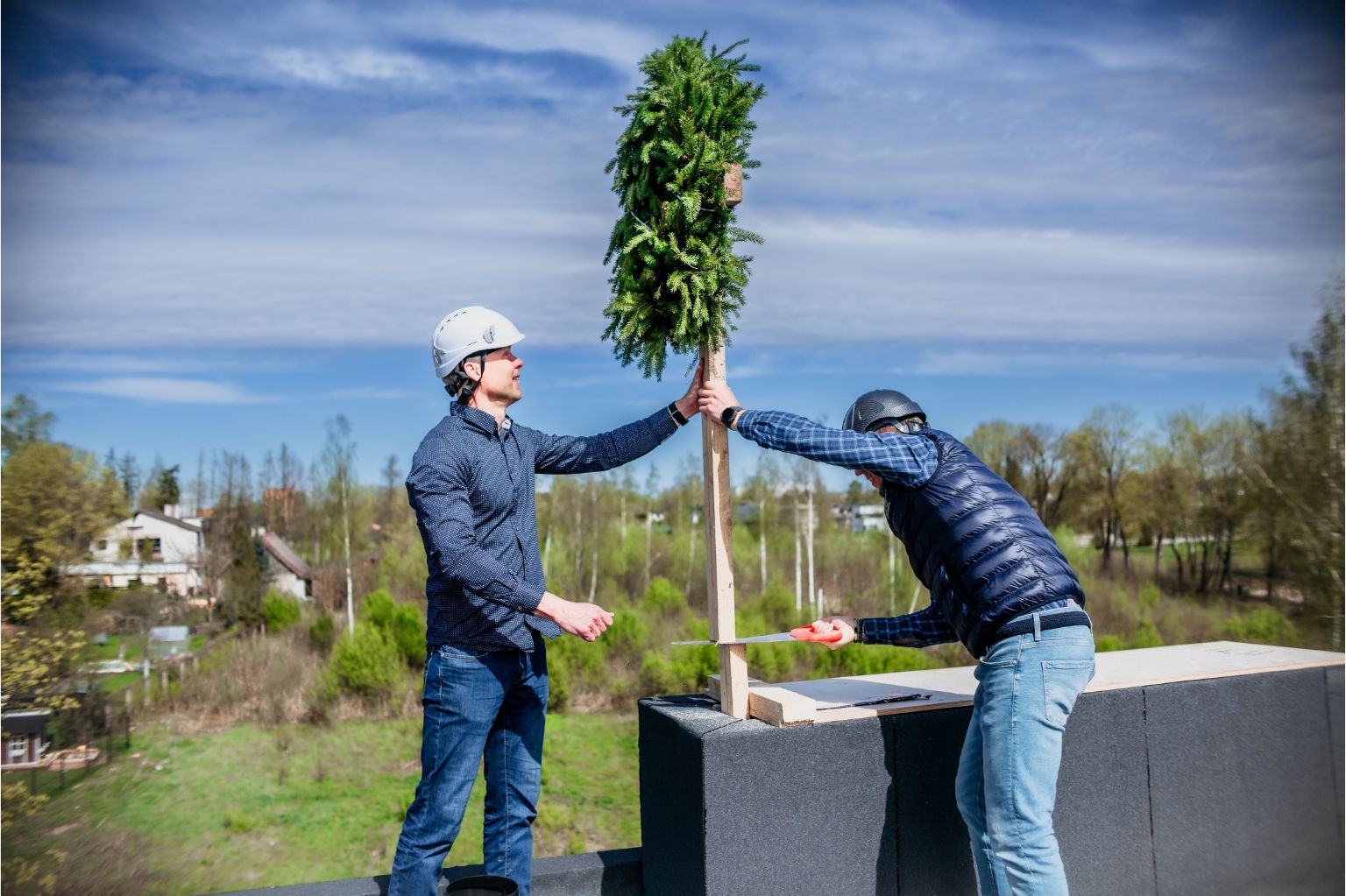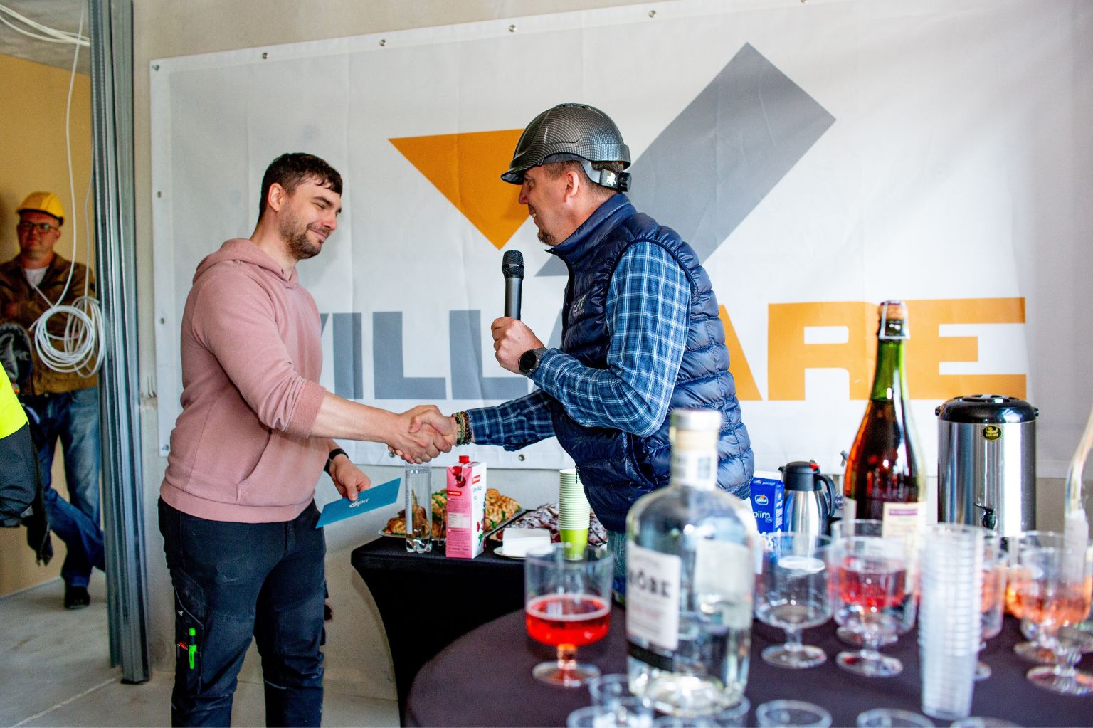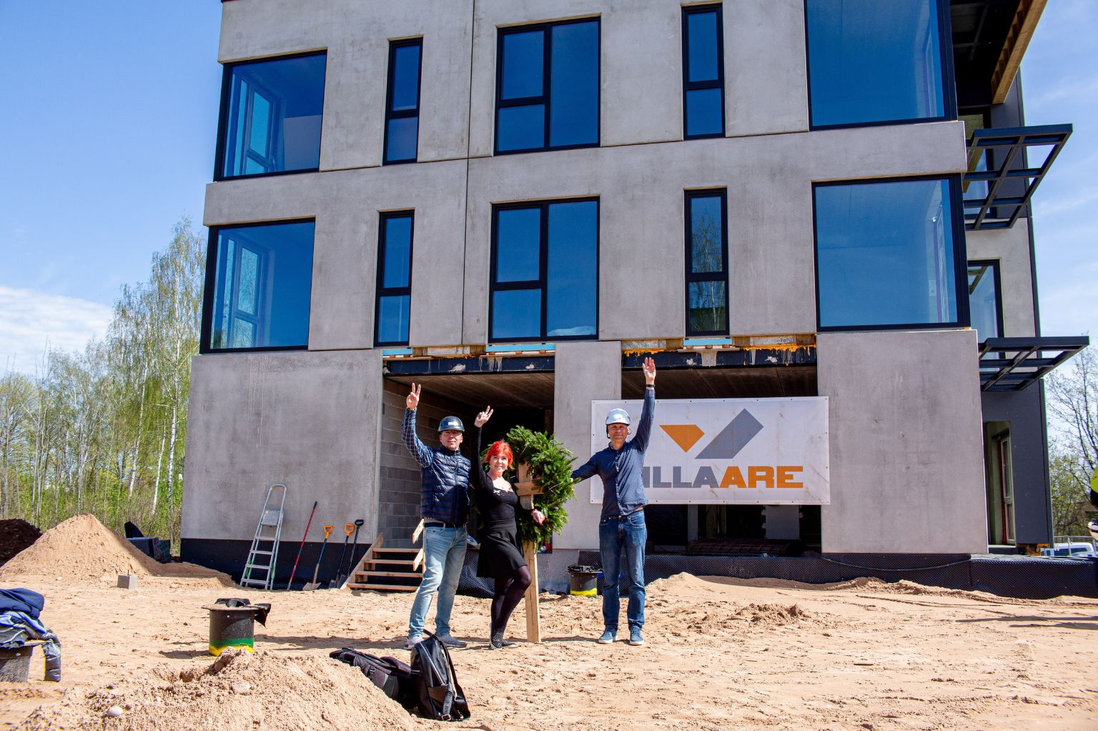 Reiko Kallion pidas kõne, kus tänas kõiki ehitajaid, objektijuhti ja projektijuhti. Mait Vahesaar ja Alar Tootmaa on igati välja teeninud väikese higetõmbepausi ning said arendajate poolt loa aeg korraks maha võtta ja nautida spaamõnusid. Lillekimbud ja soojad tänusõnad said oma pingutuste eest ka sisekujundaja Kristi Kass ning uute kodude müügimaakler Margit Vähi. Tüdrukud tänavad omakorda arendajaid selle armsa tähelepaneku eest.