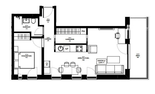 For sale apartment, 2 room - Ihaste tee 2f-27, Annelinn, Tartu linn, Tartu linn, Tartu maakond