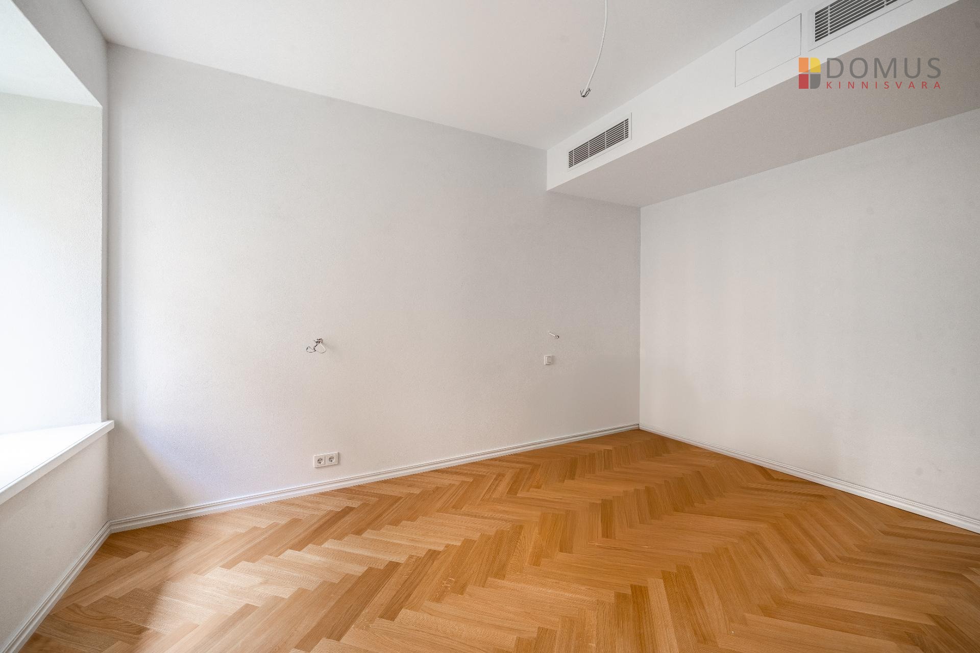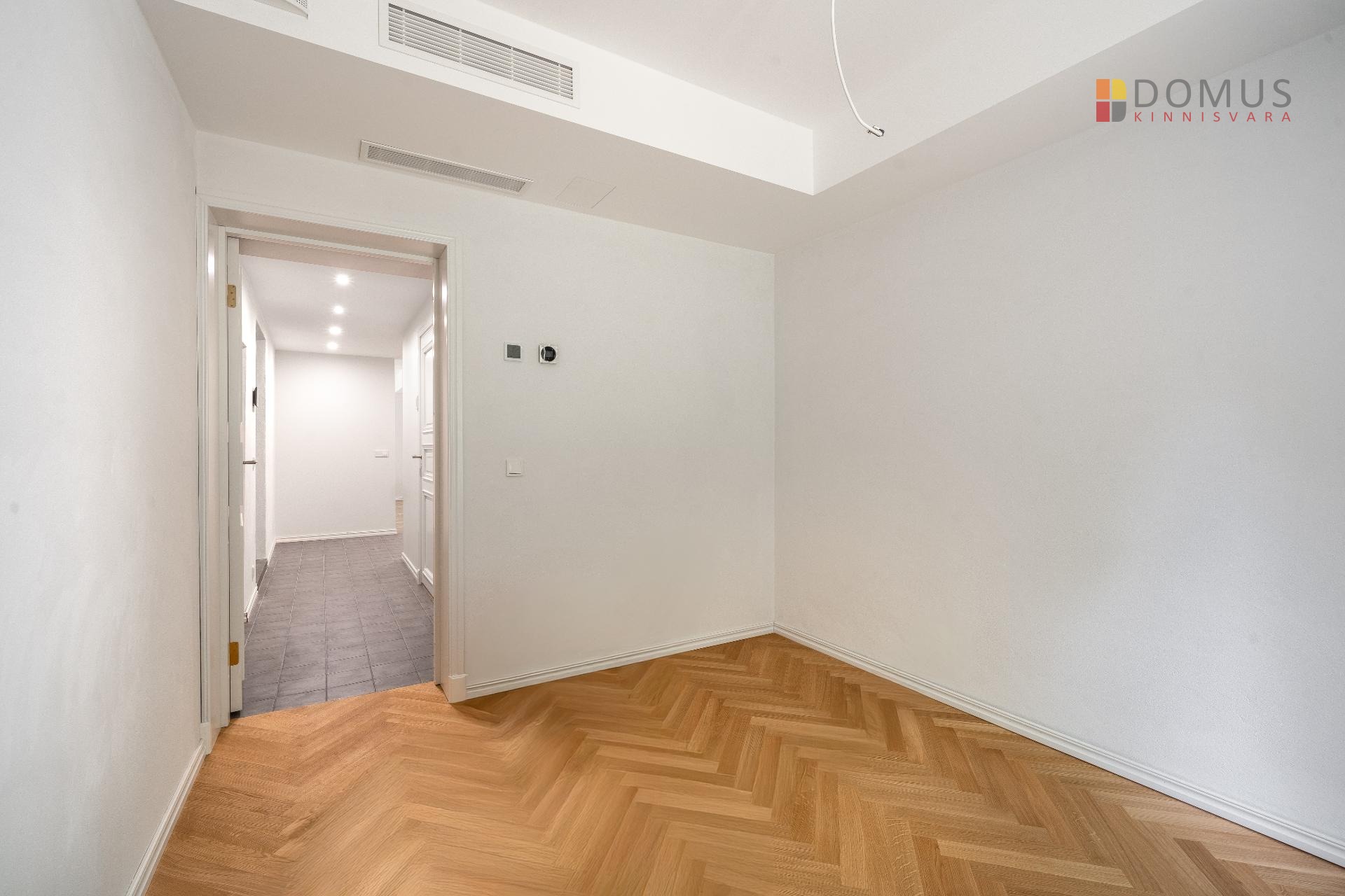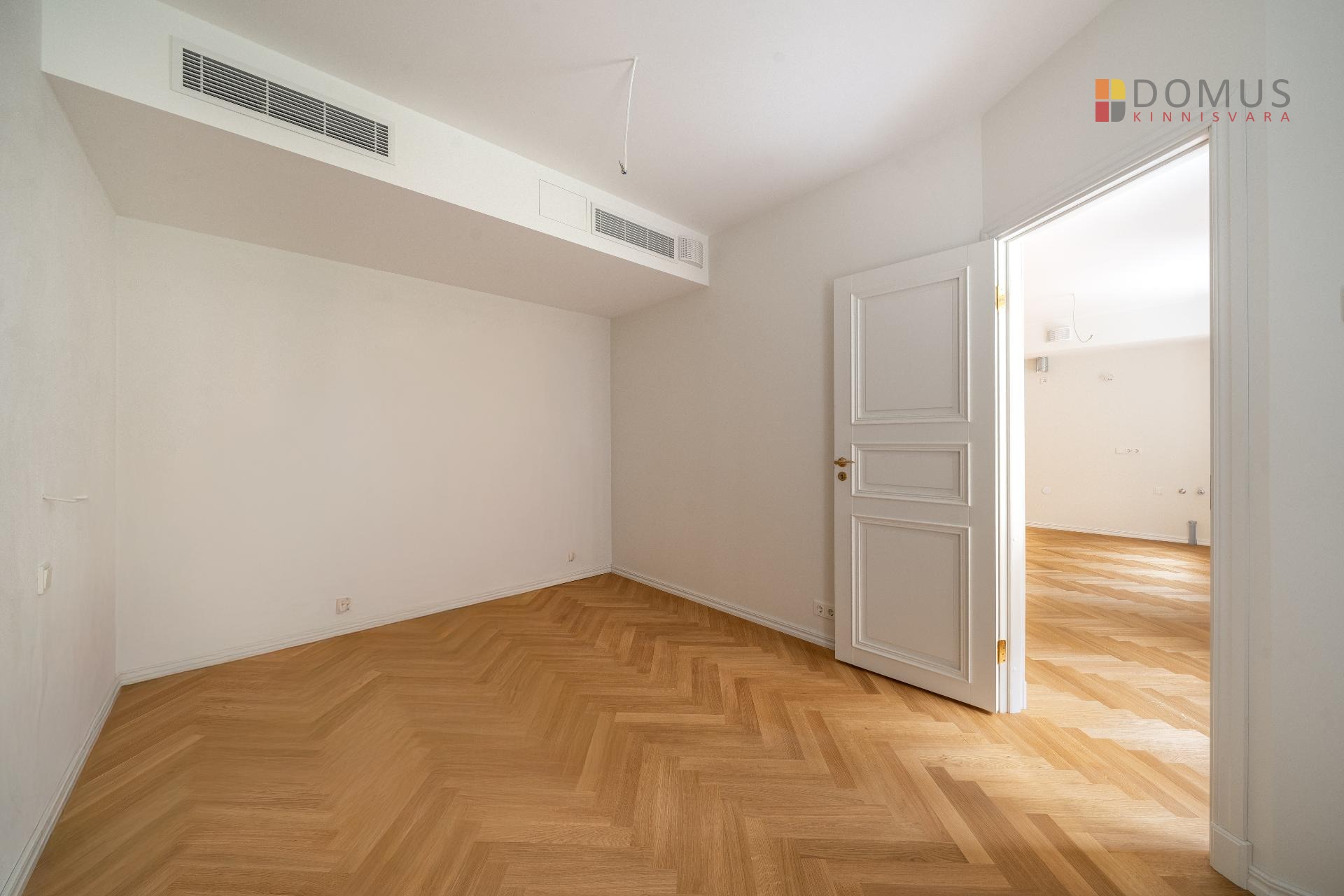 The building has district heating from Utilitas, with heat delivered to the rooms through underfloor heating. This means there are no radiators in the apartments, allowing more freedom in furniture arrangement and an authentic interior consistent with the era before radiators existed. A cooling system with a ceiling unit reaching every room is already installed — definitely an added comfort during extreme heatwaves.