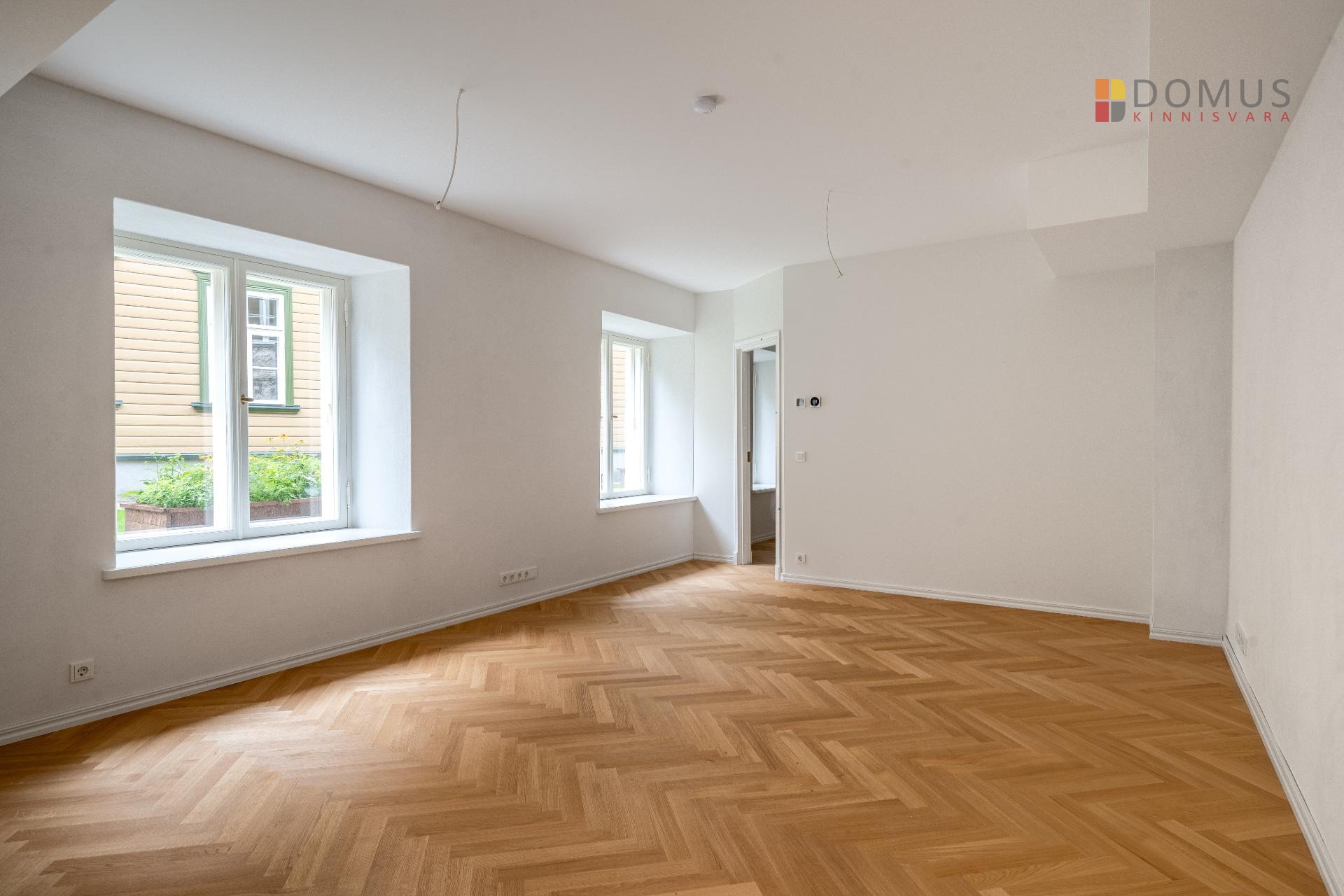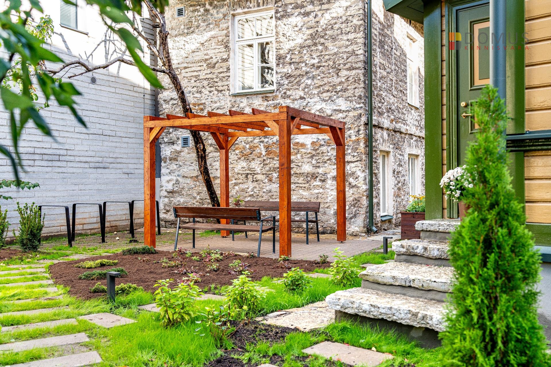 A historic wooden villa and limestone courtyard house with a cozy yard, hidden from the city noise yet situated behind the downtown towers! Thamme Villa brings you all the charms of living in the city center while offering a peaceful retreat — natural materials, high ceilings, and exceptionally large wooden windows create a spacious and homely atmosphere.
