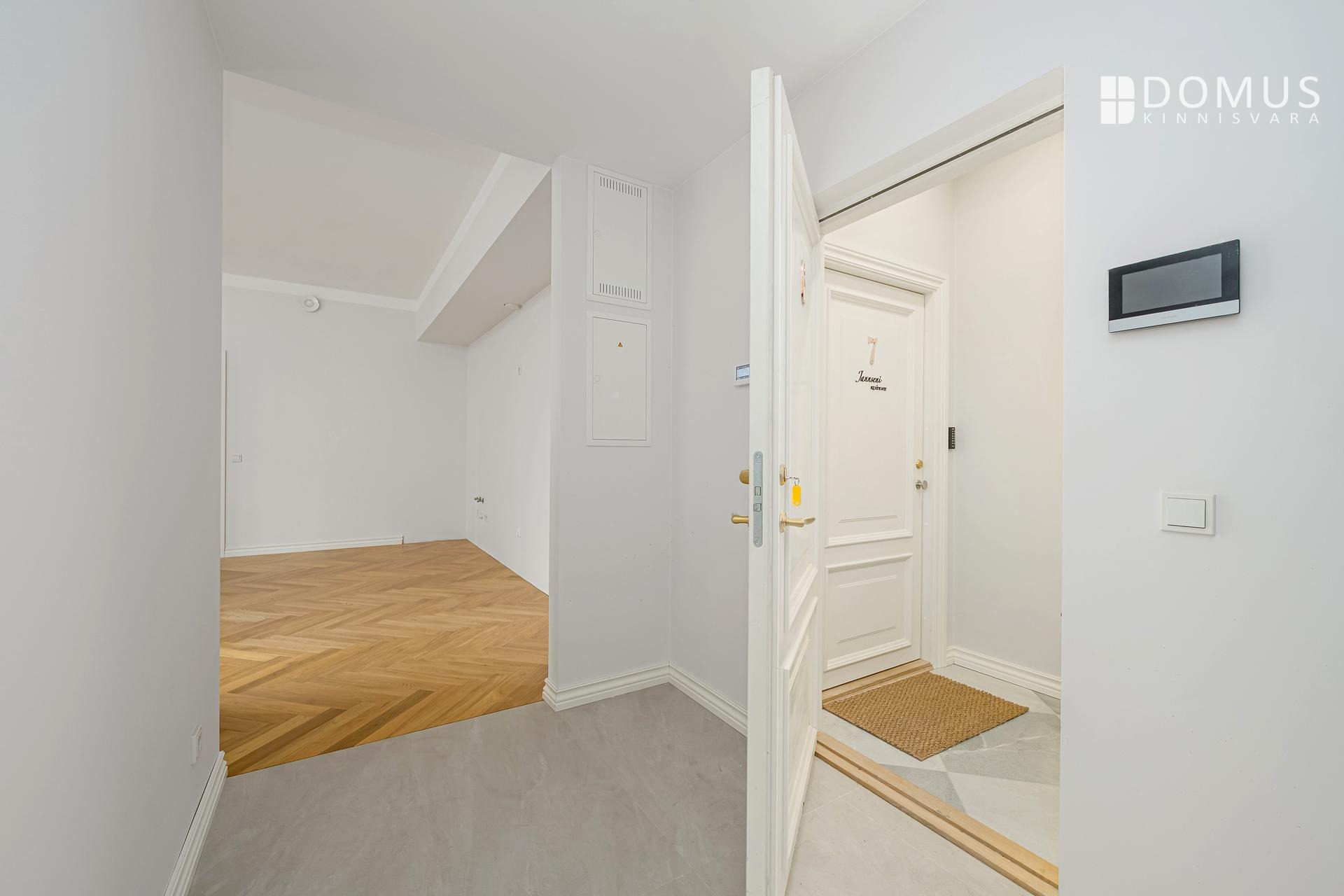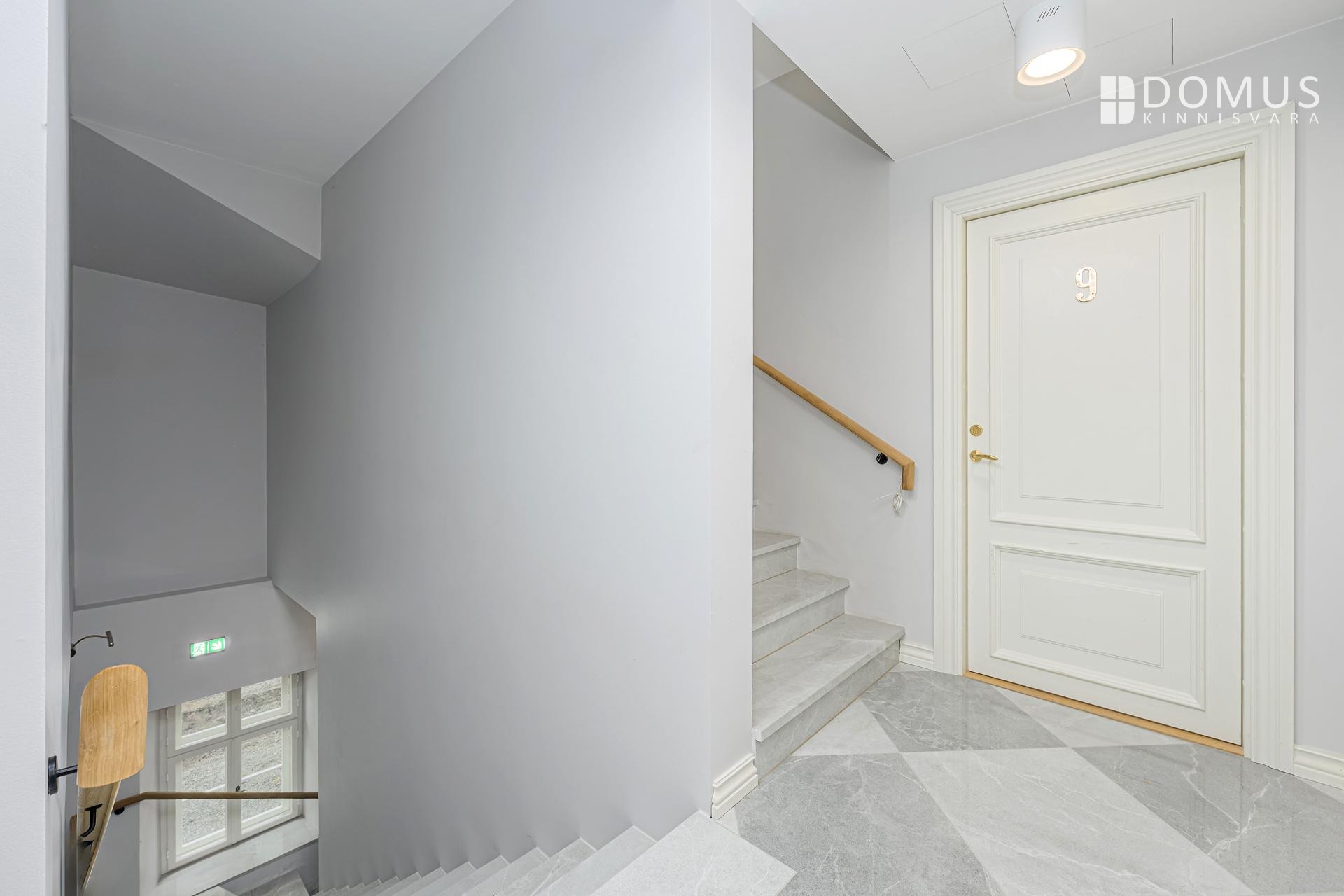The interior finishes use high‑quality premium‑class materials that suit this historic and distinguished building.