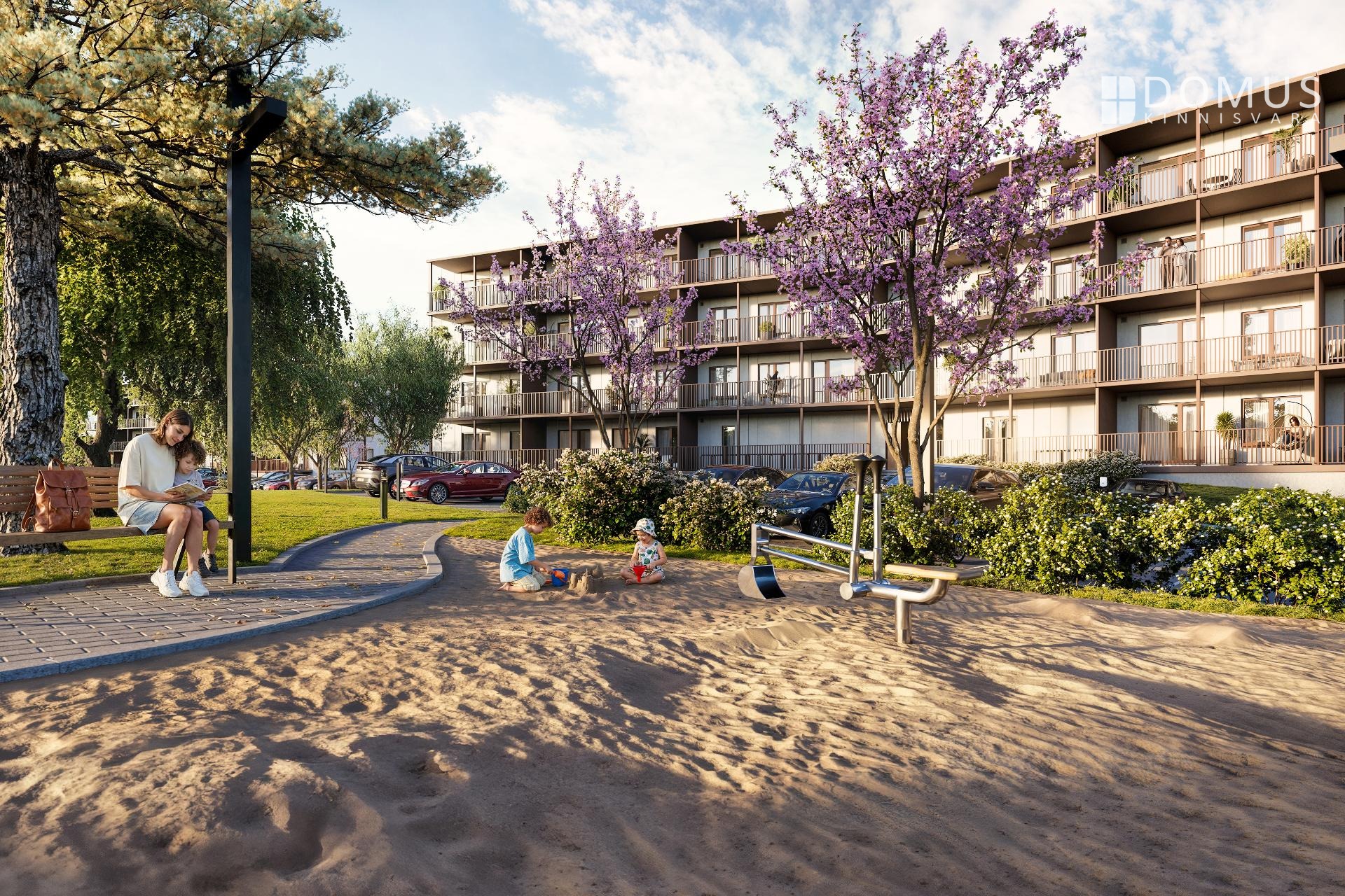 The new buildings will offer 100 spacious 2–4 room apartments. The architecture is modern and the surrounding area will feature landscaped courtyards, relaxation areas, and children’s playgrounds, creating a pleasant and comfortable living environment.