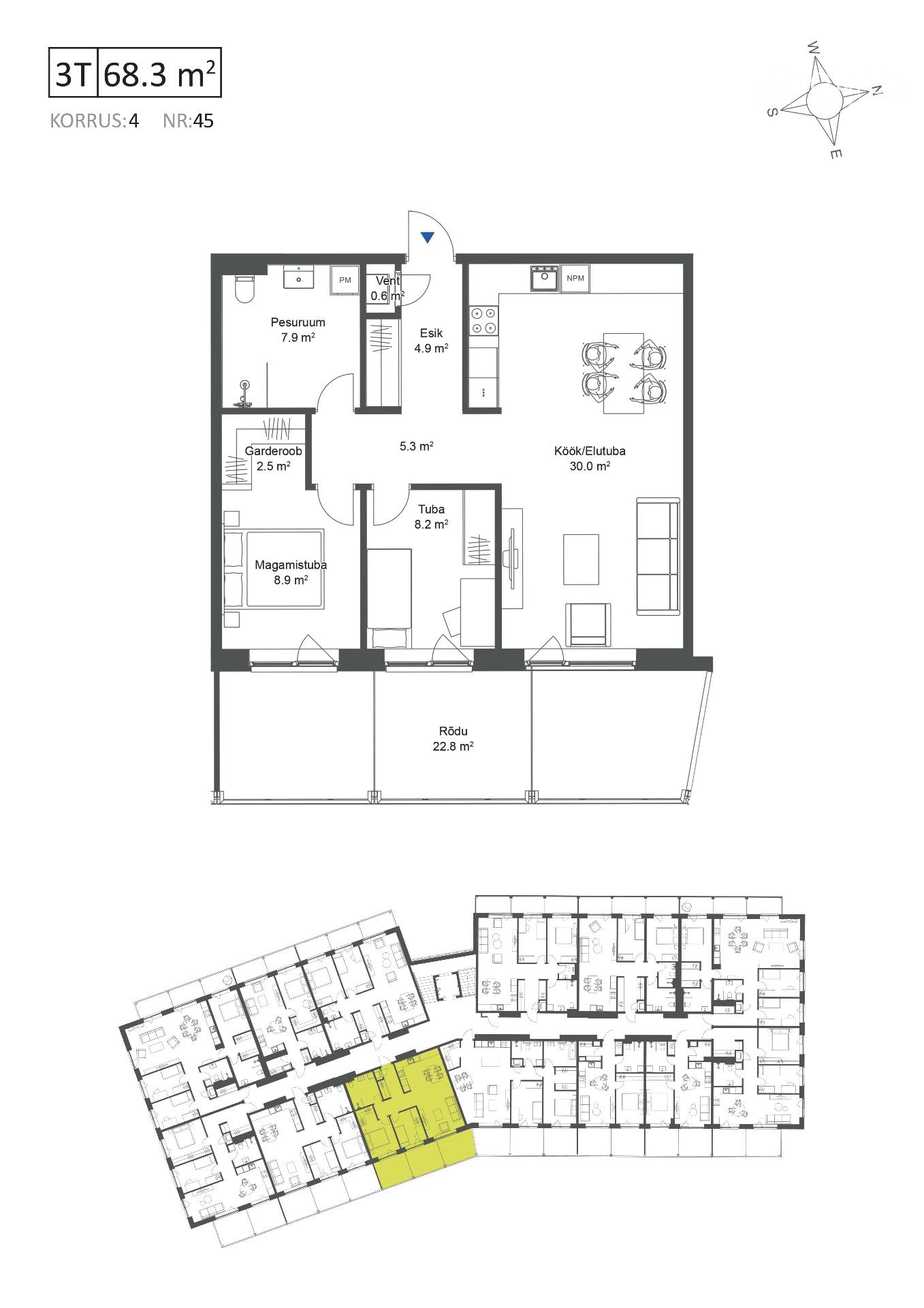 For sale apartment, 3 room - Kotermaa tänav 5-45, Haabersti linnaosa, Tallinn, Harju maakond