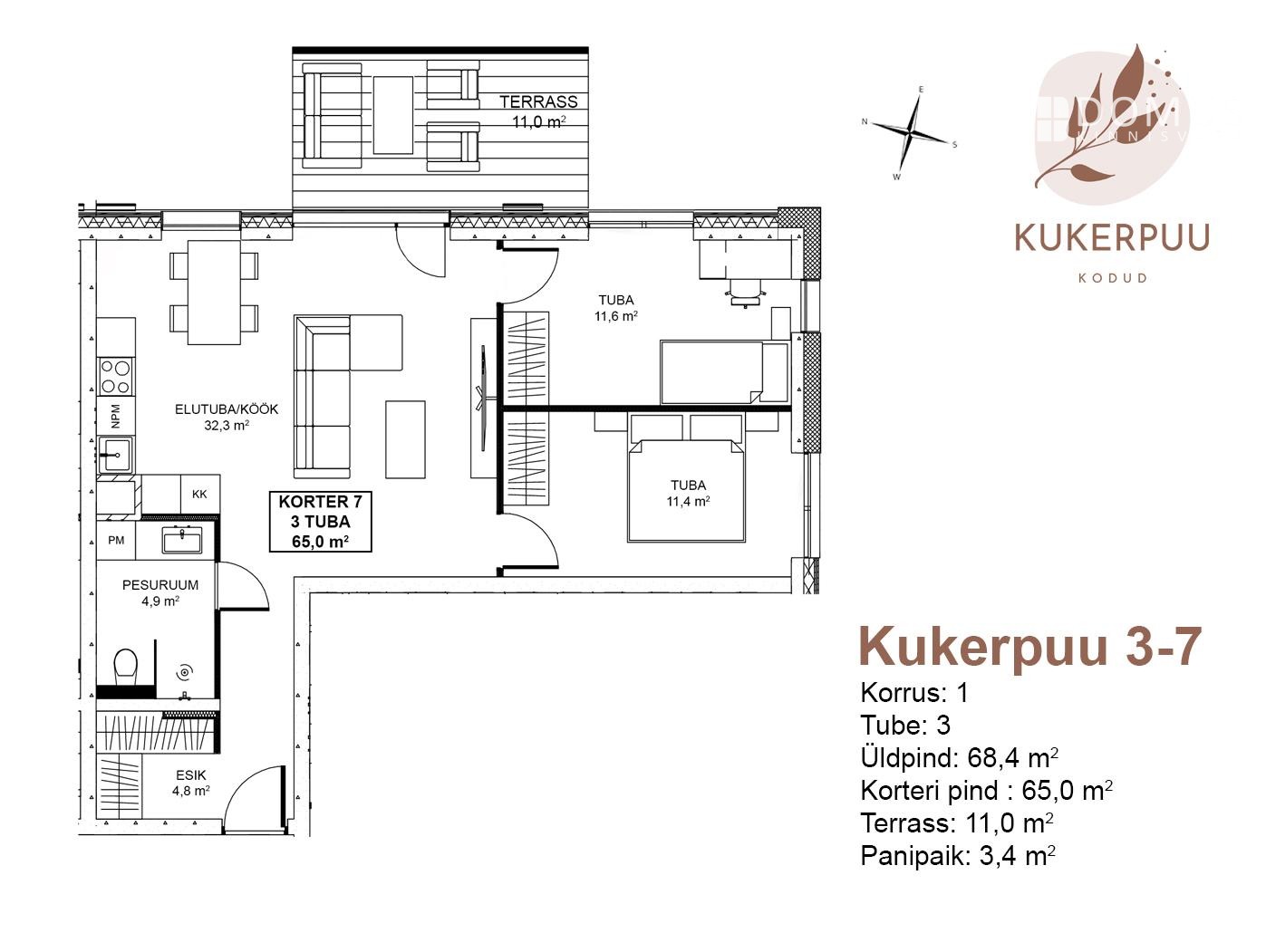 For sale apartment, 3 room - Kukerpuu tn 3-7, Raadi-Kruusamäe, Tartu linn, Tartu linn, Tartu maakond