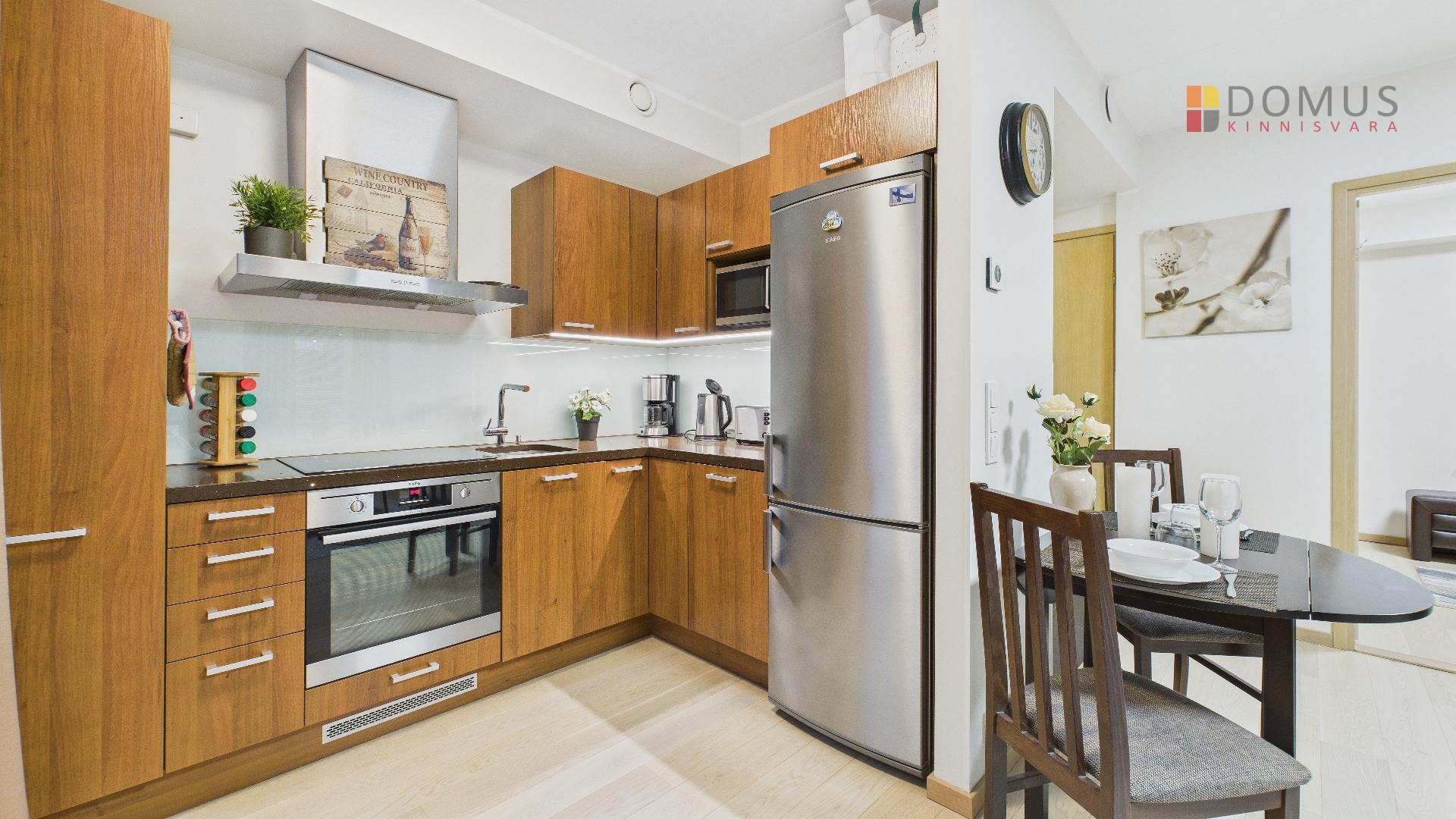 The residential complex, developed by YIT in 2018, consists of three buildings and includes a beautifully landscaped courtyard with several recreational areas and children's playgrounds.