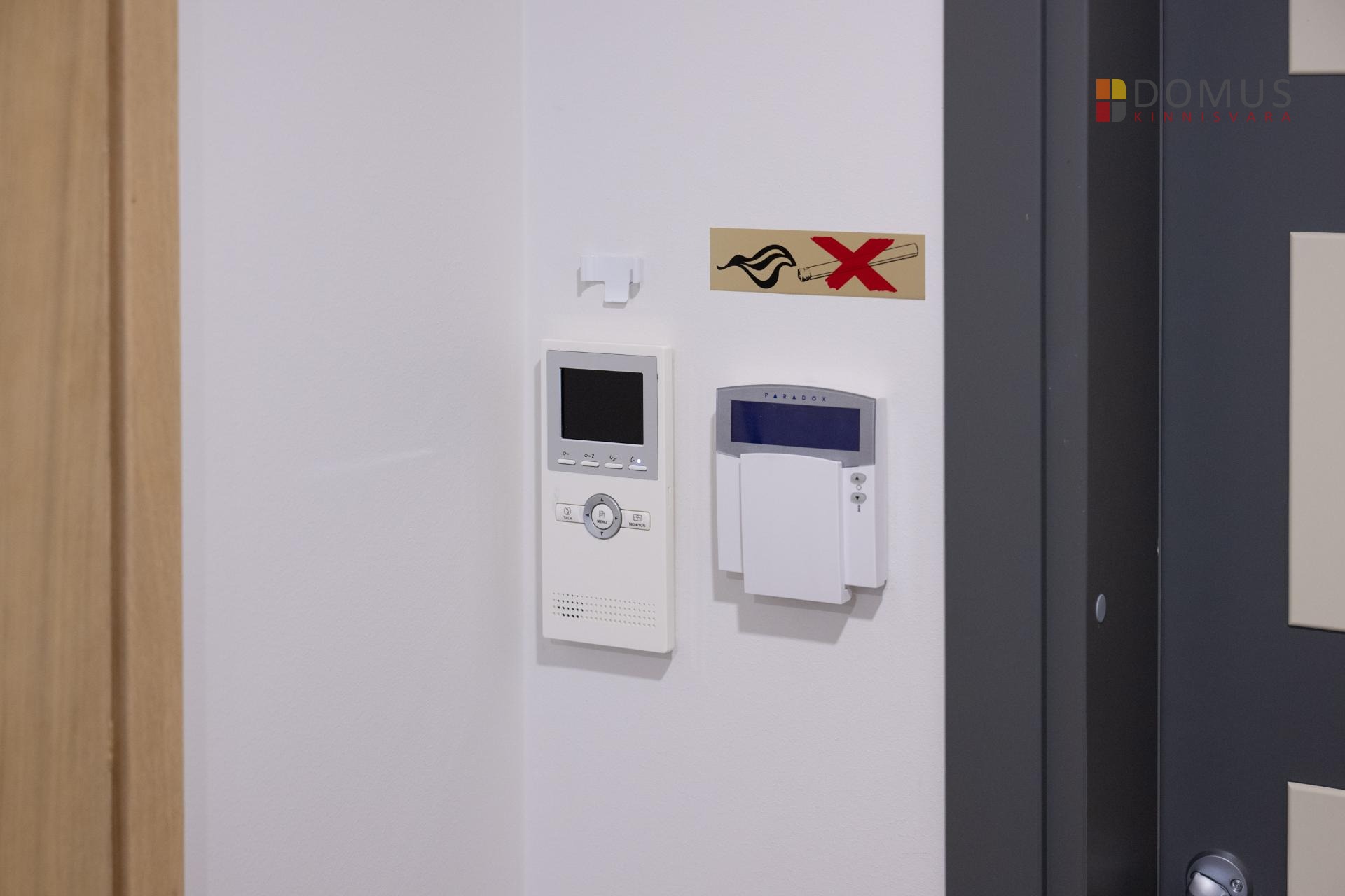 The apartment features heat recovery ventilation, with the ventilation unit discreetly placed inside a closet in the entrance hall. The bathroom also has a separate exhaust ventilation system.
