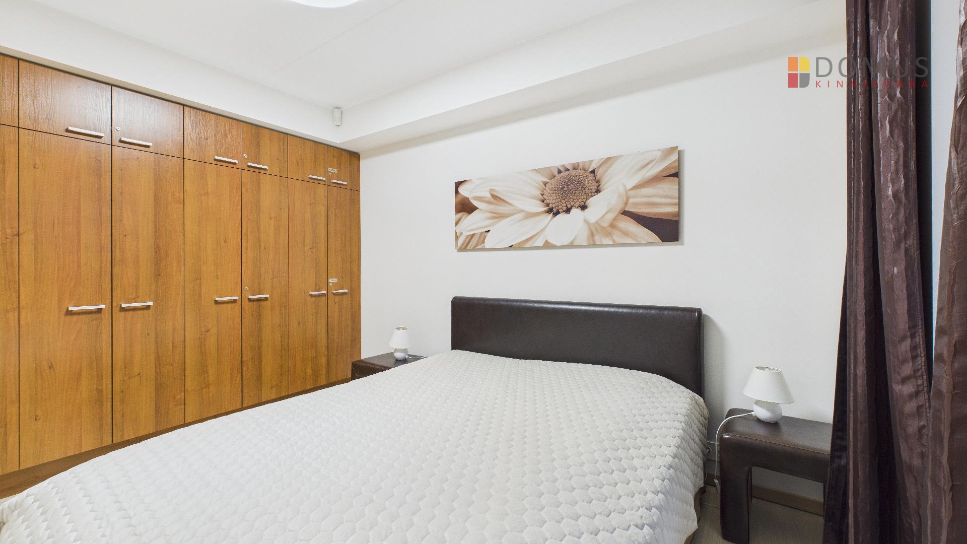 Both the bedroom and the entrance hall have spacious, full-height built-in wardrobes. The kitchen is custom-made and equipped with high-quality appliances, including an AEG refrigerator, oven, induction stove, and dishwasher.