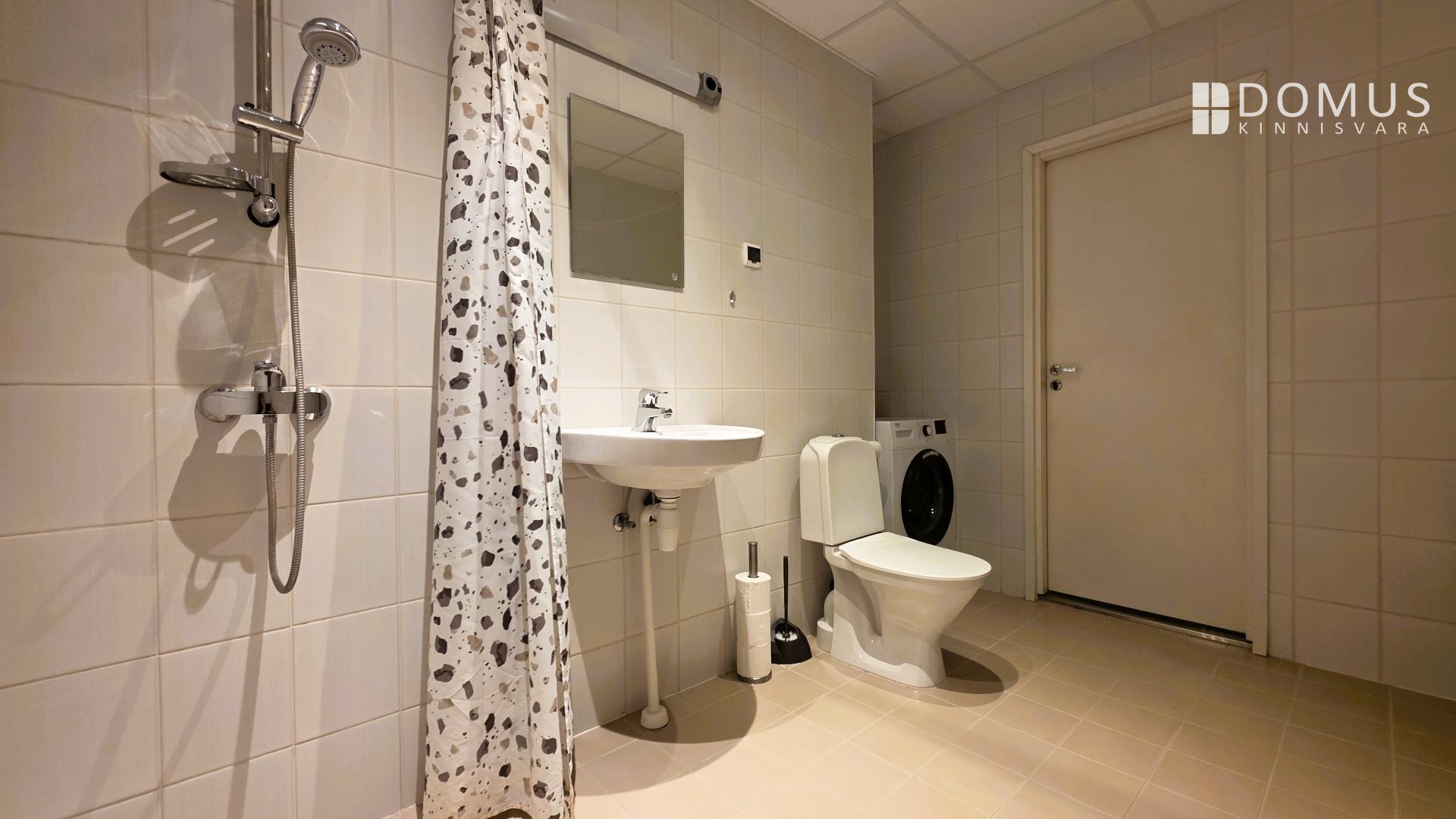 washing machine, furniture, parquet, refrigerator, shower