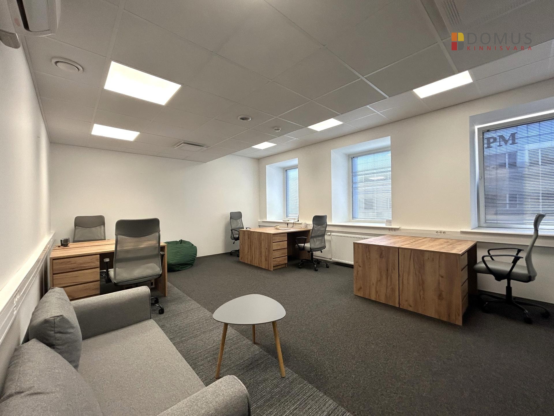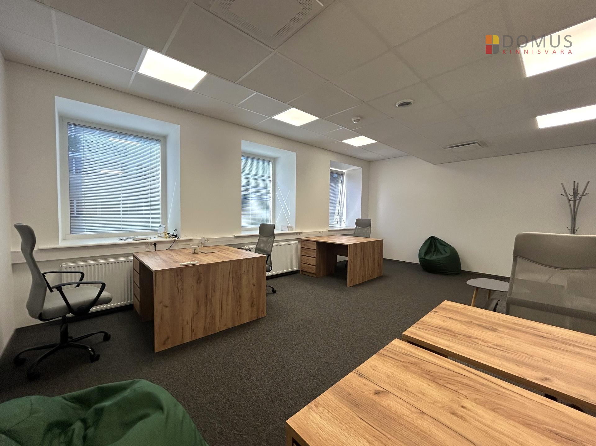 For rent, a completely new and up-to-date technical system consisting of 3 rooms, completed in the spring, in the heart of the city. Modern technical systems ensure an optimal indoor climate in office premises at any time of the year. The space for rent consists of two separate rooms, the smaller of which is 20.1 m², which can be used as a meeting room or an office. The larger room is 62.8 m², in which there is also a separate windowless area that could be used as a conference room or storage space. In addition, it is possible to rent shared meeting rooms on the second floor, which are equipped with a kitchenette, on an hourly basis.