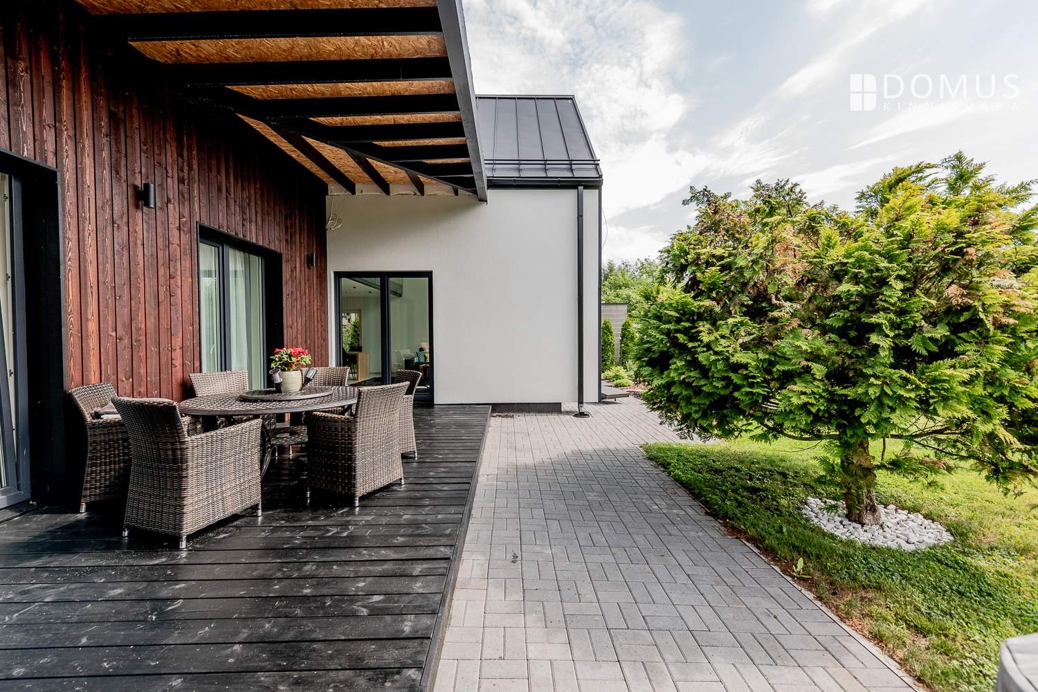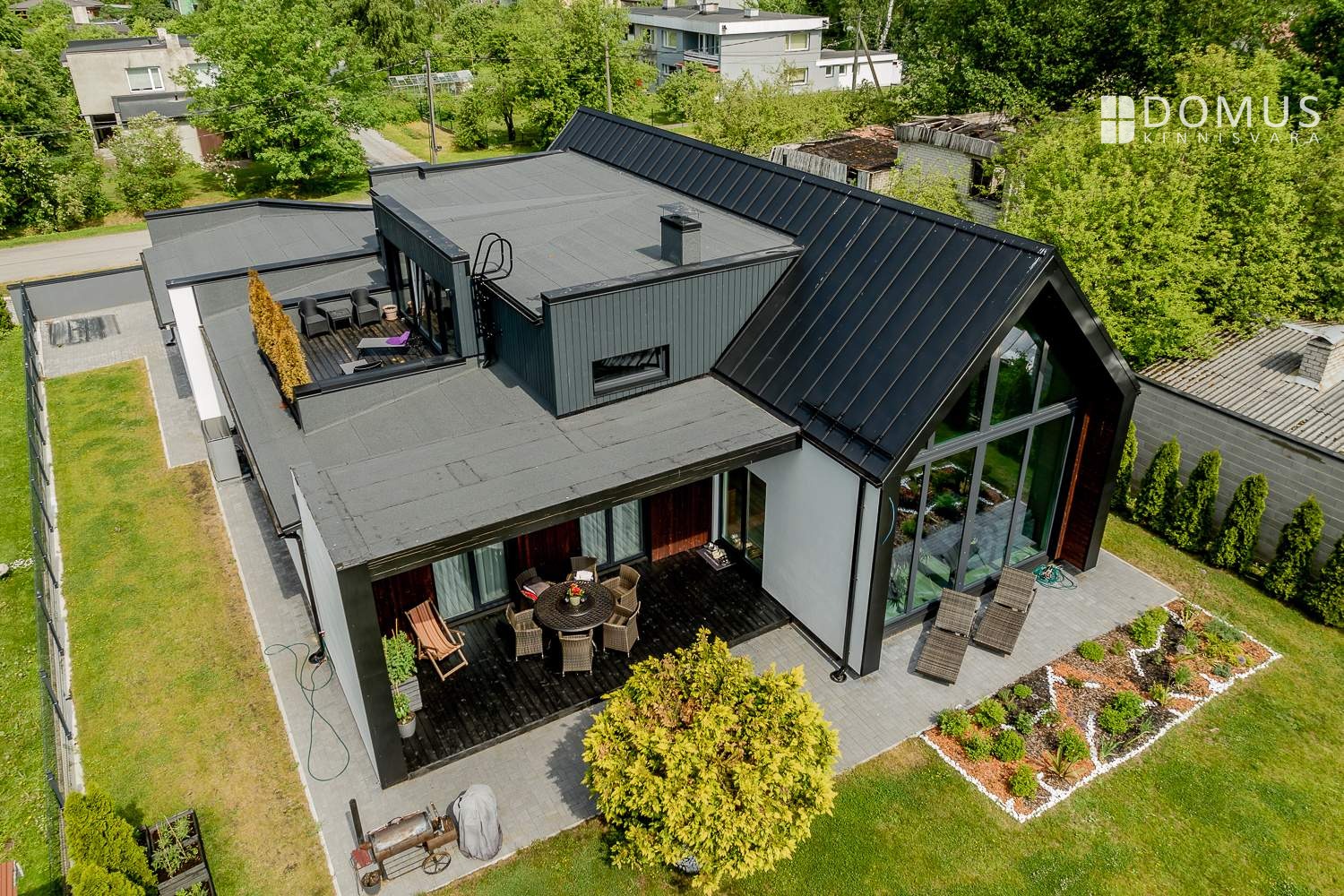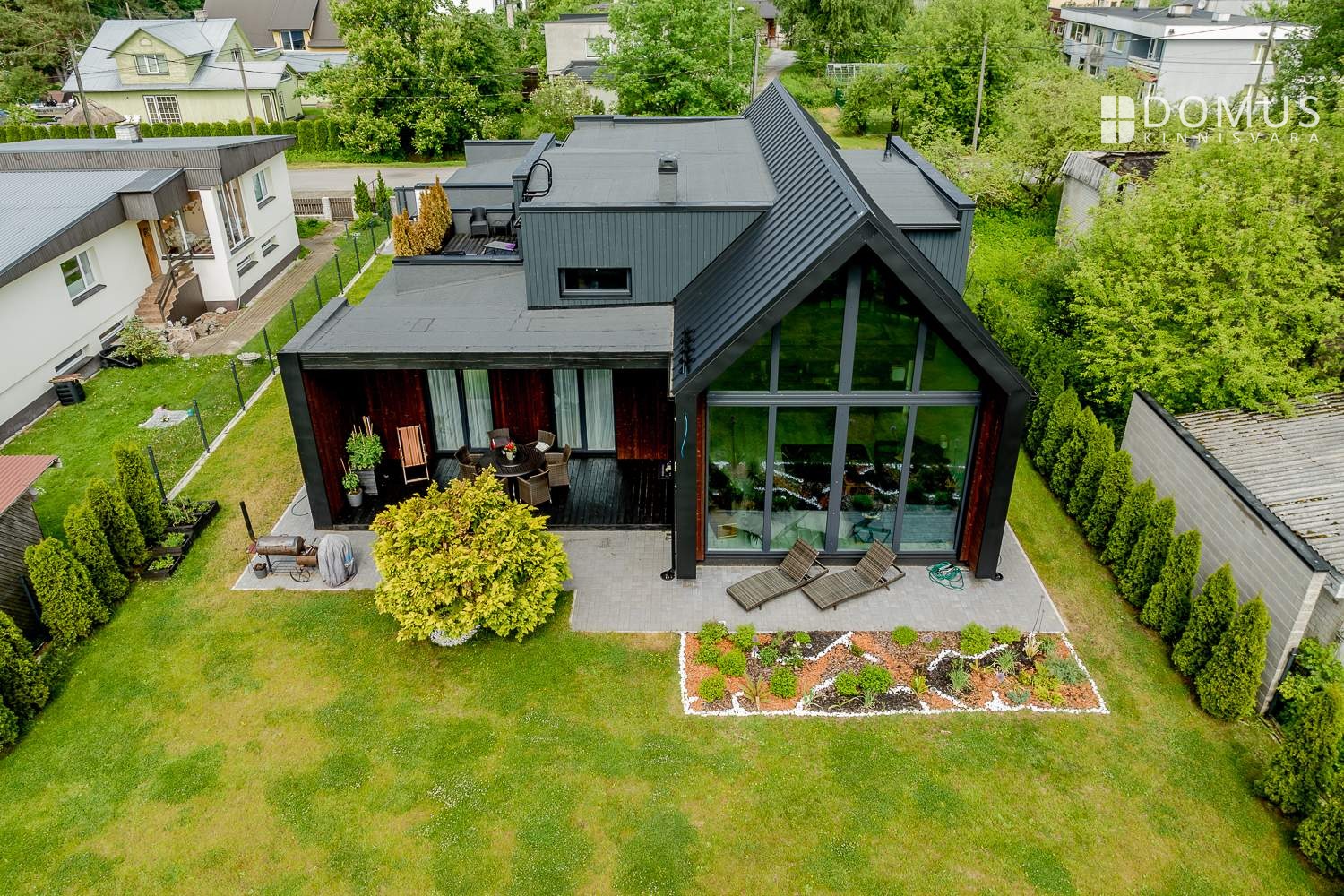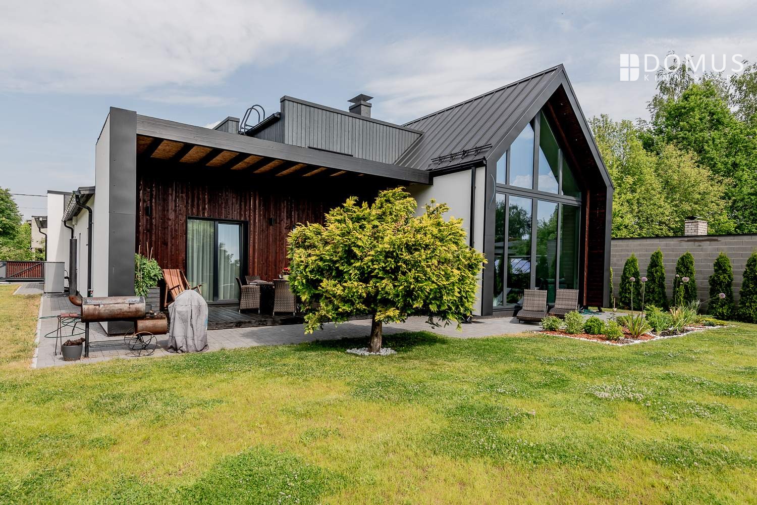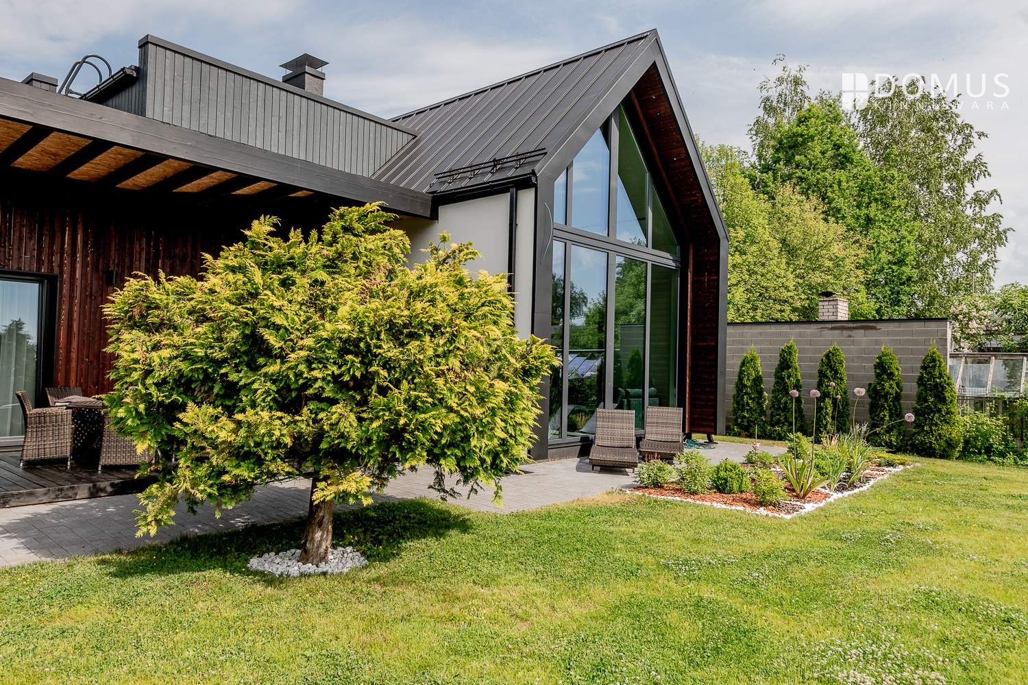 At the back of the house is a private garden with a terrace. Both interior and exterior finishes feature durable, high‑quality materials.