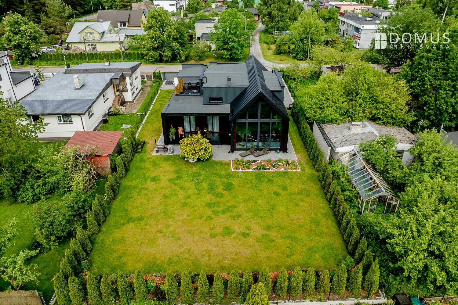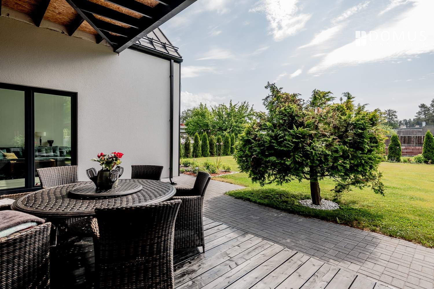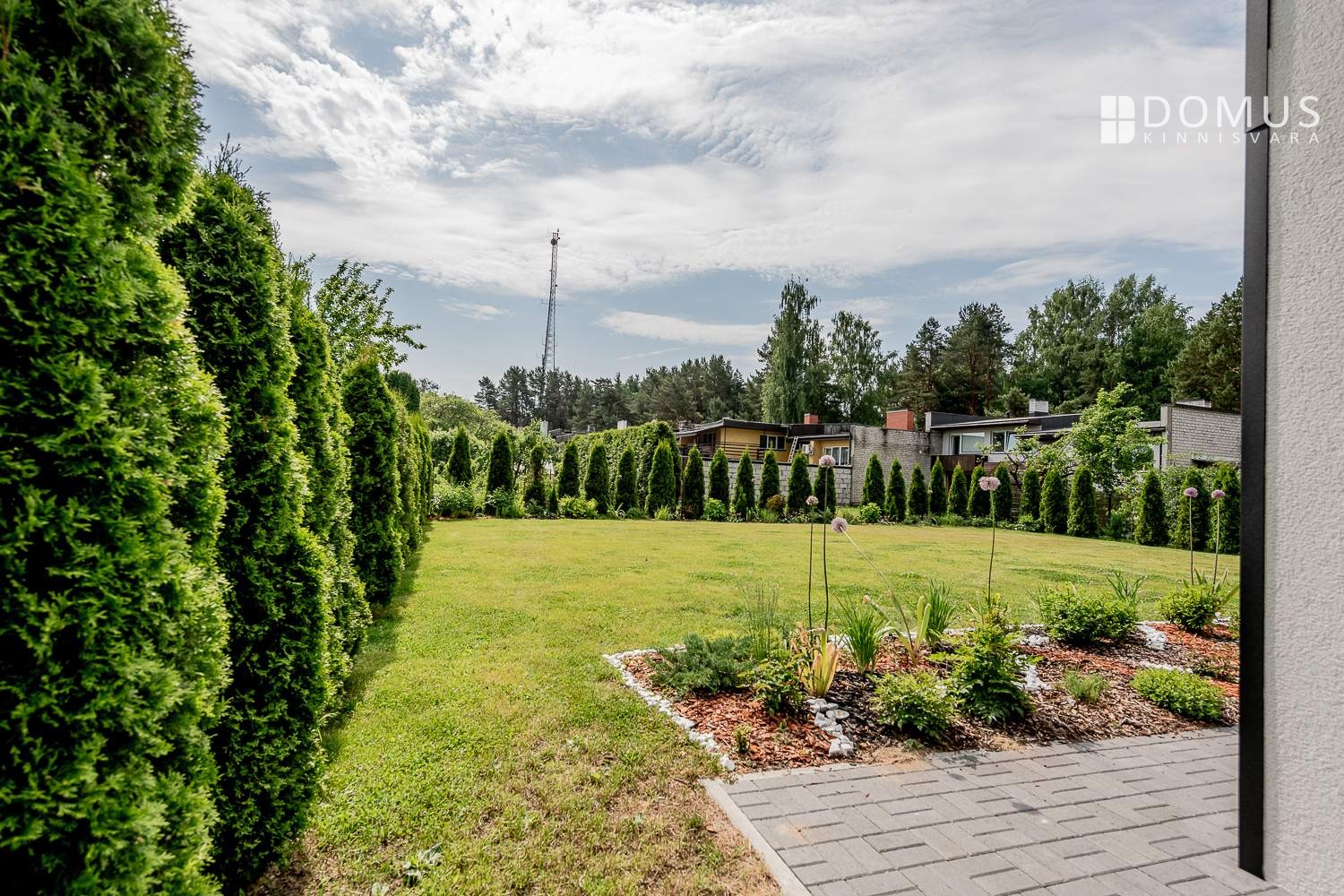 The landscaped and fully fenced plot offers privacy and comfort. In front of the house is a large driveway that fits several cars and, if needed, even a boat.