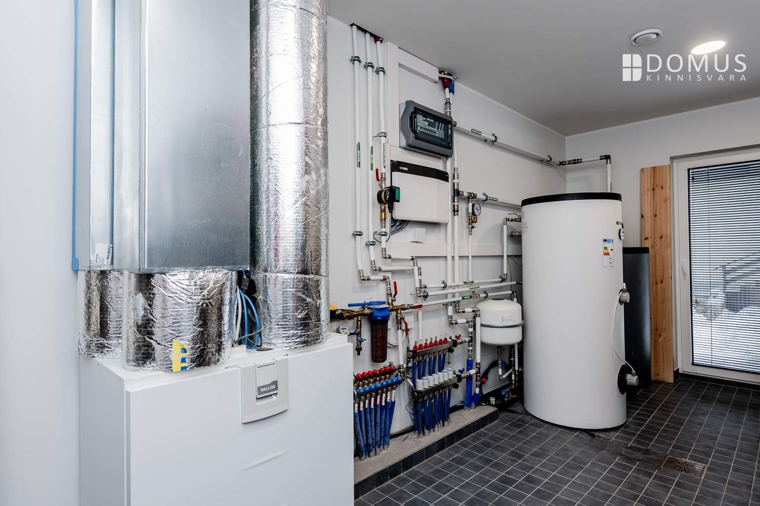 Water‑based underfloor heating on both floors, powered by Nibe 20 kW air‑to‑water heat pump