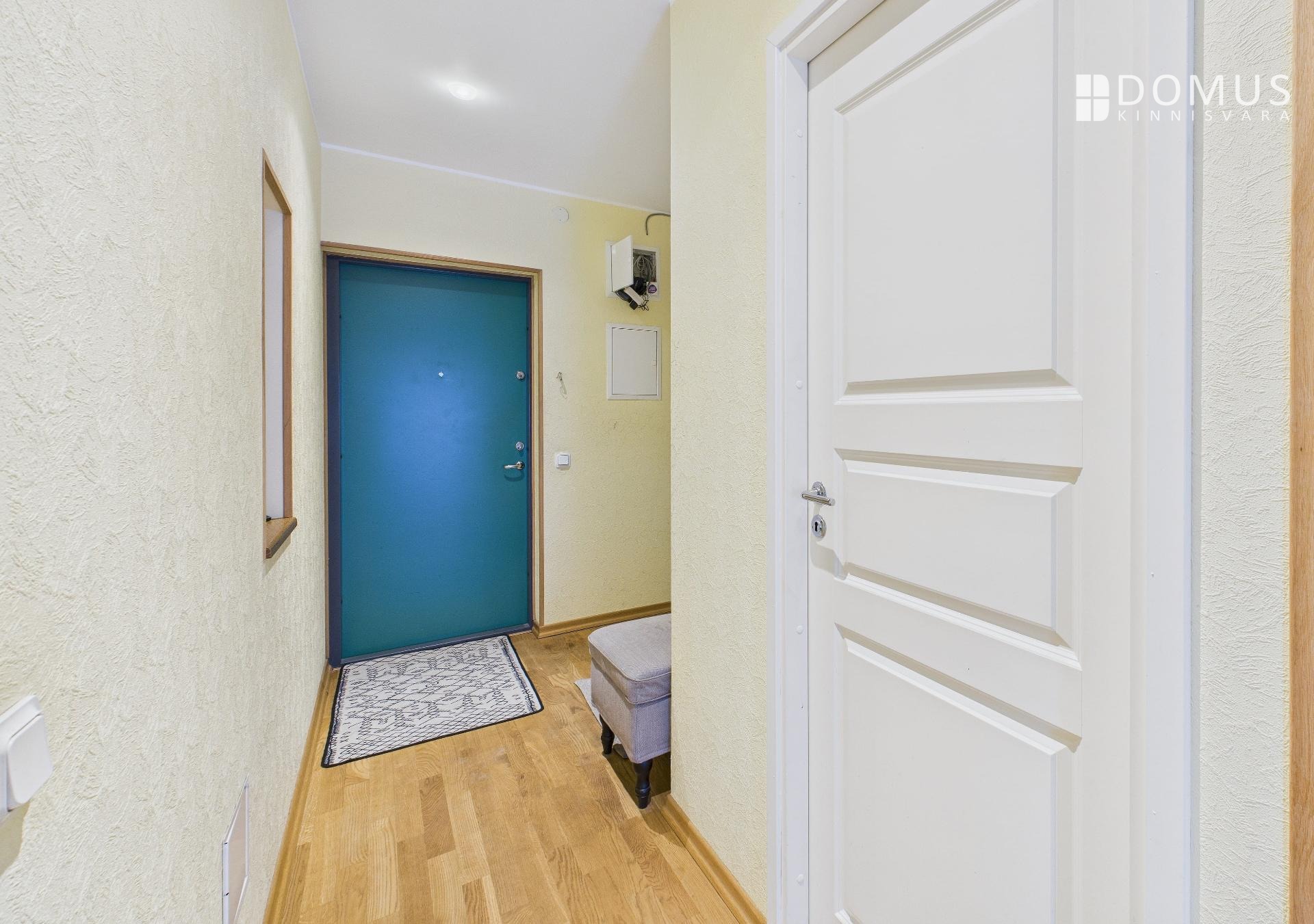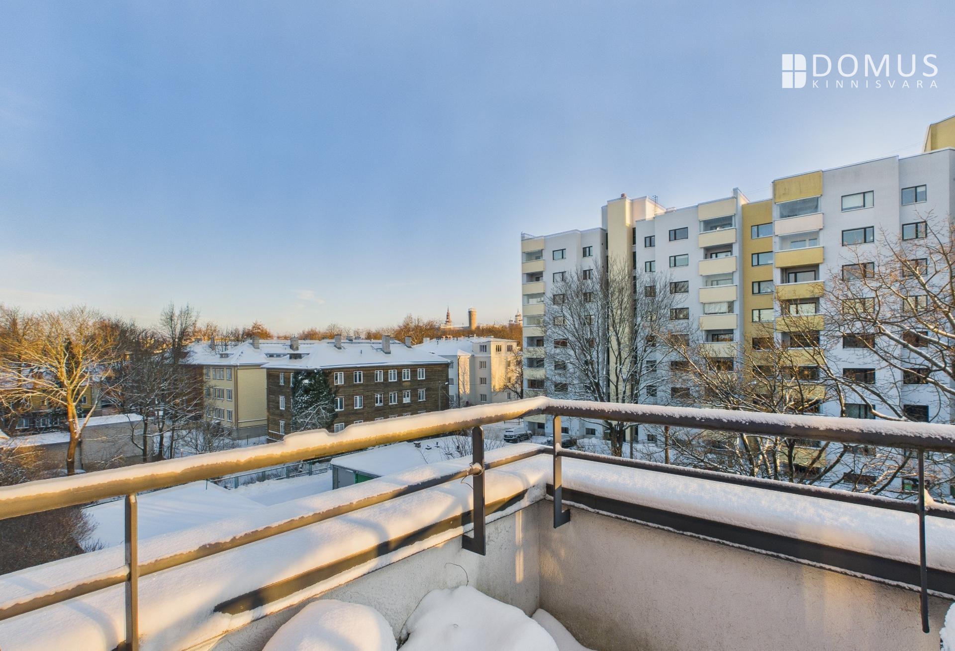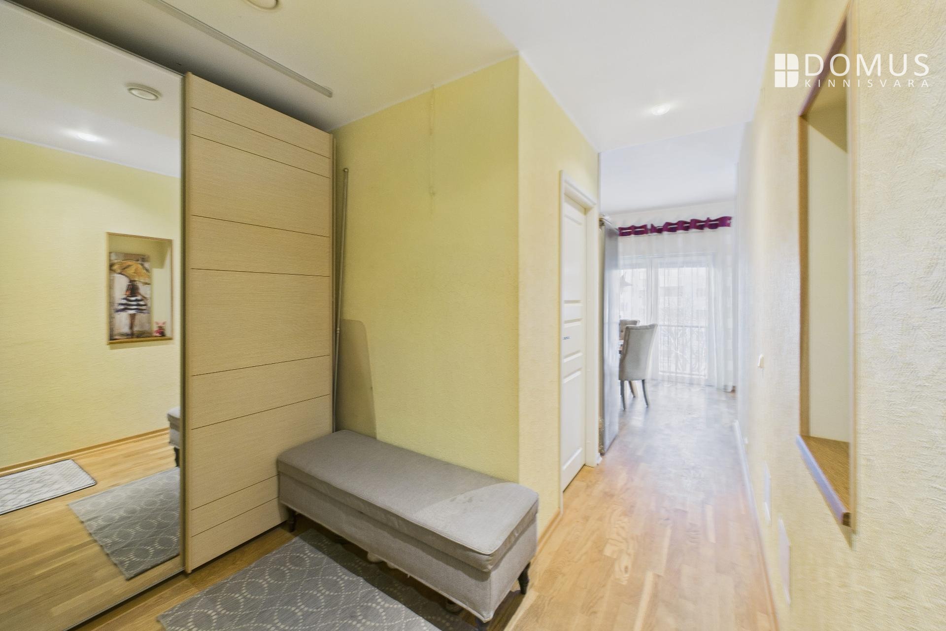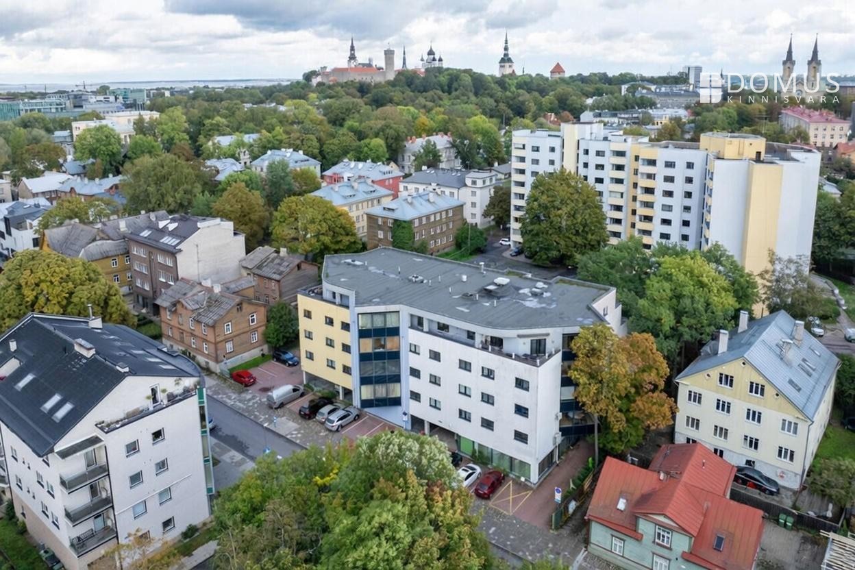 The apartment consists of a living room, kitchen, balcony, two bedrooms, hallway, storage room, and bathroom. From the living room and one bedroom there is access to a spacious 16.7 m² terrace, offering a beautiful view, including the iconic Pikk Hermann Tower. Built-in wardrobes are installed in the bedrooms and hallway, and the kitchen is equipped with furniture and appliances.