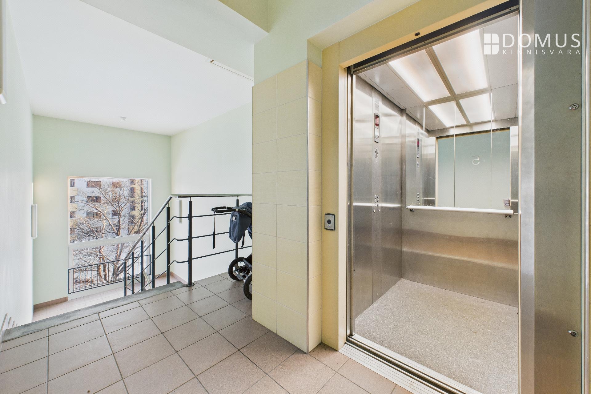 The stairwell is clean and well maintained, and the building has a lift.