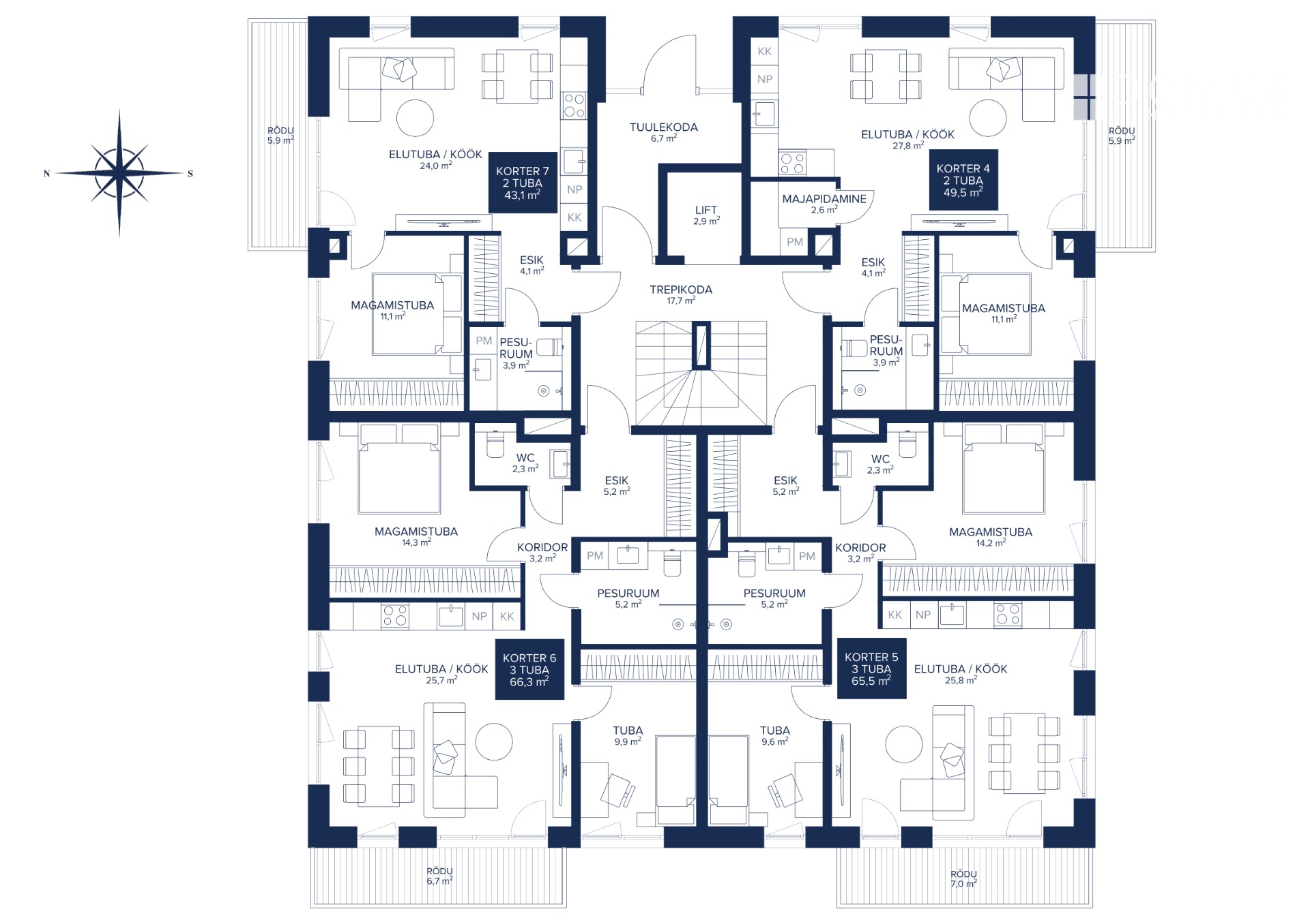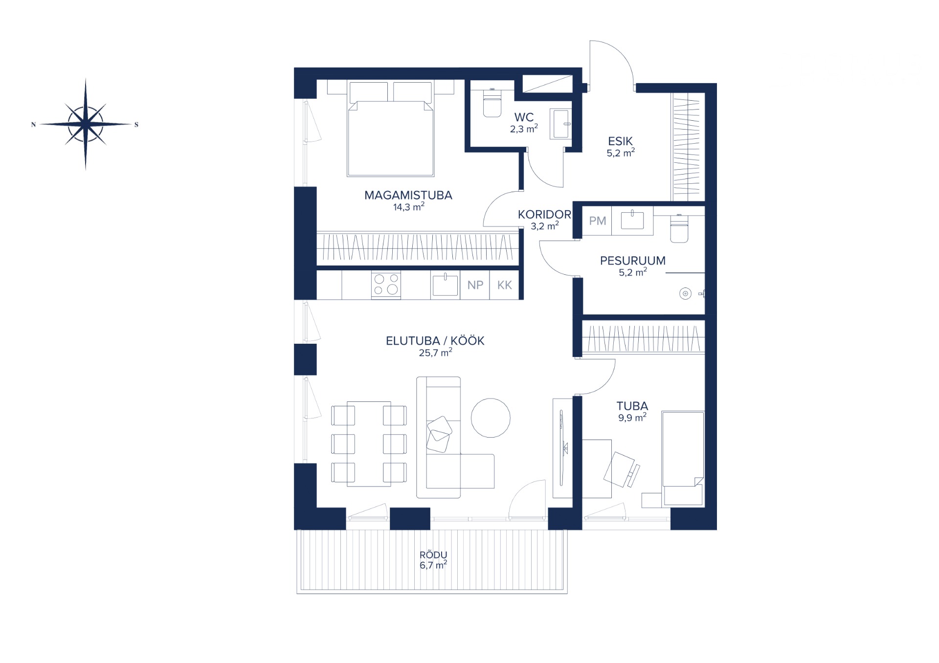 The windows offer beautiful views of the primeval valley of the Emajõgi River, and the balconies and terraces are exceptionally large – up to 60 m²!