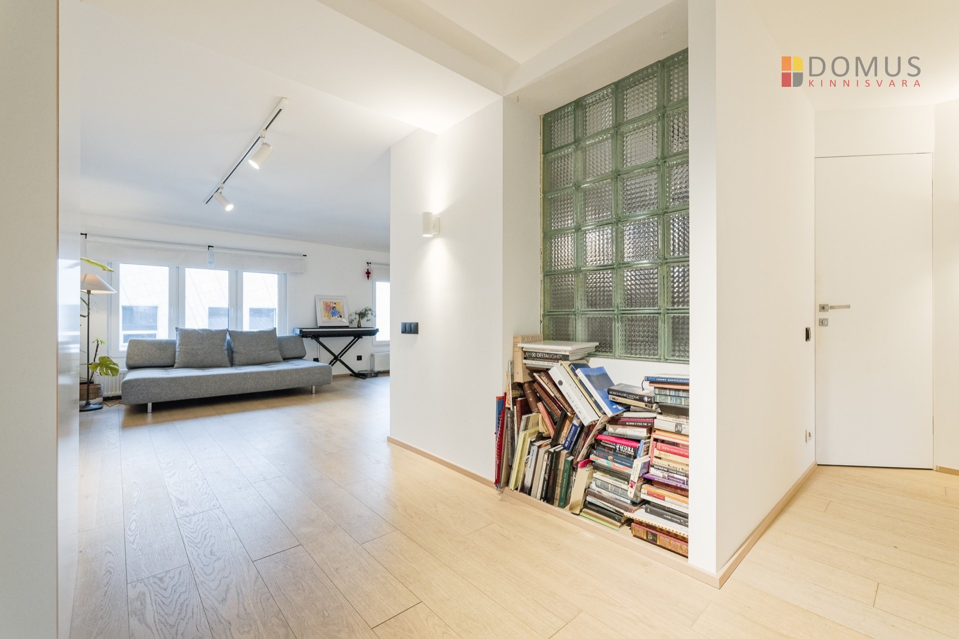 Fully furnished apartment with a natural wooden parquet floor, executed according to the design project of an architectural bureau. The apartment is sold with the furniture and built-in appliances shown in the photos. The renovation was done 2 years ago, during which new plastic windows were installed.