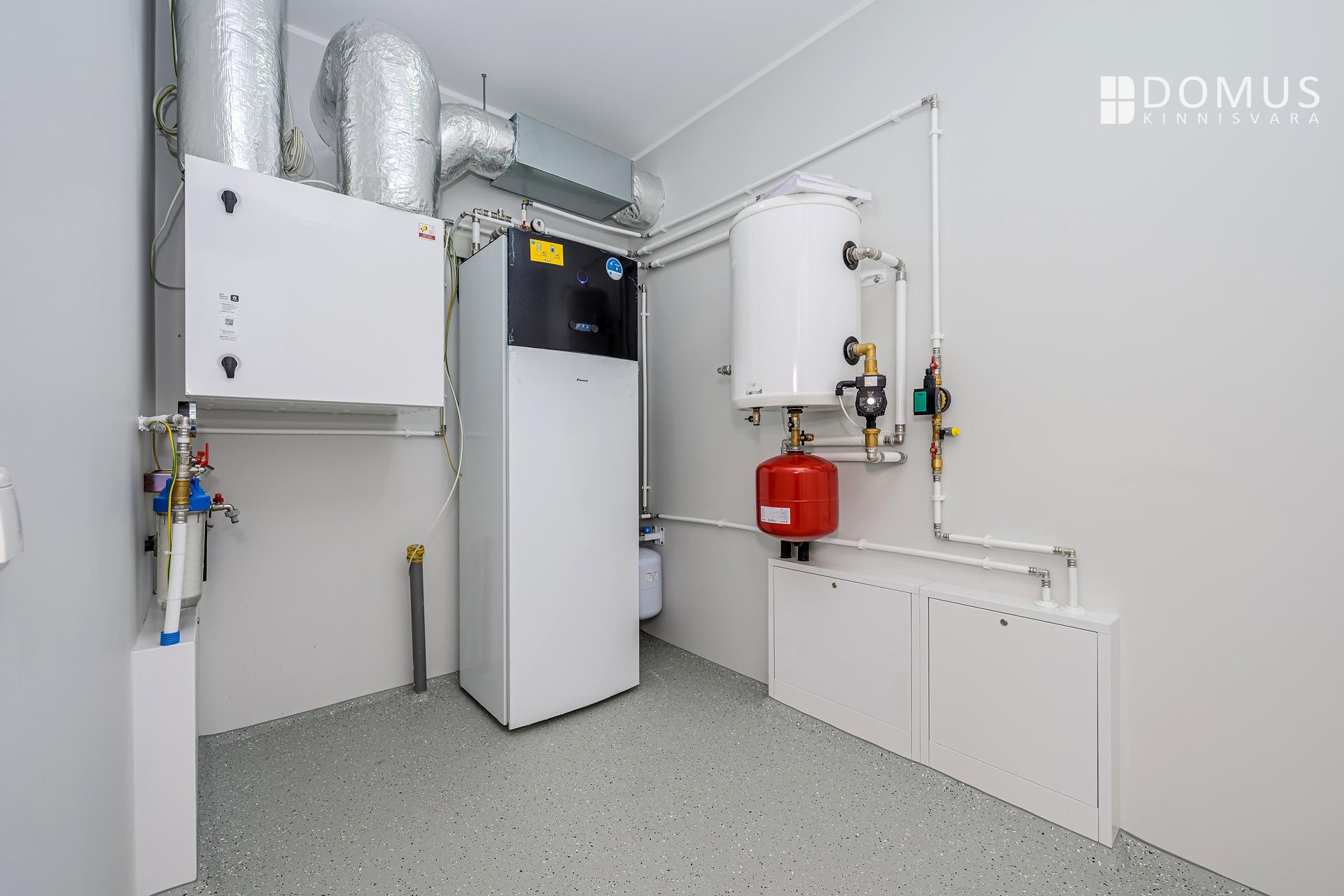 The house has a mechanical supply and exhaust ventilation system with heat recovery, installed in the technical room.