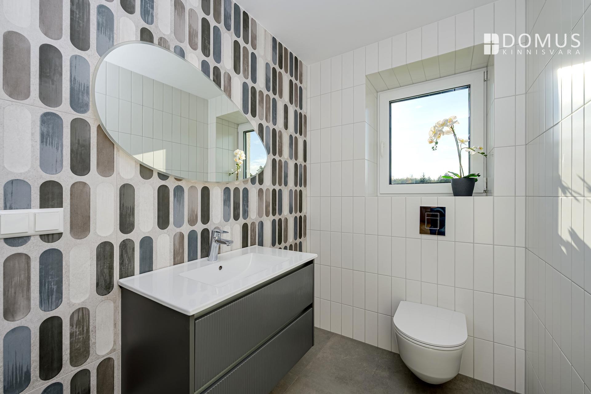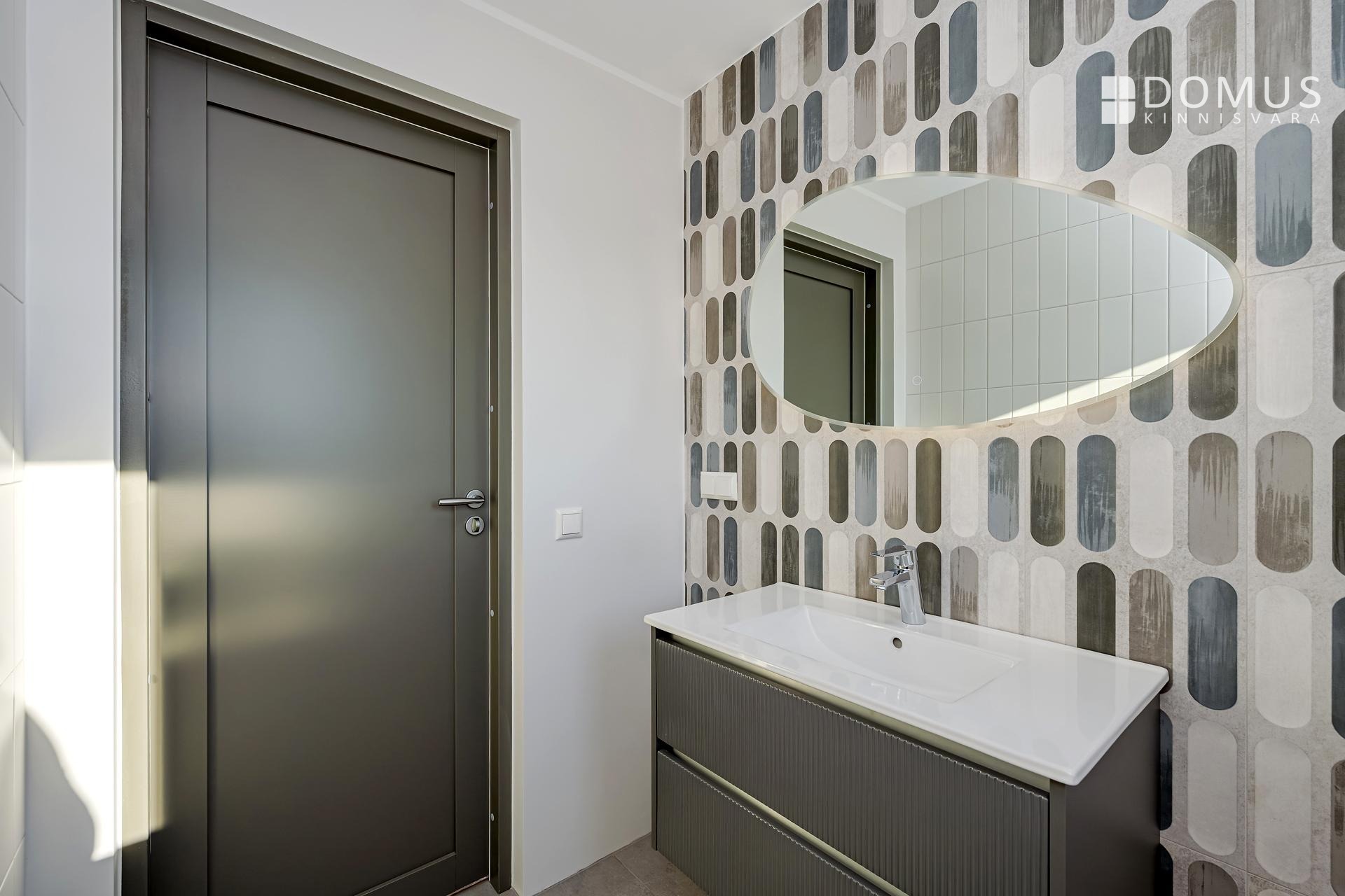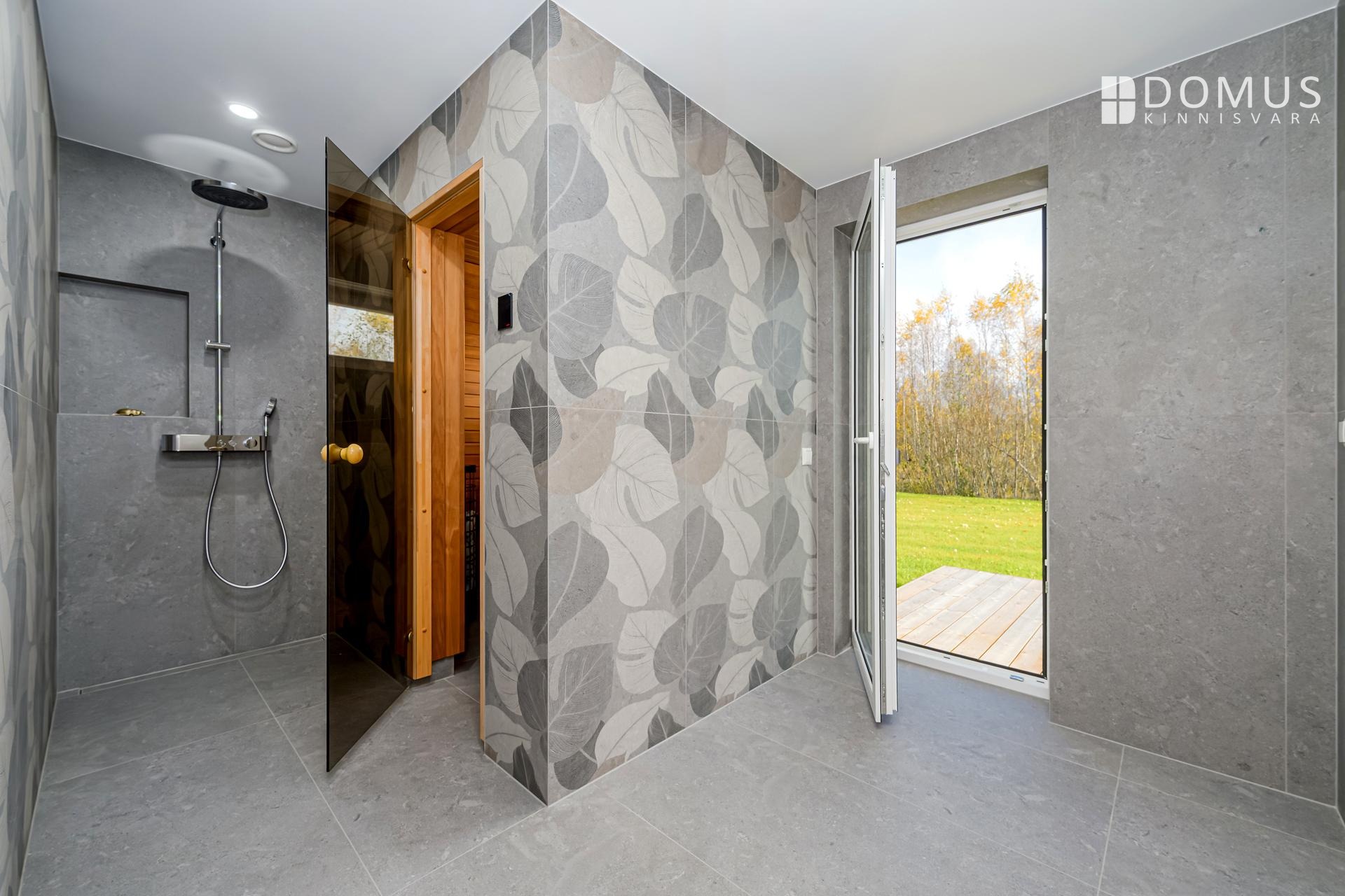 The house features underfloor heating, an energy-efficient geothermal heat pump, and a ventilation system with heat recovery to ensure fresh indoor air.
