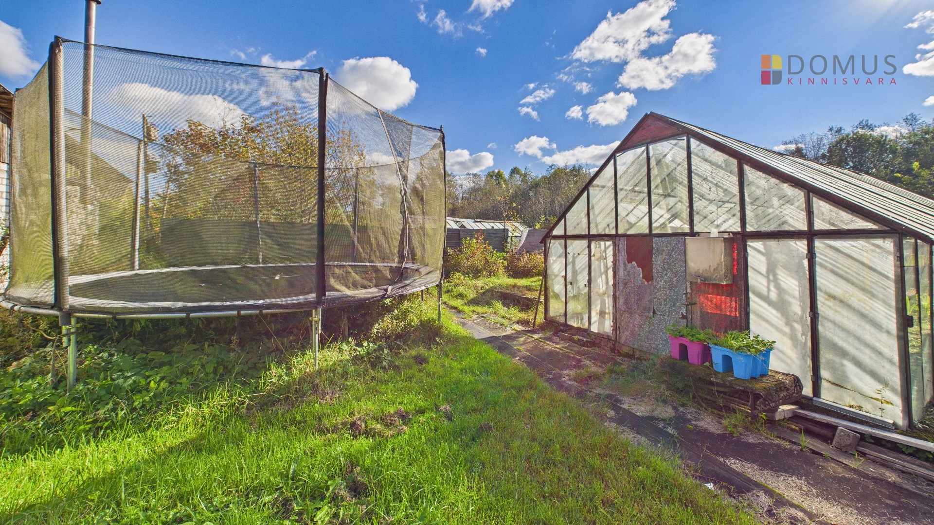 Summer house for sale near Paldiski. The plot features a garden house with a small kitchen, a sauna, and a relaxation room. There are also two greenhouses, a trampoline, an outdoor toilet, and a 4-meter deep well. There is no electricity on the plot. The plot is well-maintained and green, perfect for family relaxation, gardening, or a small vegetable garden.