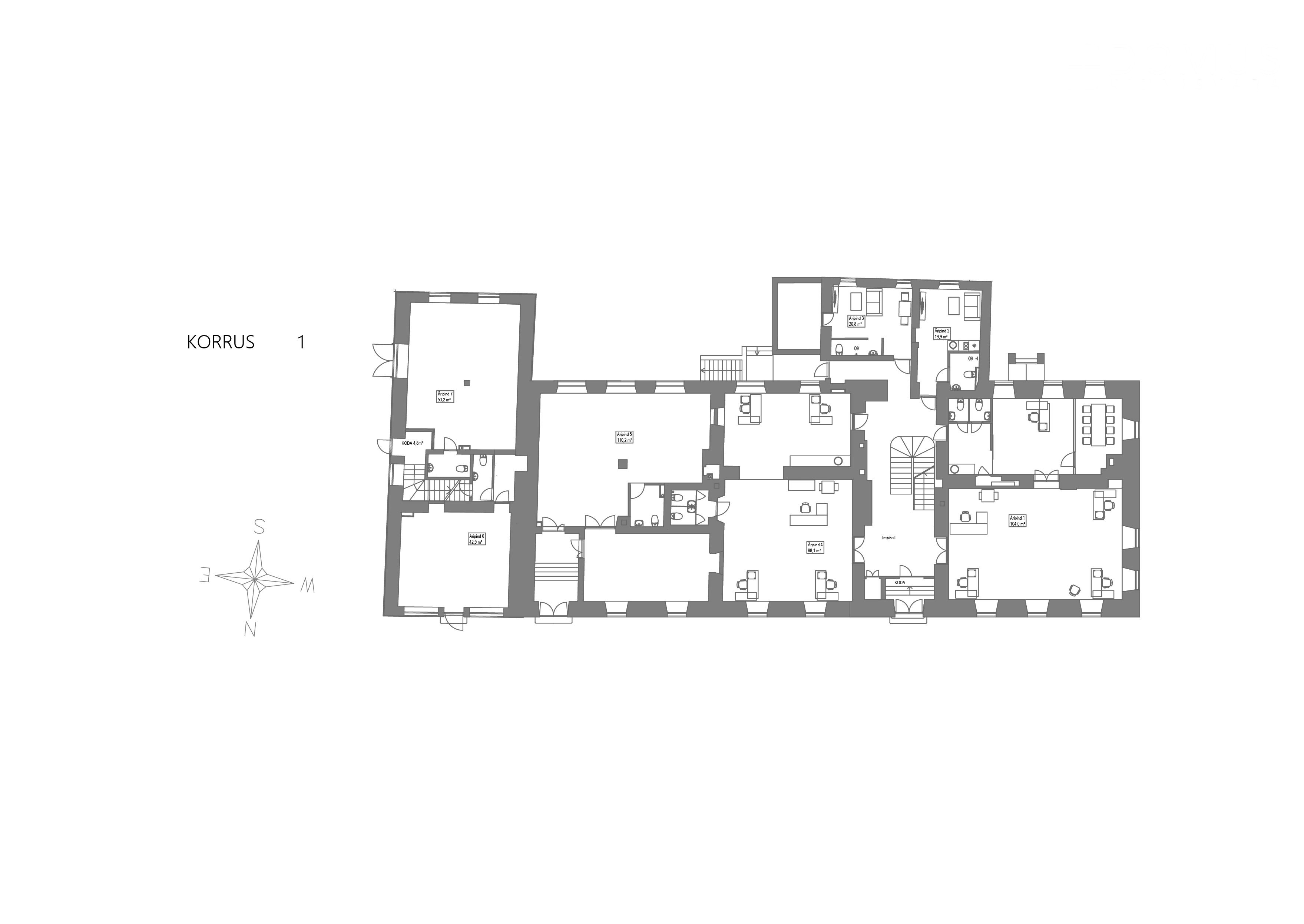 All apartments are unique and feature exciting custom solutions. The ground floor and basement level are intended for businesses that complement Rüütli Street—the city’s main street and the heartbeat of the Old Town.