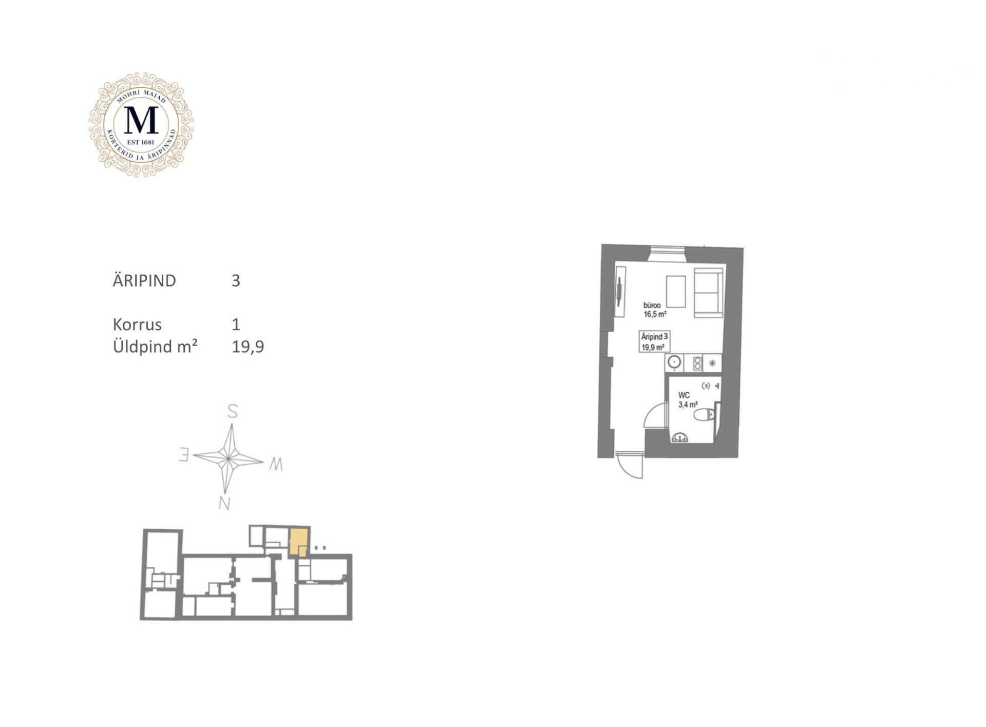 The commercial unit for sale, Unit No. 3, has an area of 19.9 m² and is located on the 1st floor.