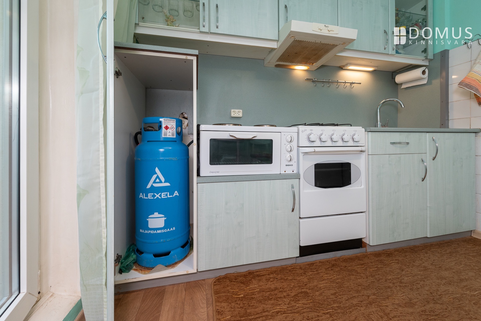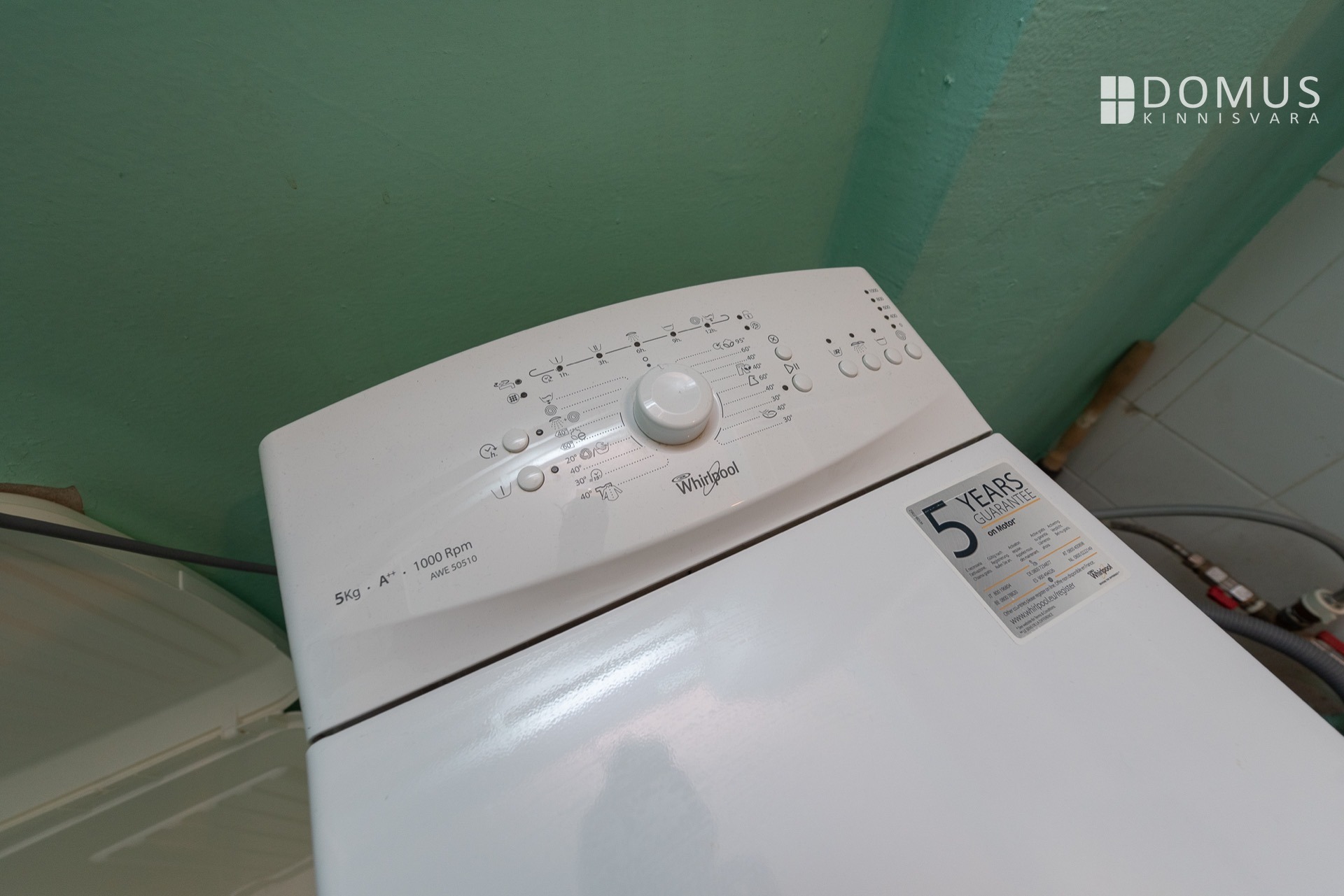 The kitchen is equipped with an electric stove and also a gas stove (with cylinder), a regular refrigerator plus a separate small freezer, a microwave oven, and a cooker hood. Tableware and cutlery are also available for tenants. Hot water is provided both centrally and by an electric boiler. The bathroom has a top-loading Whirlpool washing machine. The large sofa in the living room can be extended into a bed, and the smaller armchair can also be used as a bed. The living room is additionally furnished with a dining table and chairs. A spacious storage room is located in the basement of the building. Parking is available in front of the house.