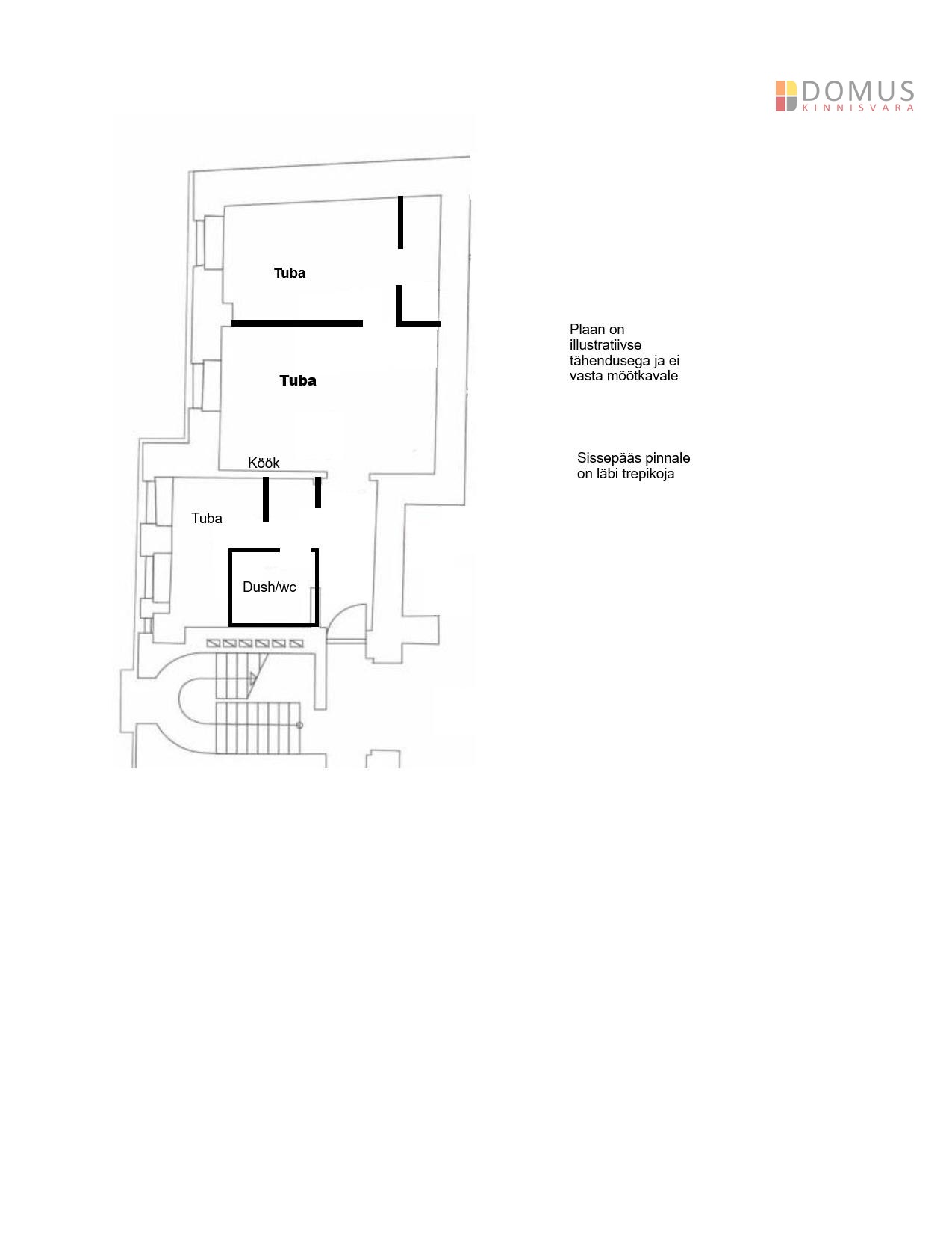 For sale: a commercial space located in the basement floor of Kaupmehe Street 2, officially registered as a business premises but currently furnished in a way that makes it suitable for renting out as a residential space, a salon, or an office. Entrance is via the stairwell; unfortunately, there is no direct entrance from the street. The windows face the courtyard.