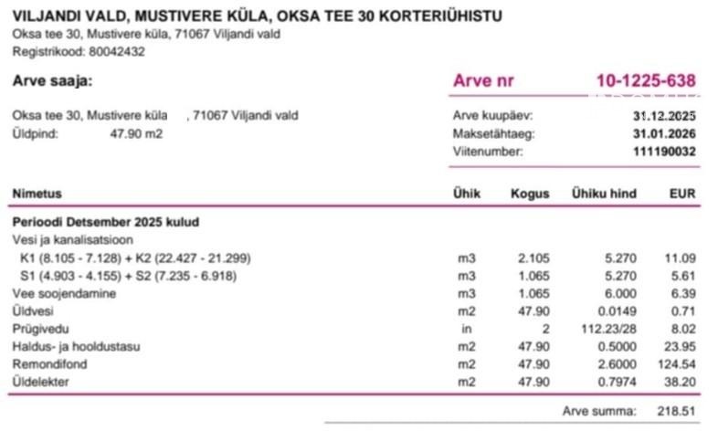For sale apartment, 2 room - Oksa tee 30, Mustivere küla, Viljandi vald, Viljandi maakond