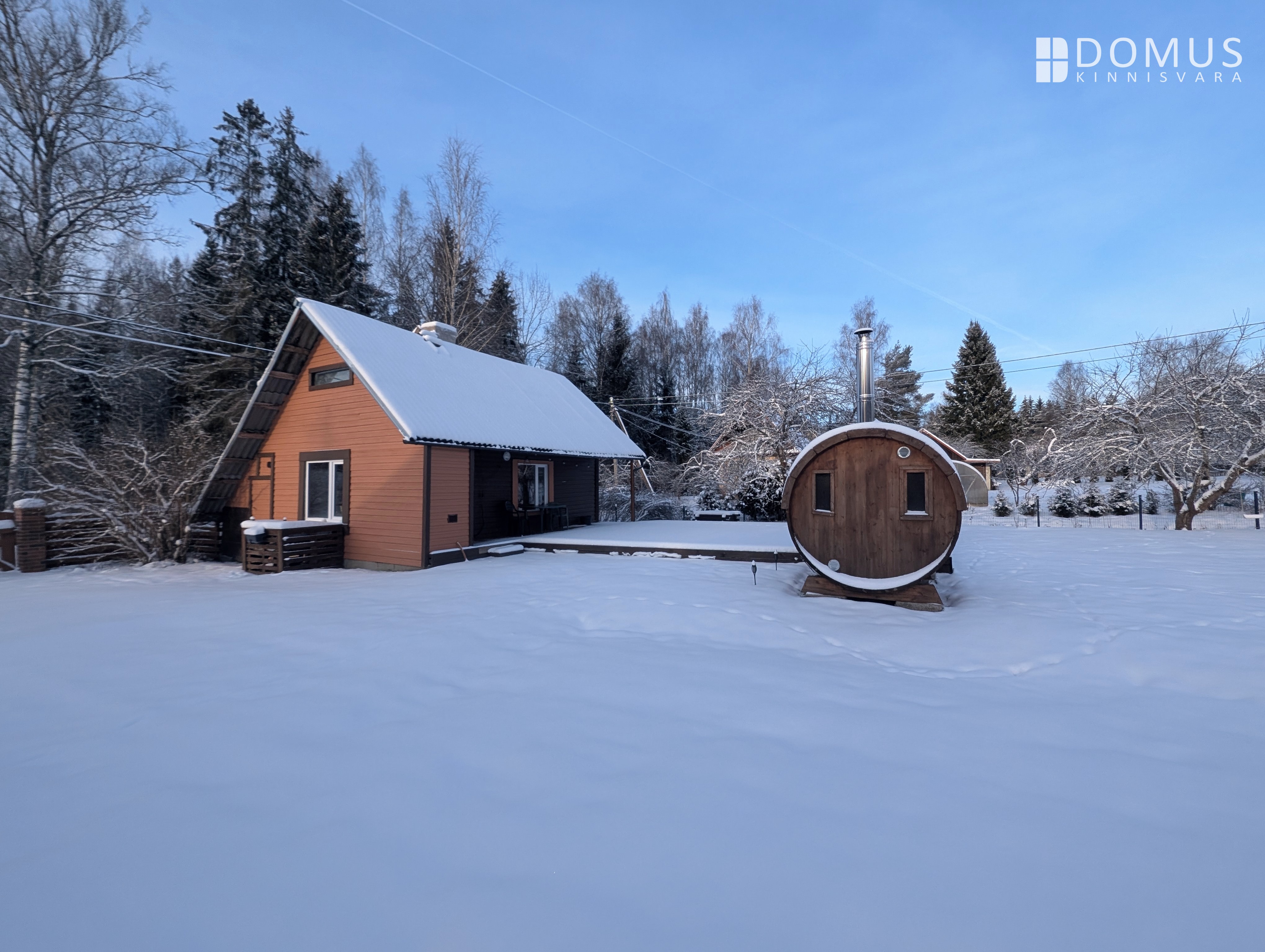 The property size is 951 m² – just enough to enjoy privacy and your own garden, while keeping maintenance simple. The cabin itself is 40.4 m², of which 25.9 m² is heated living space. The layout is straightforward: