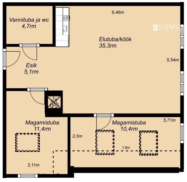 Internet, washing machine, possibility for furniture, parquet, refrigerator