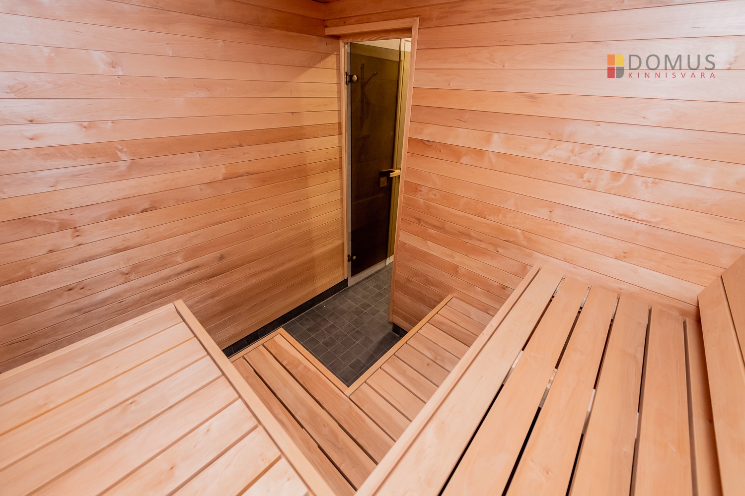 The stone house has triple-glazed windows, an electronically operated garage door, and a stylish Classic metal roof. The 1660 m² plot is fenced on three sides and connected to central water and sewerage systems.