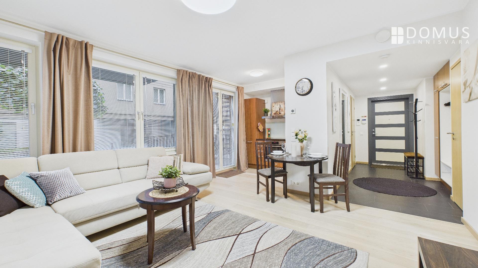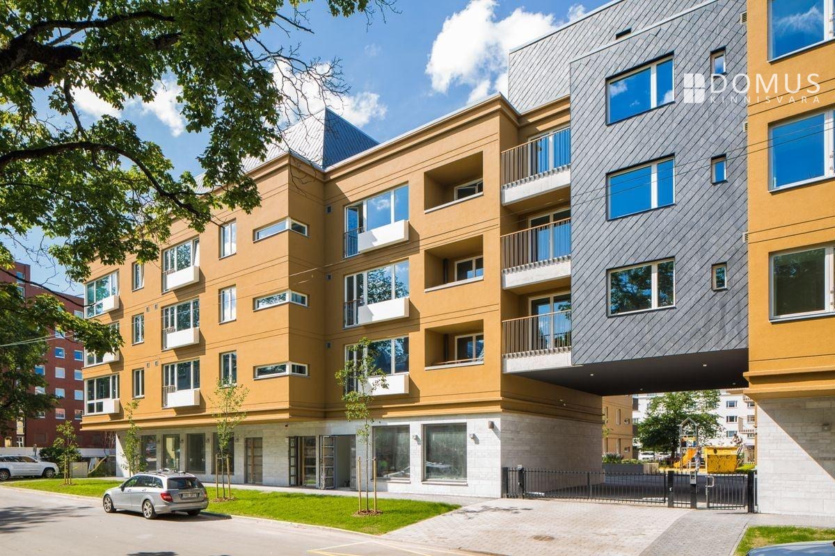 The residential complex, developed by YIT in 2018, consists of three buildings and includes a beautifully landscaped courtyard with several recreational areas and children's playgrounds.
