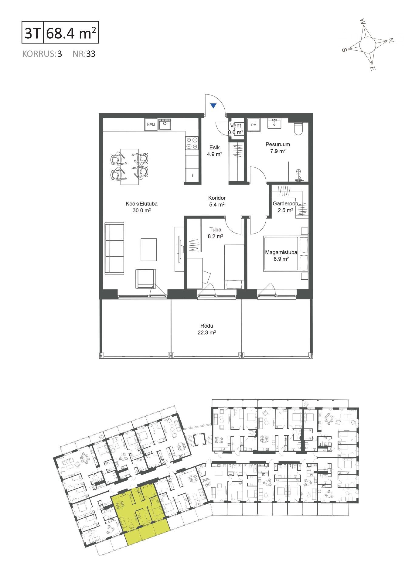 For sale apartment, 3 room - Kotermaa tänav 7-33, Haabersti linnaosa, Tallinn, Harju maakond