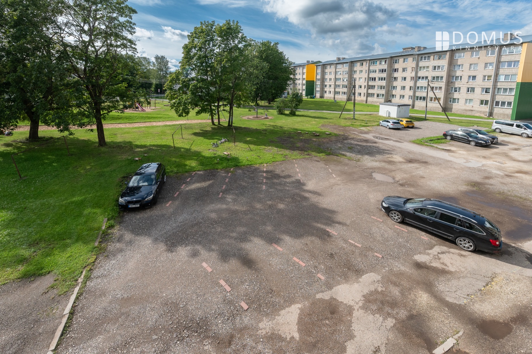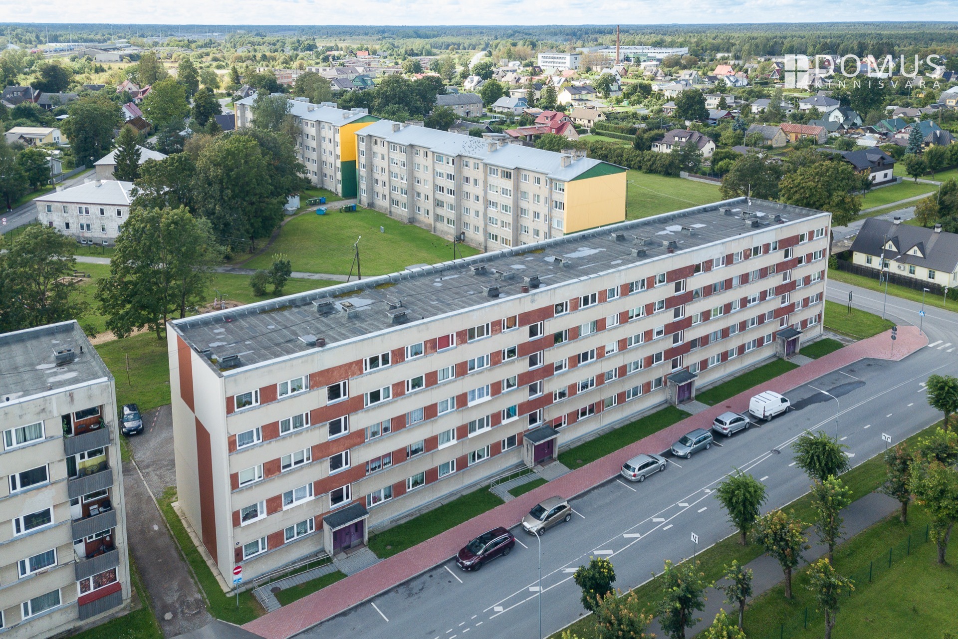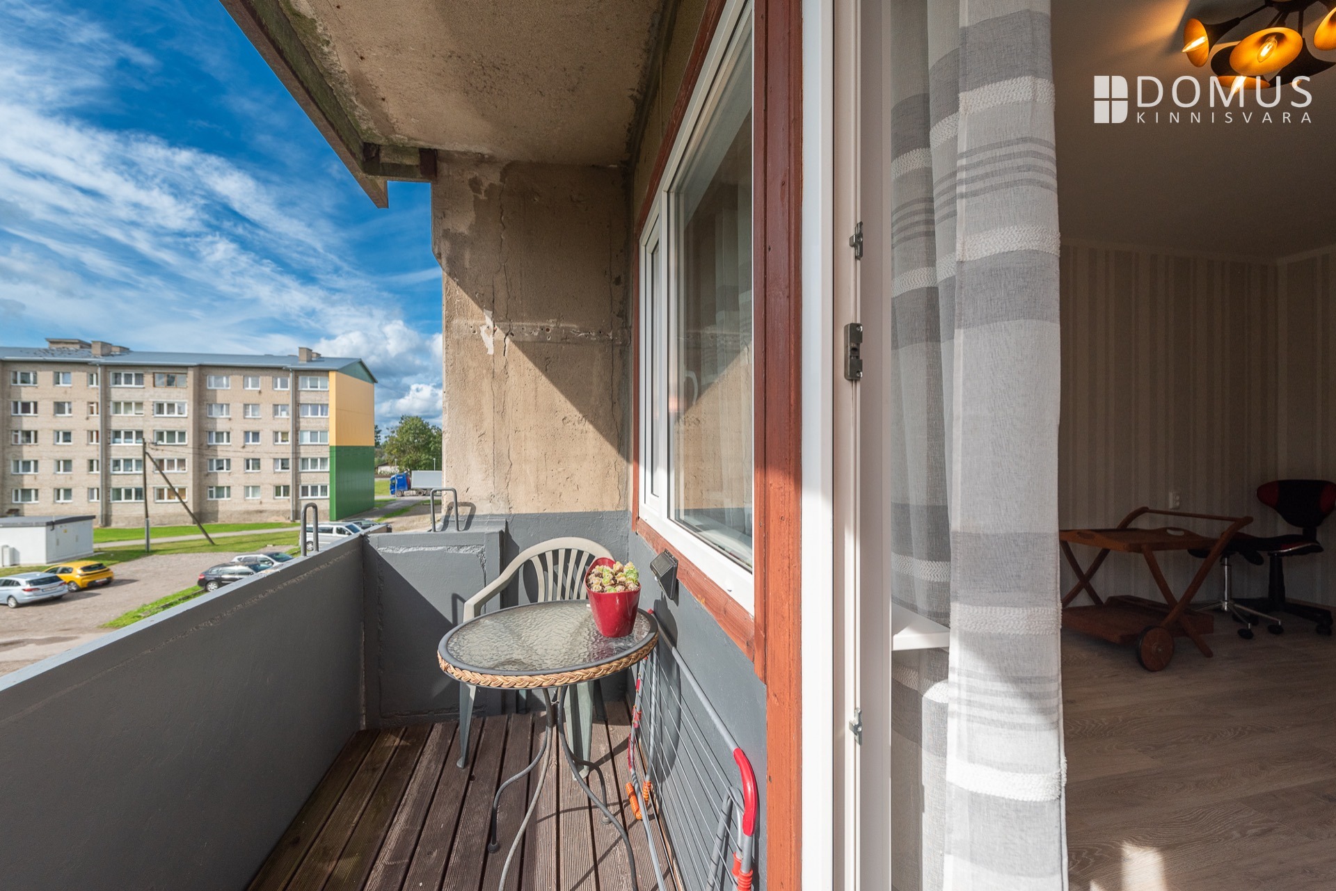 For rent: a 2-room apartment in the town of Tapa, on Ülesõidu Street. The apartment is located on the third floor of the building and has a through layout. The bedroom and kitchen face the street side, while the living room windows and balcony open to the back of the house. According to the building registry, the energy efficiency class of the building is C.