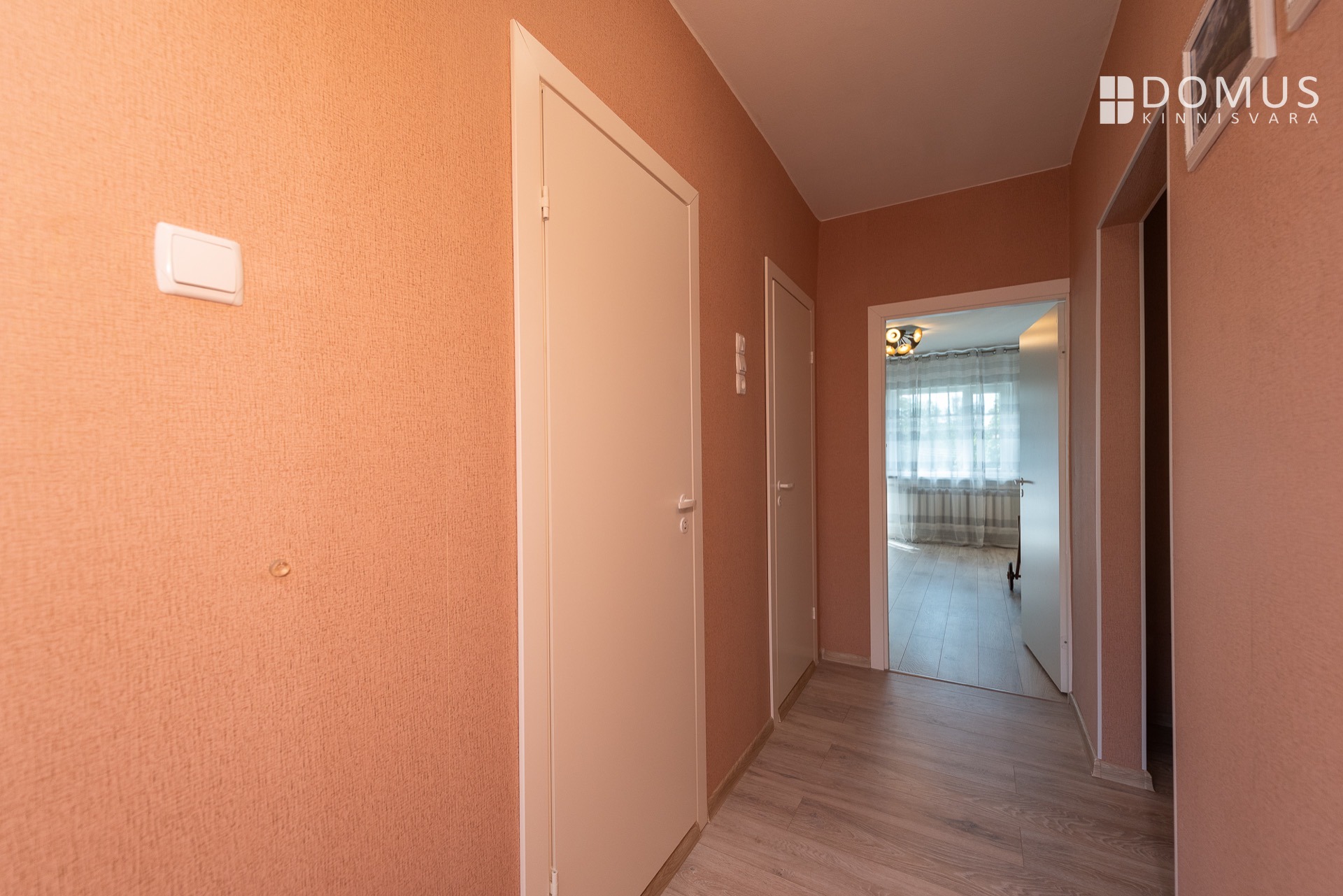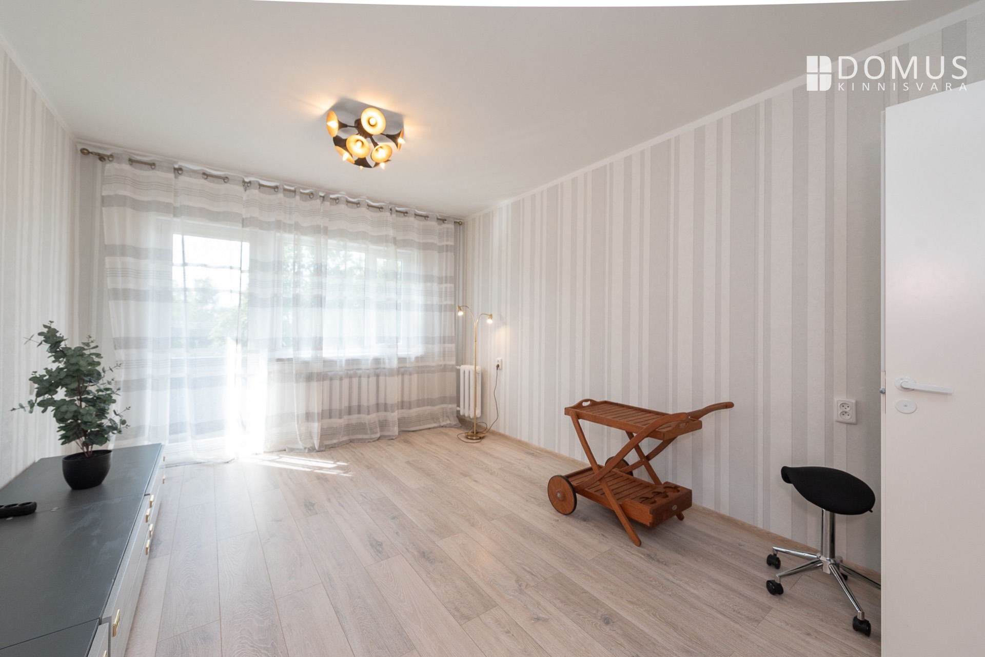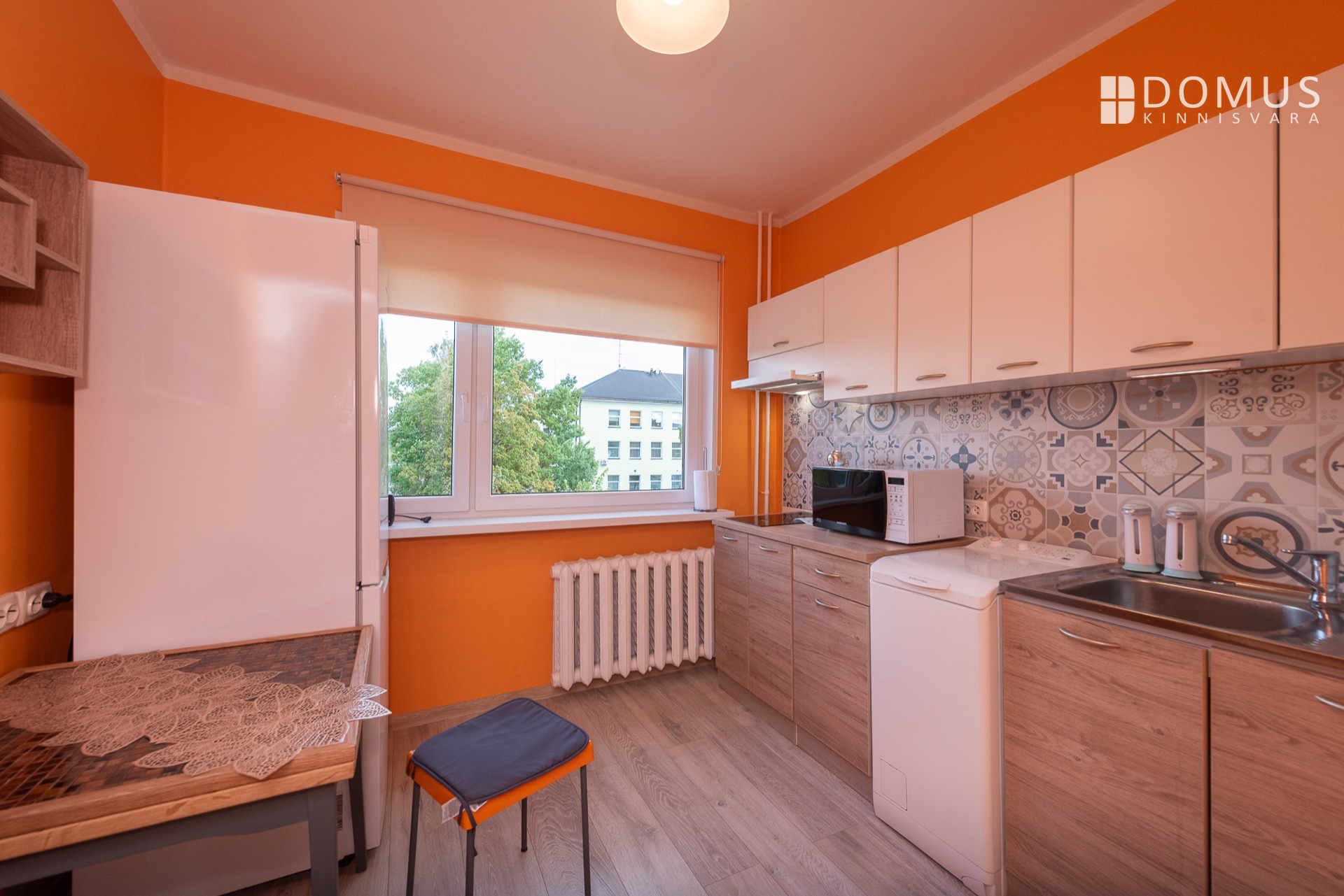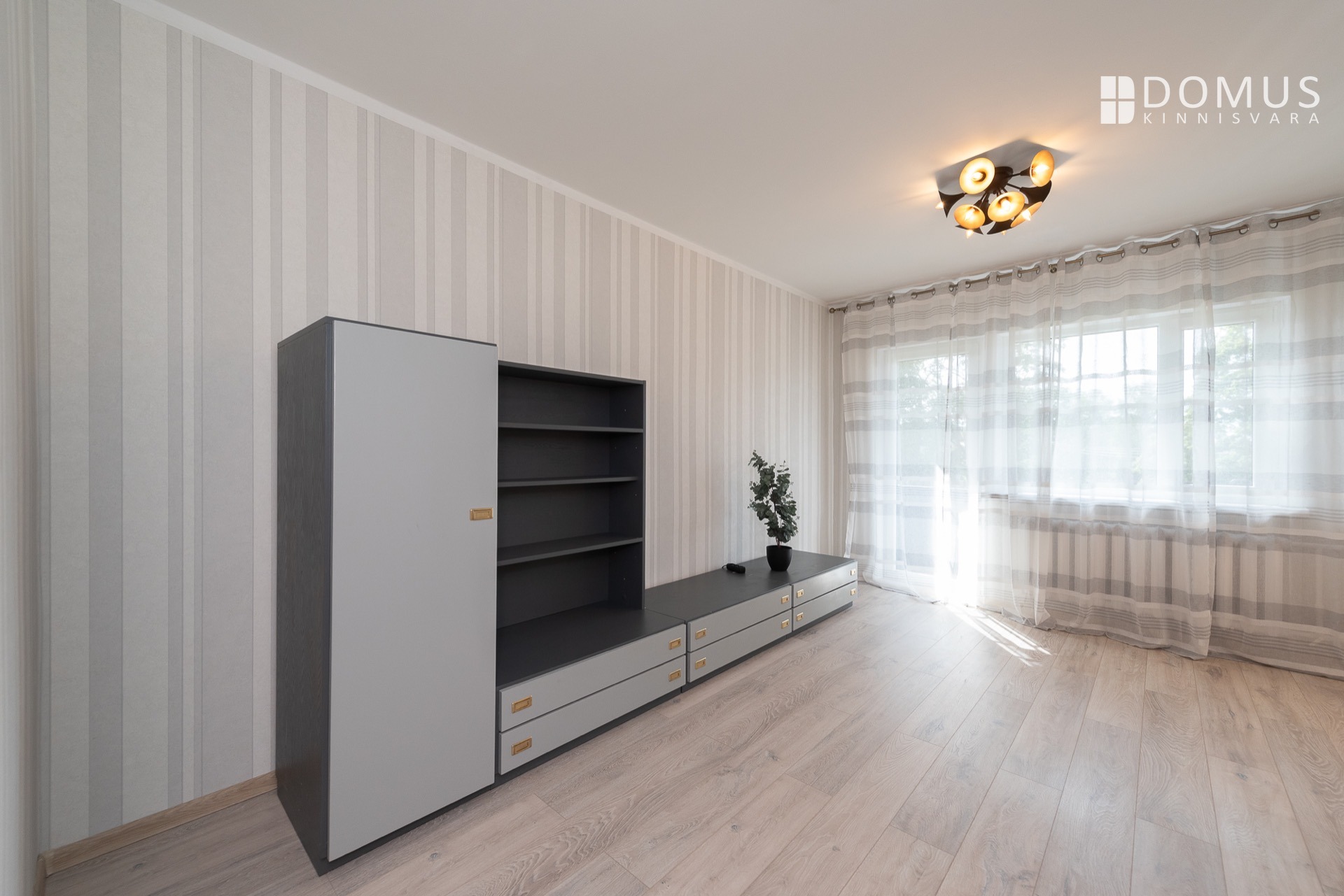 For rent: a 2-room apartment in the town of Tapa, on Ülesõidu Street. The apartment is located on the third floor of the building and has a through layout. The bedroom and kitchen face the street side, while the living room windows and balcony open to the back of the house. According to the building registry, the energy efficiency class of the building is C.