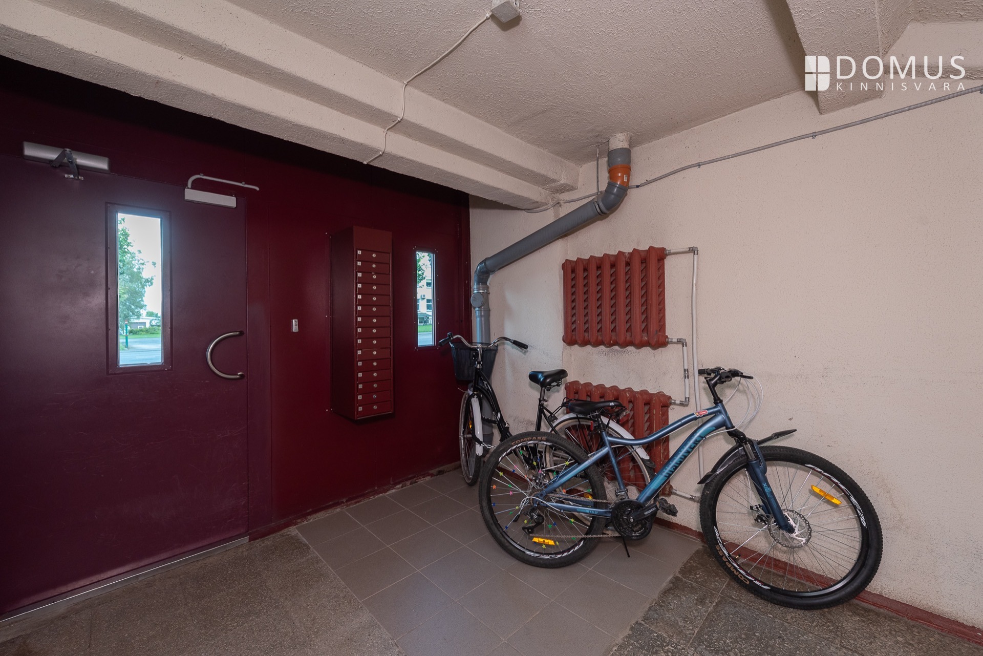 The building has been renovated — the end walls are insulated, and the entrance doors, mailboxes, and windows in the stairwell have been replaced.