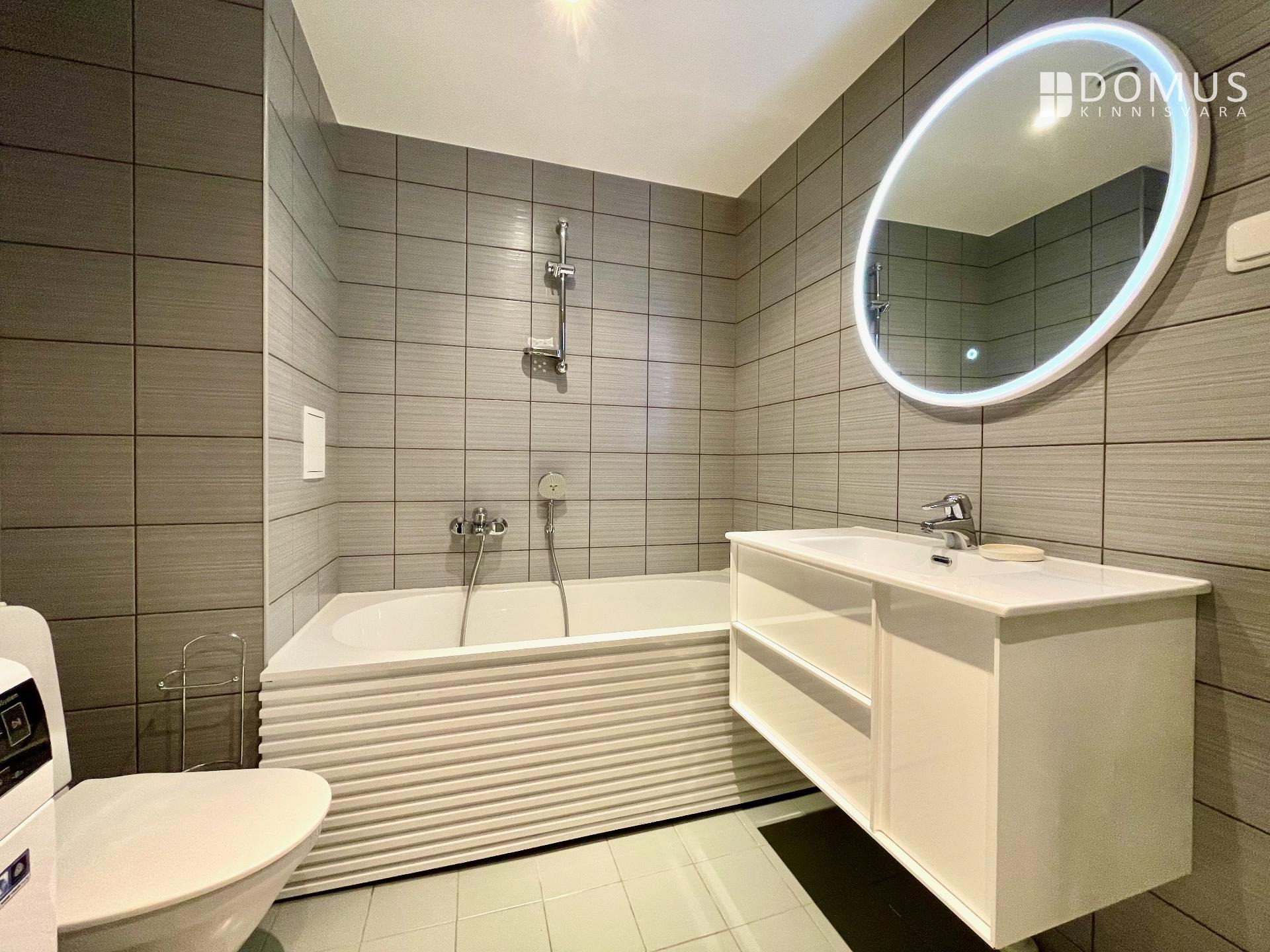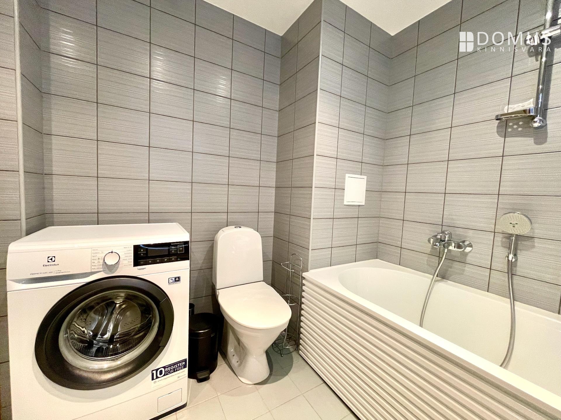For comfortable living, the apartment includes a dishwasher, stove with oven, extractor hood, refrigerator, and washing machine.