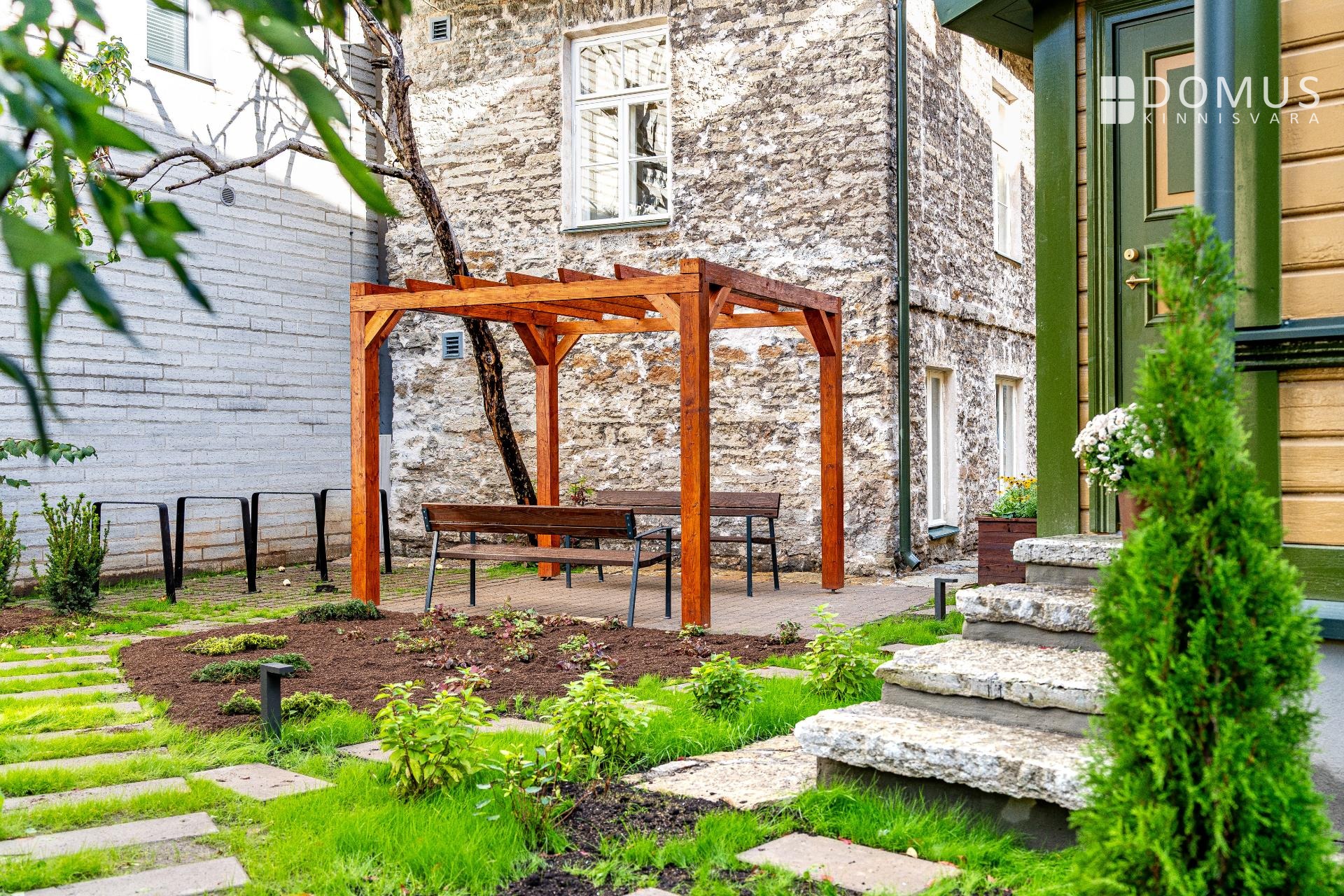 Kinnistul on suur hoov privaatse rohealaga, 10 parkimiskohta kinnistul ja eraldi kõrvalhoone panipaikadega. Korterile on võimalik lisaks osta parkimiskoht (või mitu kohta) hoovis ja panipaik, vaata lisainfot ja tee oma valik kodulehel: https://thammevilla.domus.ee/