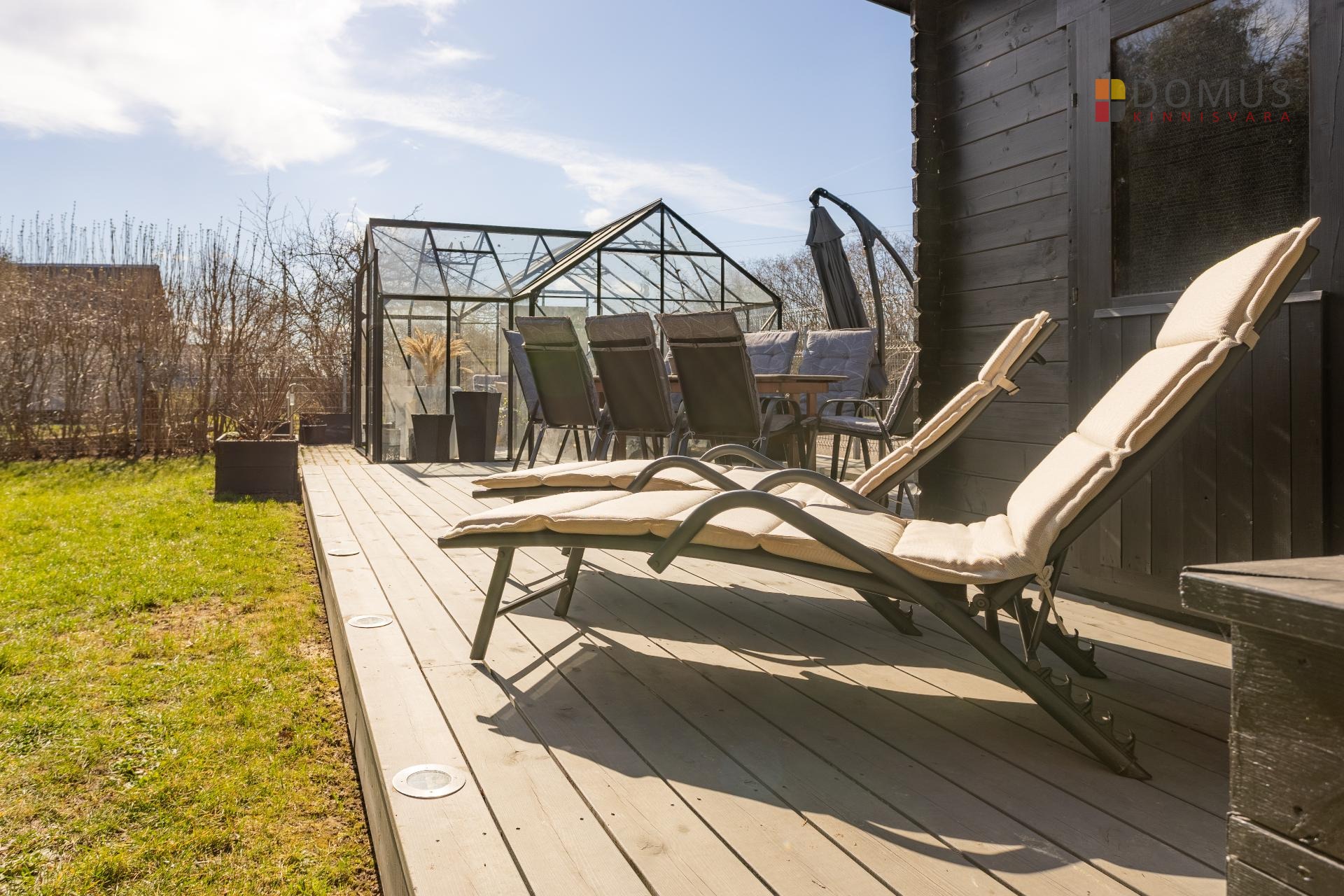 Rõdu suurusega 9.6 m², mis paikneb elutoa ning köögiakna all on mõnusalt privaatne ja valgusküllane. Privaatsust pakub aiaäärne kõrge elupuude hekk ja valgust lõunapoolne suund.