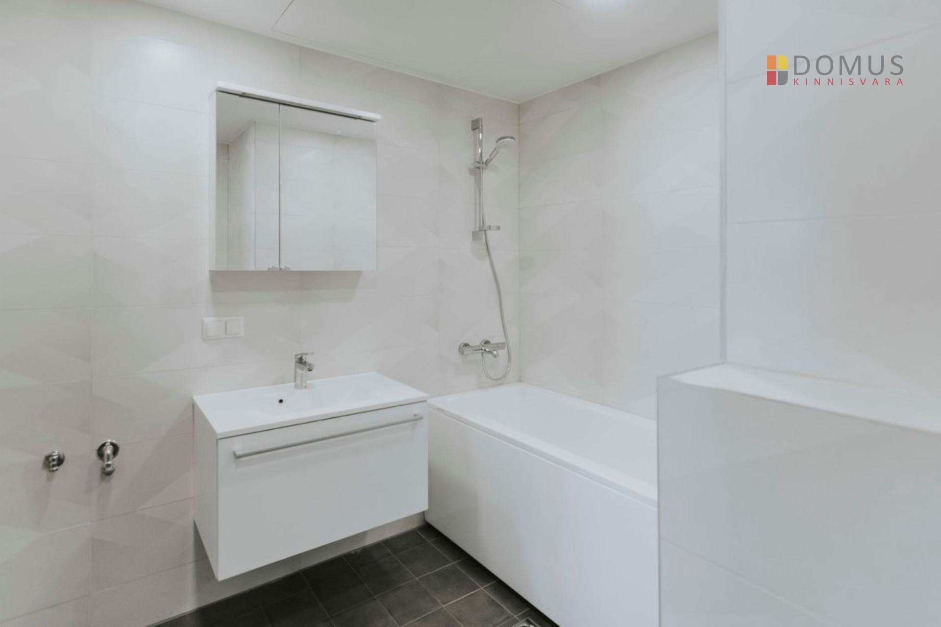 Korteris on hele naturaalne tamme spoon-parkett. Seinad heledates toonides. Keraamilised plaadid heledates toonides.