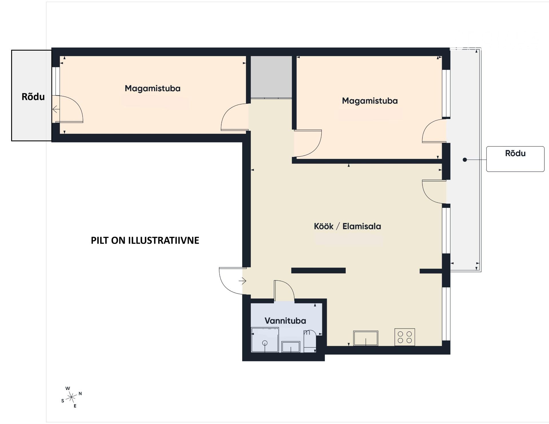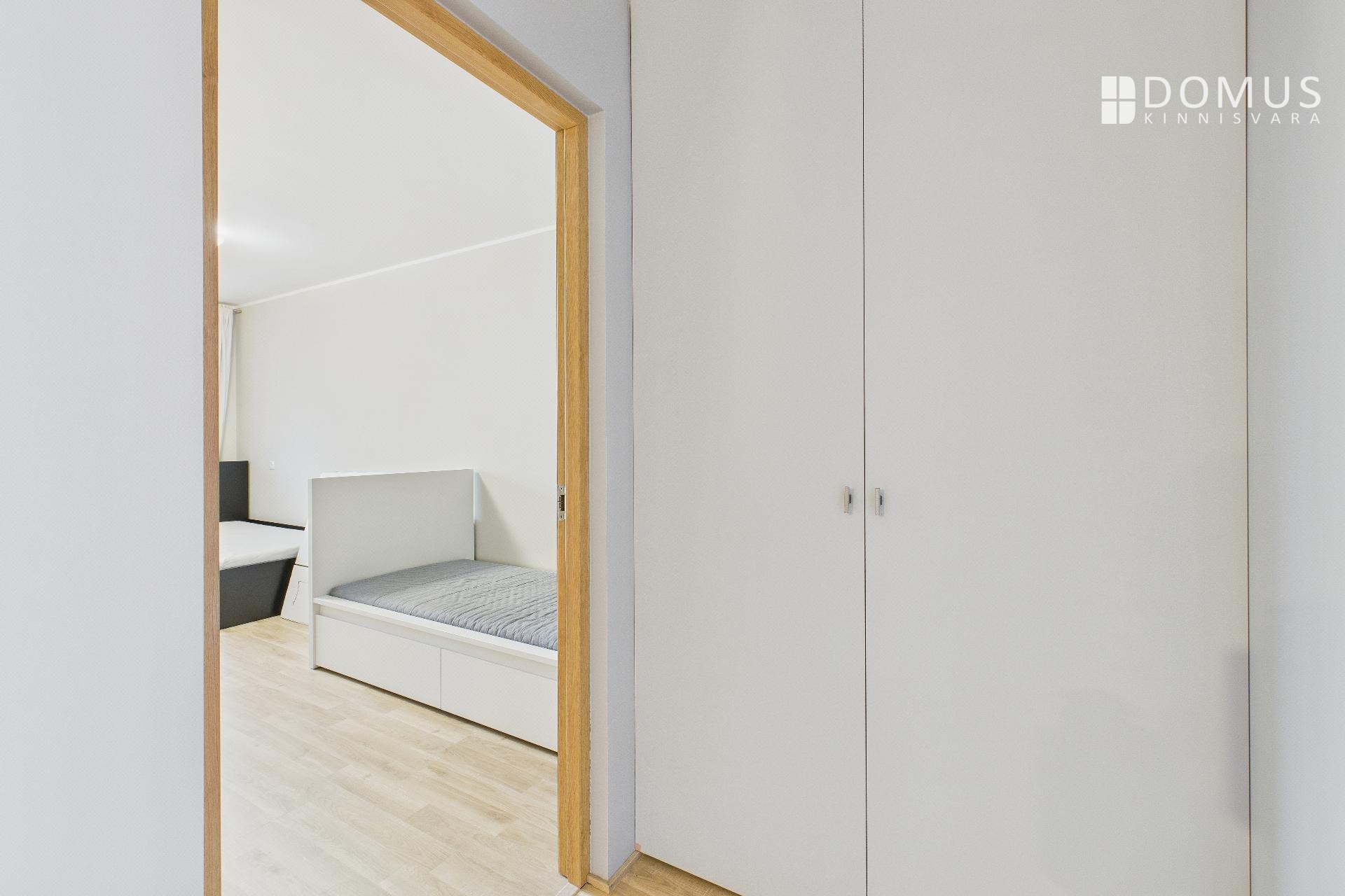 Korteris on kaks magamistuba, vannituba, sisseehitatud garderoob ja lausa kaks rõdu. Aknad avanevad nii lõuna- kui põhjasuunas – päikesevalgust jagub hommikust õhtuni.