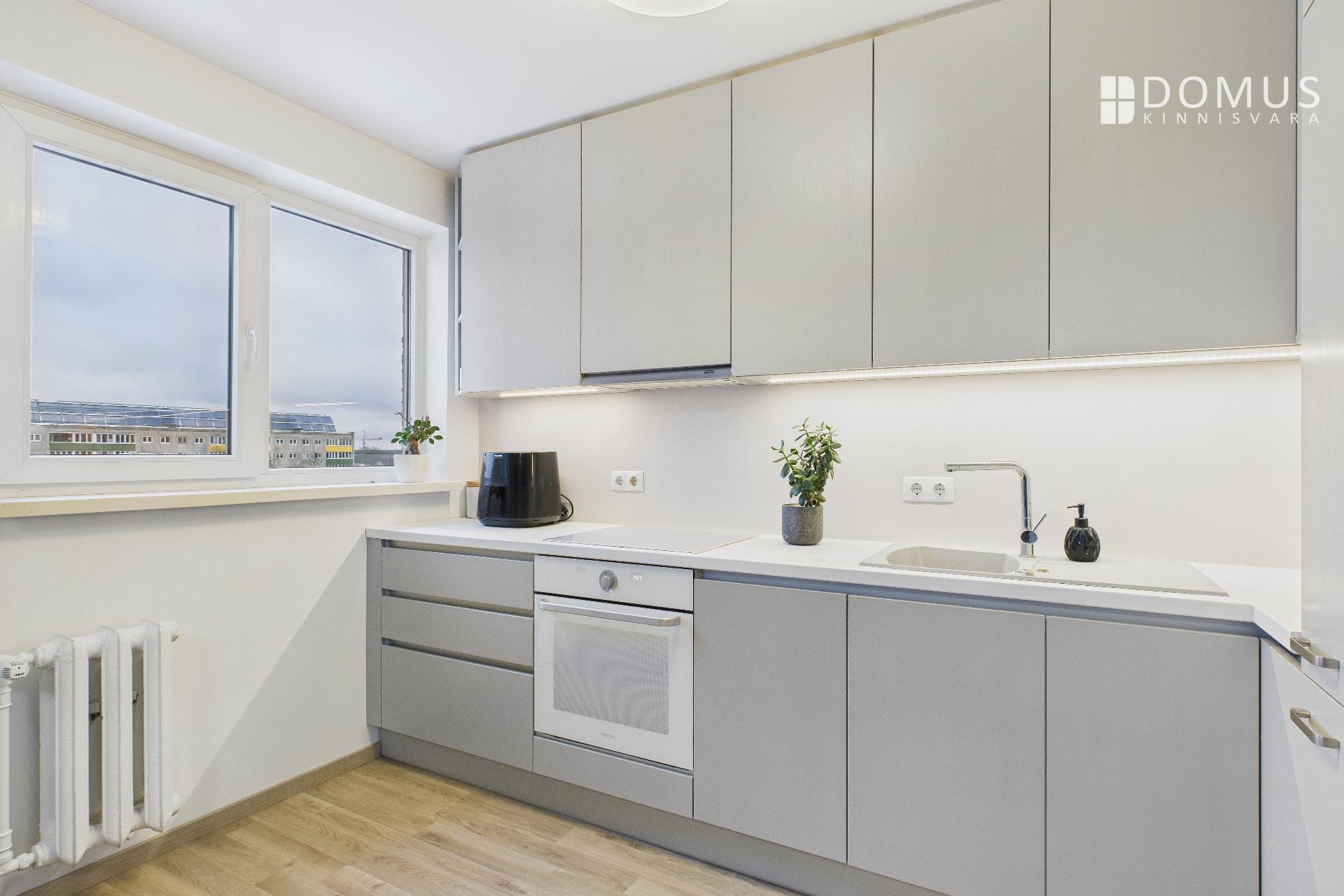 See korter on tõesti väga kenasti tehtud – täielikult renoveeritud ja kohe sissekolimiseks valmis. Köök on olemas koos kogu vajaliku sisseehitatud mööbli ja -tehnikaga, sh külmkapp, pliit, ahi, induktsioonpliit ja nõudepesumasin. Köögis, elutoas ja vannitoas on vahetatud elektrijuhtmestik ning kogu korteri ilmet on värskendatud.