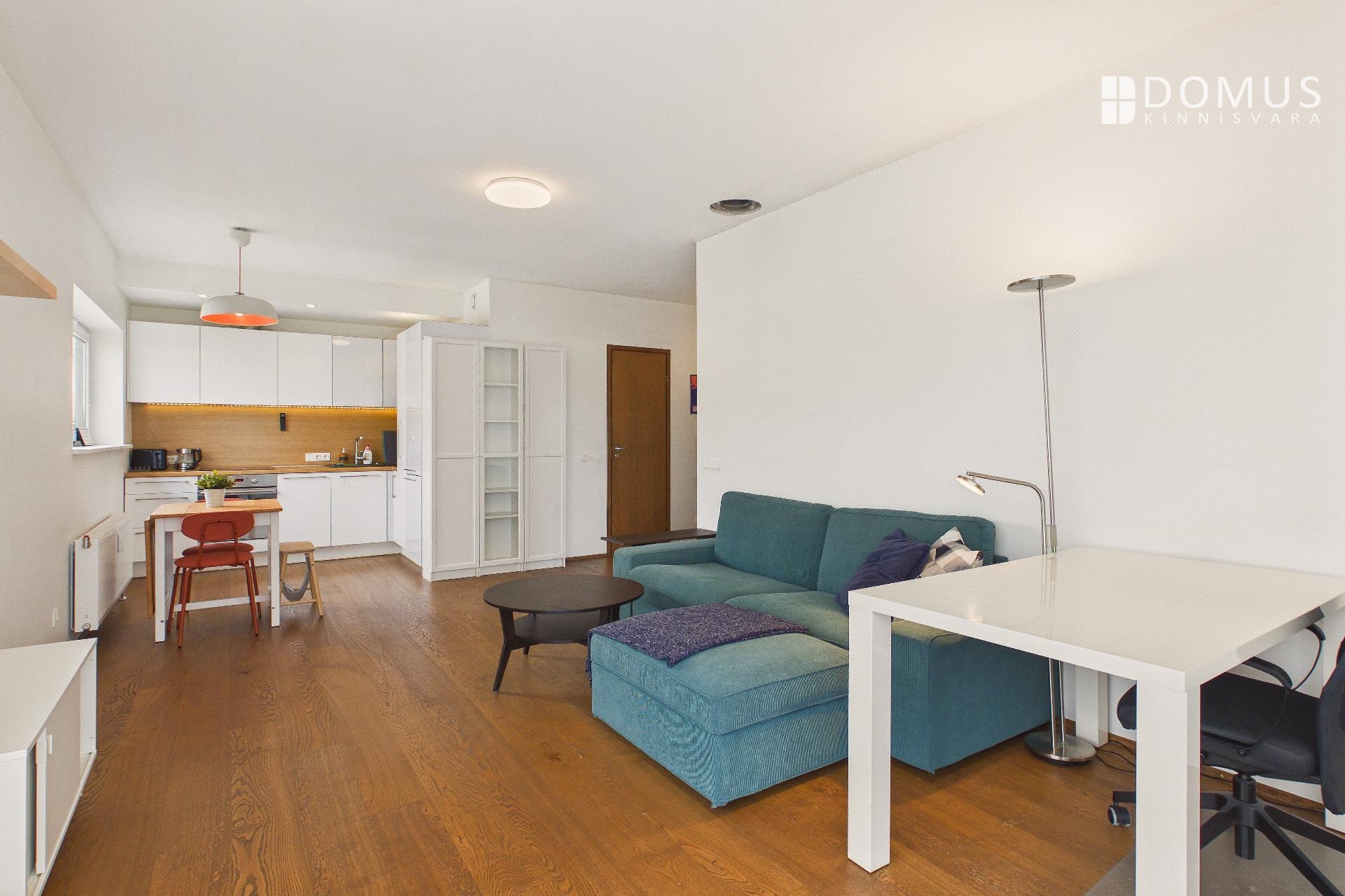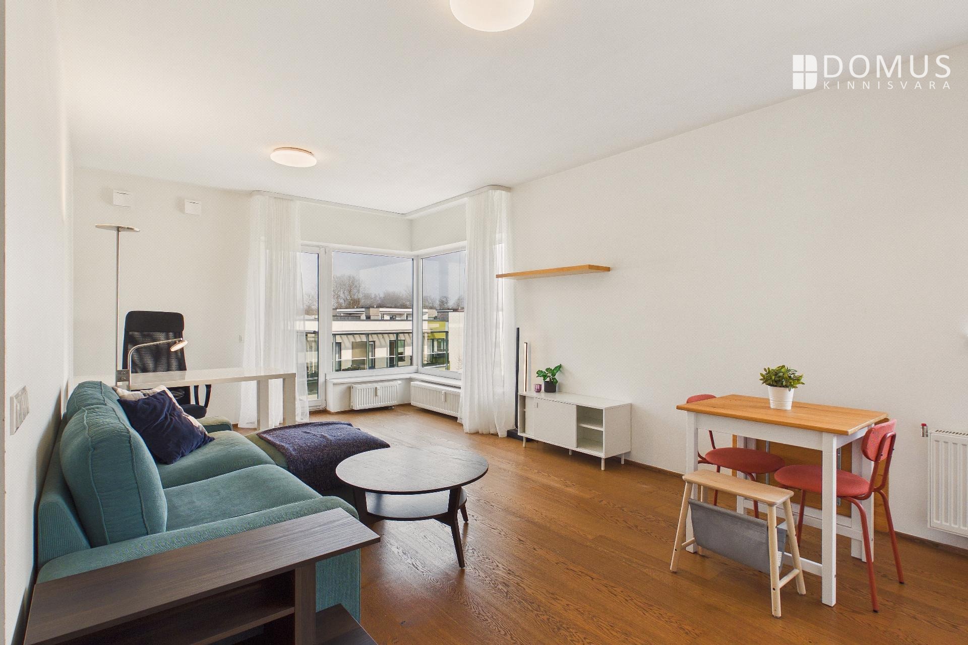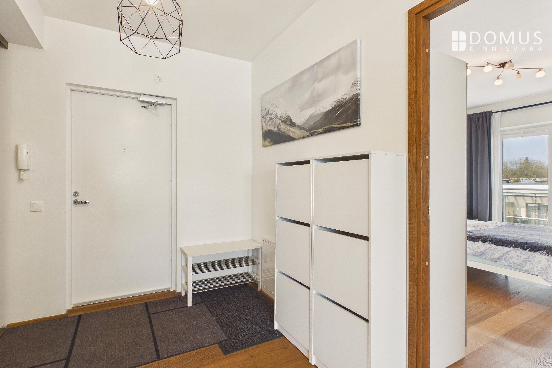 Korteris on avar esik walk-in garderoobikapiga, magamistuba, elutuba koos avatud köögiga ning WC-vannituba. Rõdule pääseb nii magamistoast kui ka elutoast ning rõdul on olemas grill.