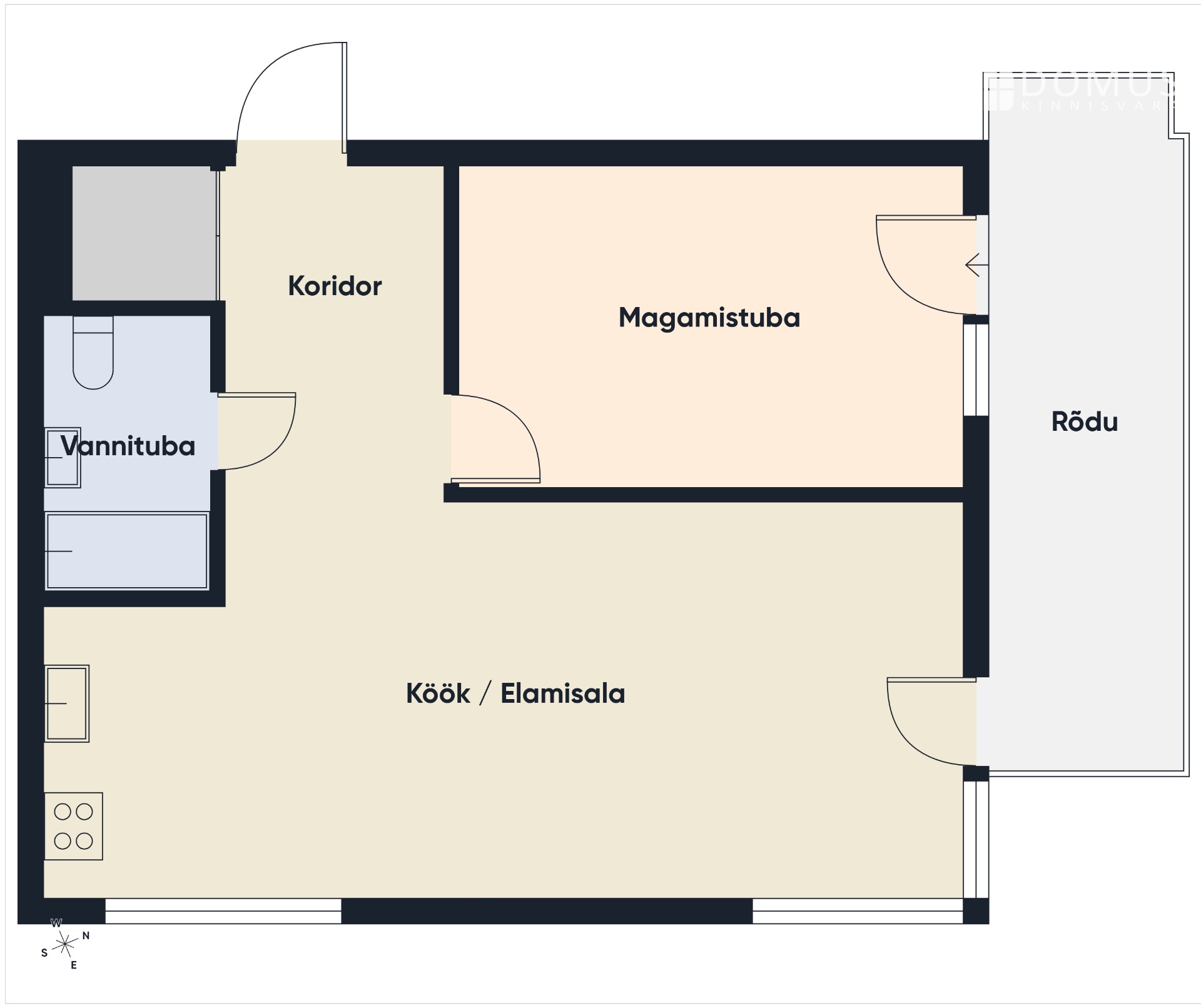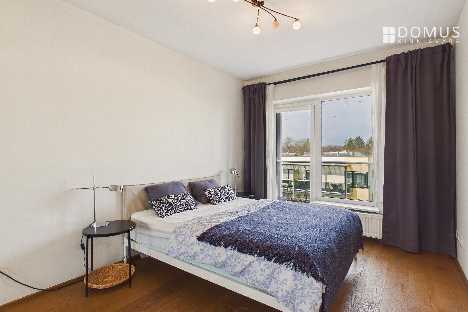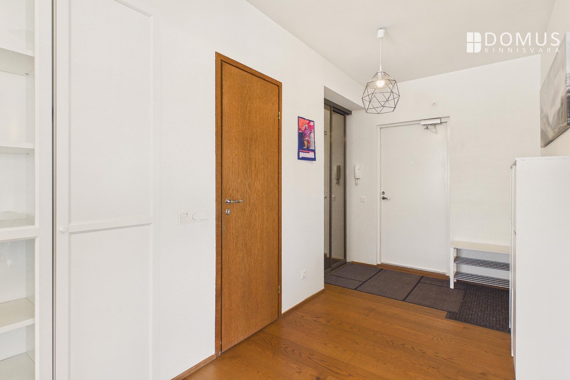 Korteris on avar esik walk-in garderoobikapiga, magamistuba, elutuba koos avatud köögiga ning WC-vannituba. Rõdule pääseb nii magamistoast kui ka elutoast ning rõdul on olemas grill.