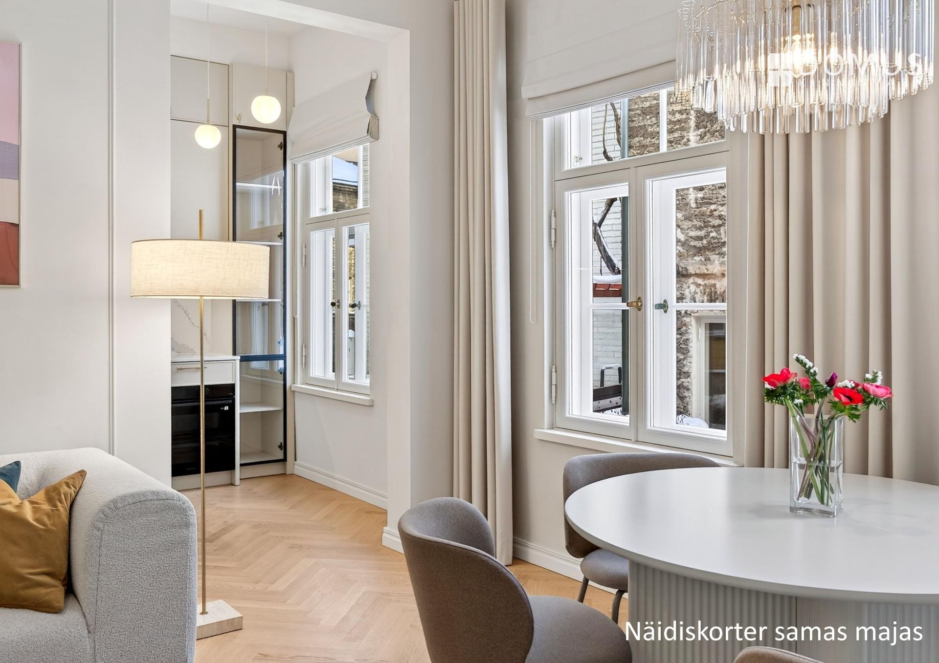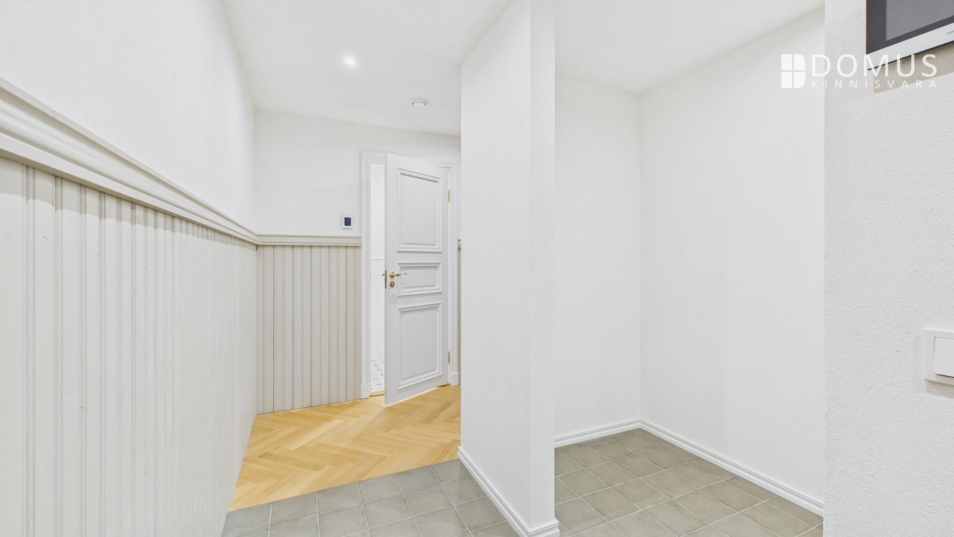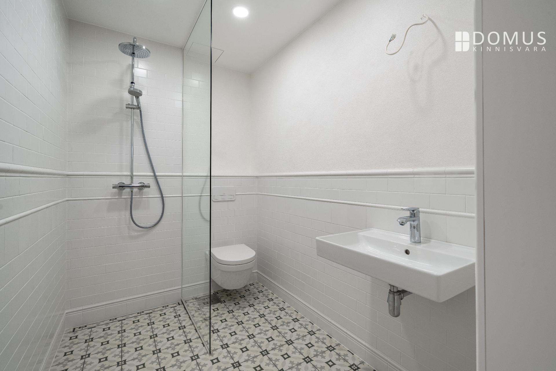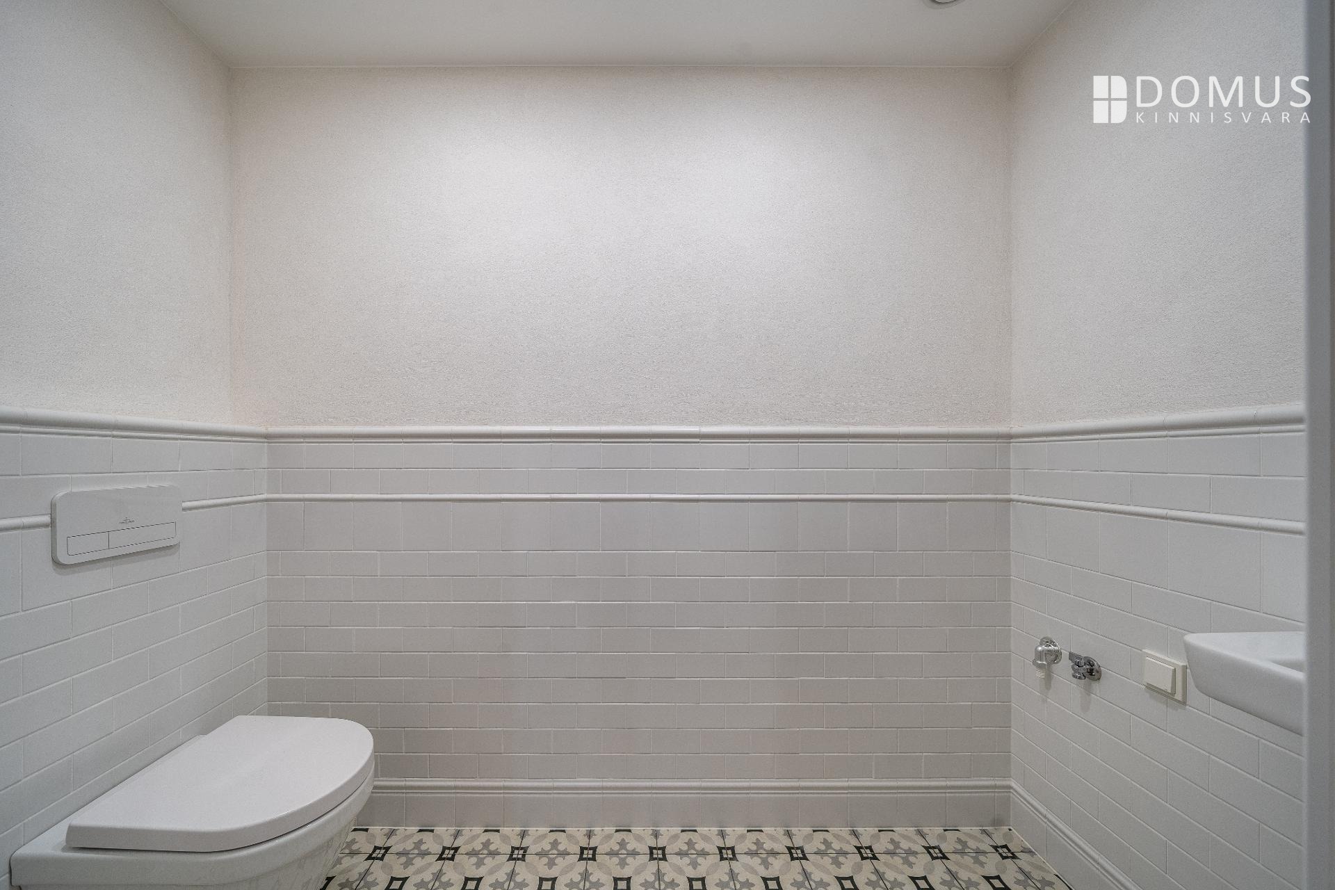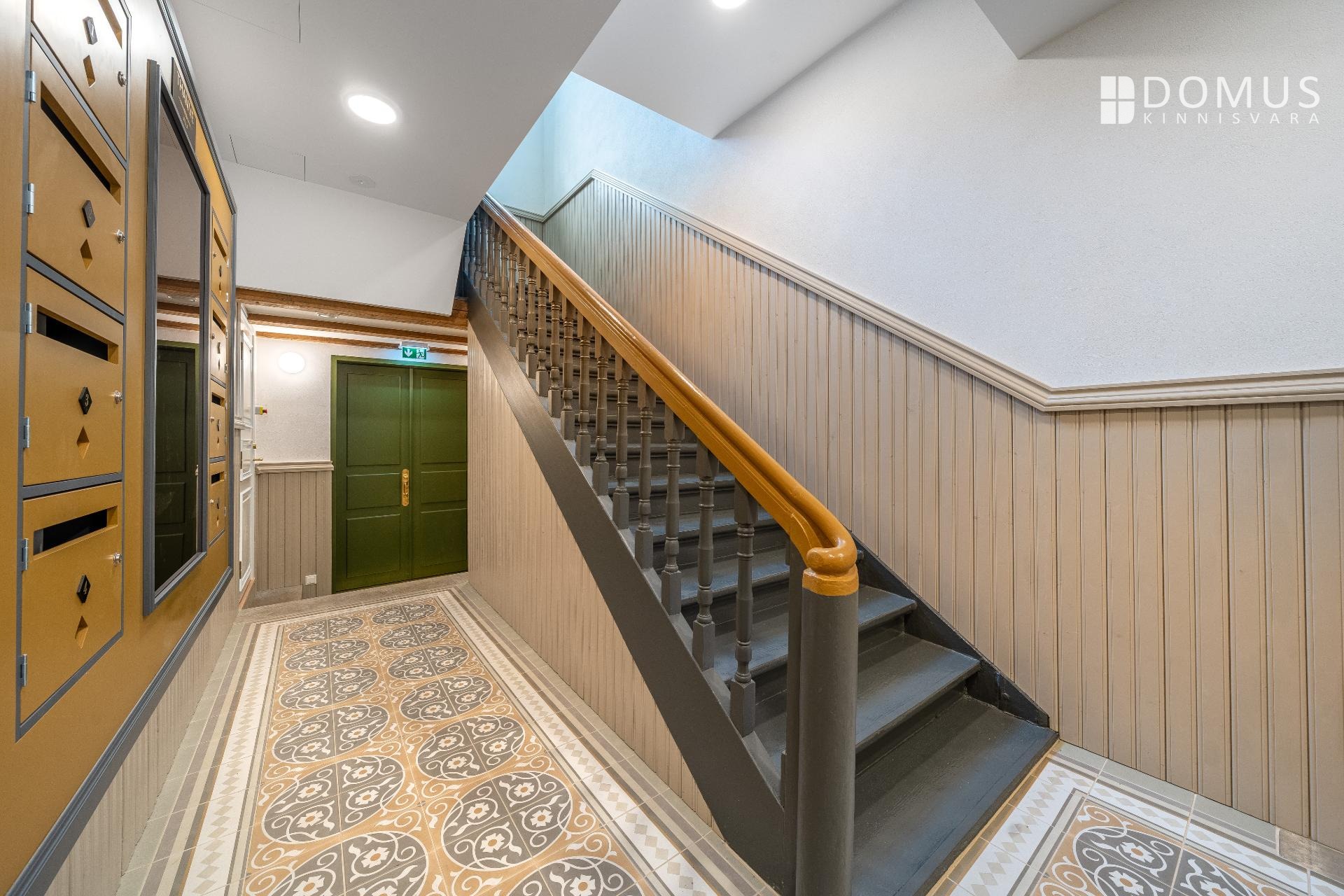 Muinsuskaitsealusele majale väärikalt rõhutasime selle ajastut kvaliteetsete materjalidega tänapäevases võtmes. Puitparkett kalasabamustris, puitlaudis esikuseintel ja elutoa laes, ehisdetailidega keraamilised plaadid vannitoas. Korteri seinu katab samuti looduslik materjal - lubikrohv, mis jätab kergelt struktuurse lõpptulemuse ja on omaette vaatamist väärt.