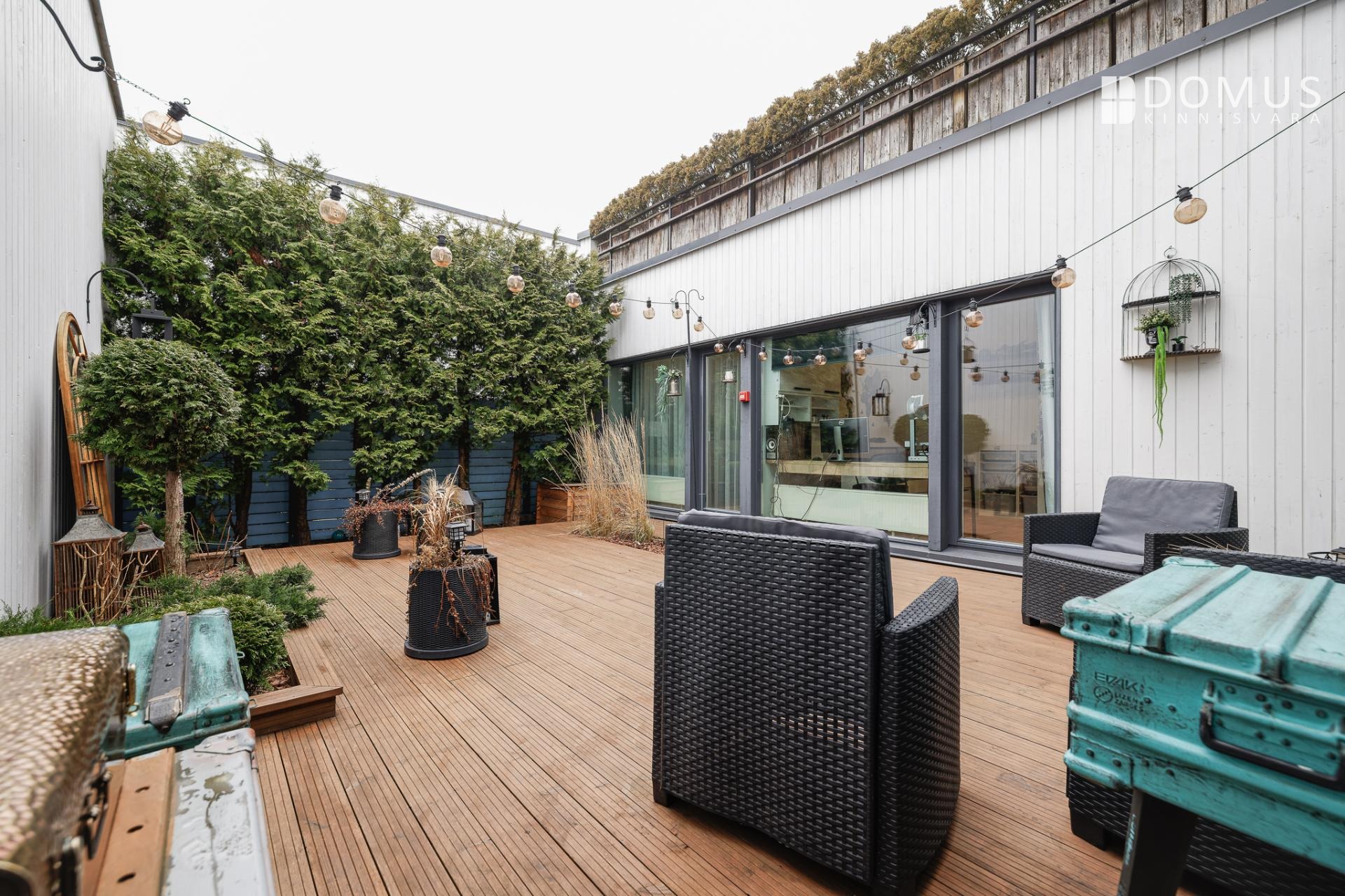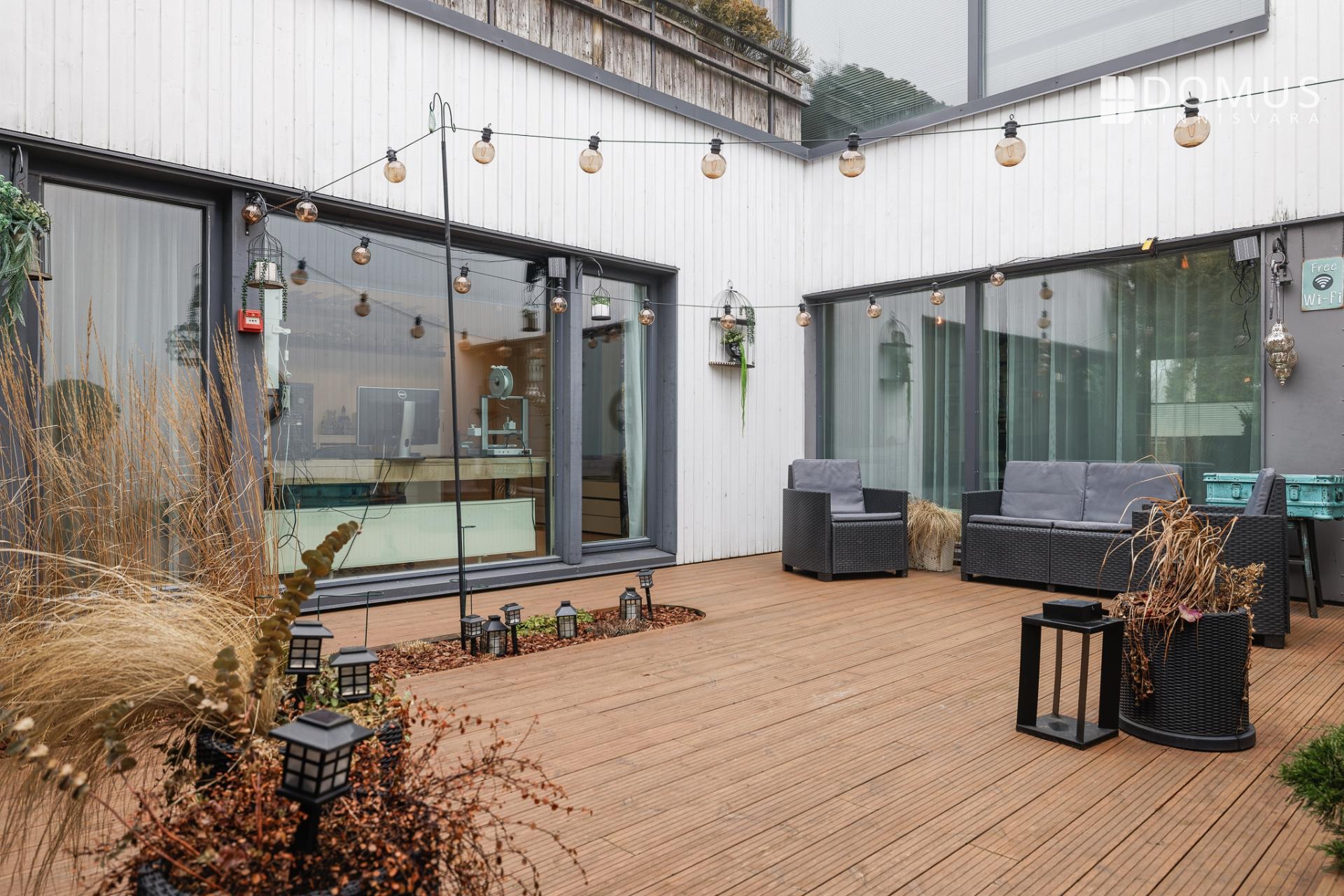 Privaatne ja päikeseline terrass, kuhu pääseb igast toast, on ideaalne paik hommikukohviks, õhtuseks lõõgastumiseks või grillimiseks. Terrassile pääseb elutoast ja kahest magamistoast – kodu südameks on avar köök-elutuba ning juveeliks päikeseline terrass.