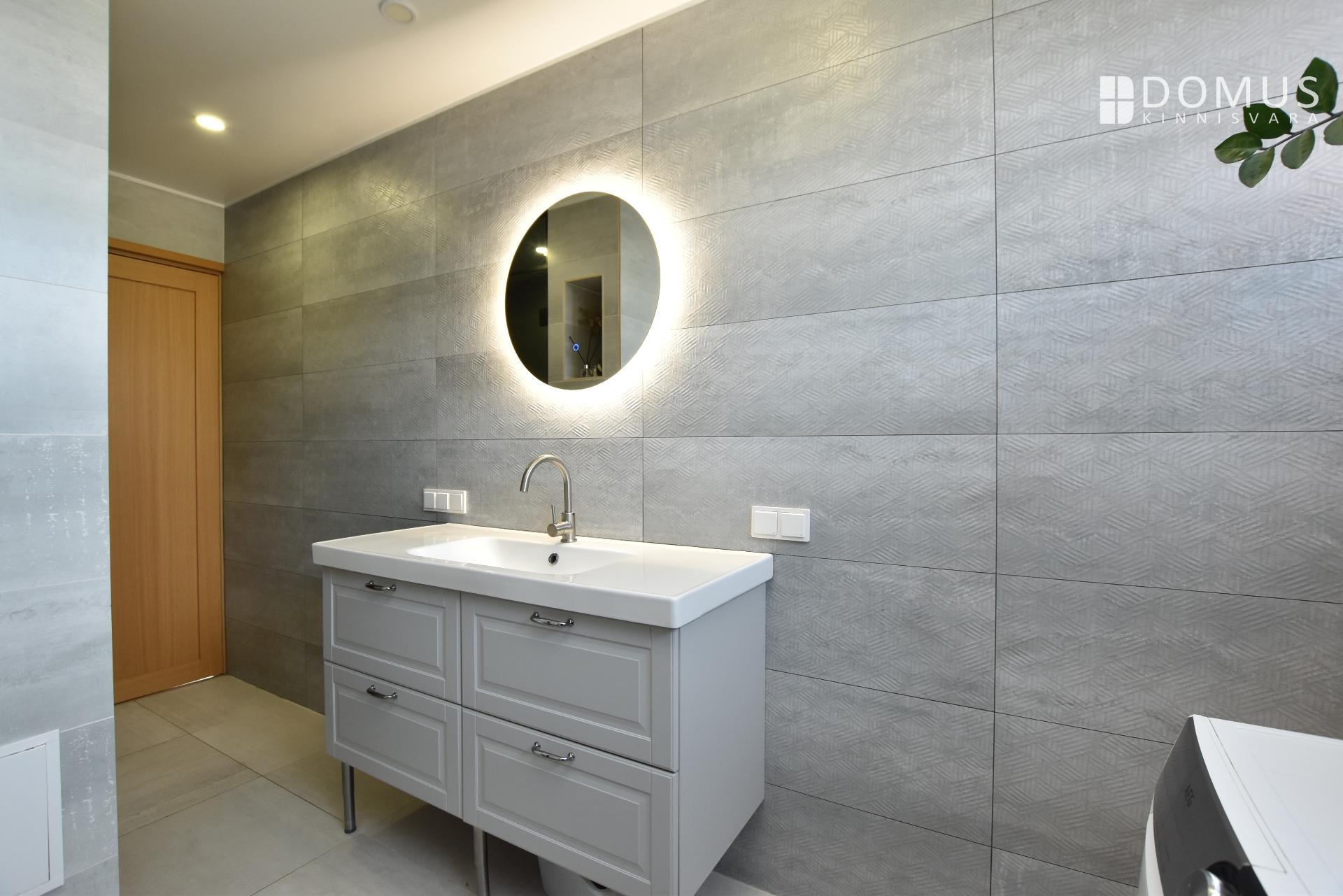 Esikus on sisseehitatud mahukas lükandustega garderoobikapp. Tubade põrandaid katab naturaalne puitparkett, vannitoas kvaliteetsed keraamilised plaadid, tubade seinad on kaetud lubikrohvi ja -värviga.