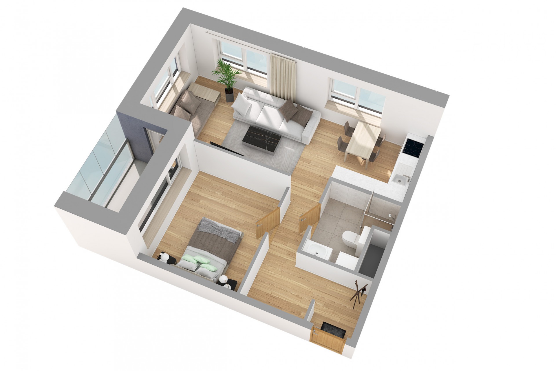 – Planeering: avar elutuba koos köögiga, eraldi magamistuba, vannituba ja esik