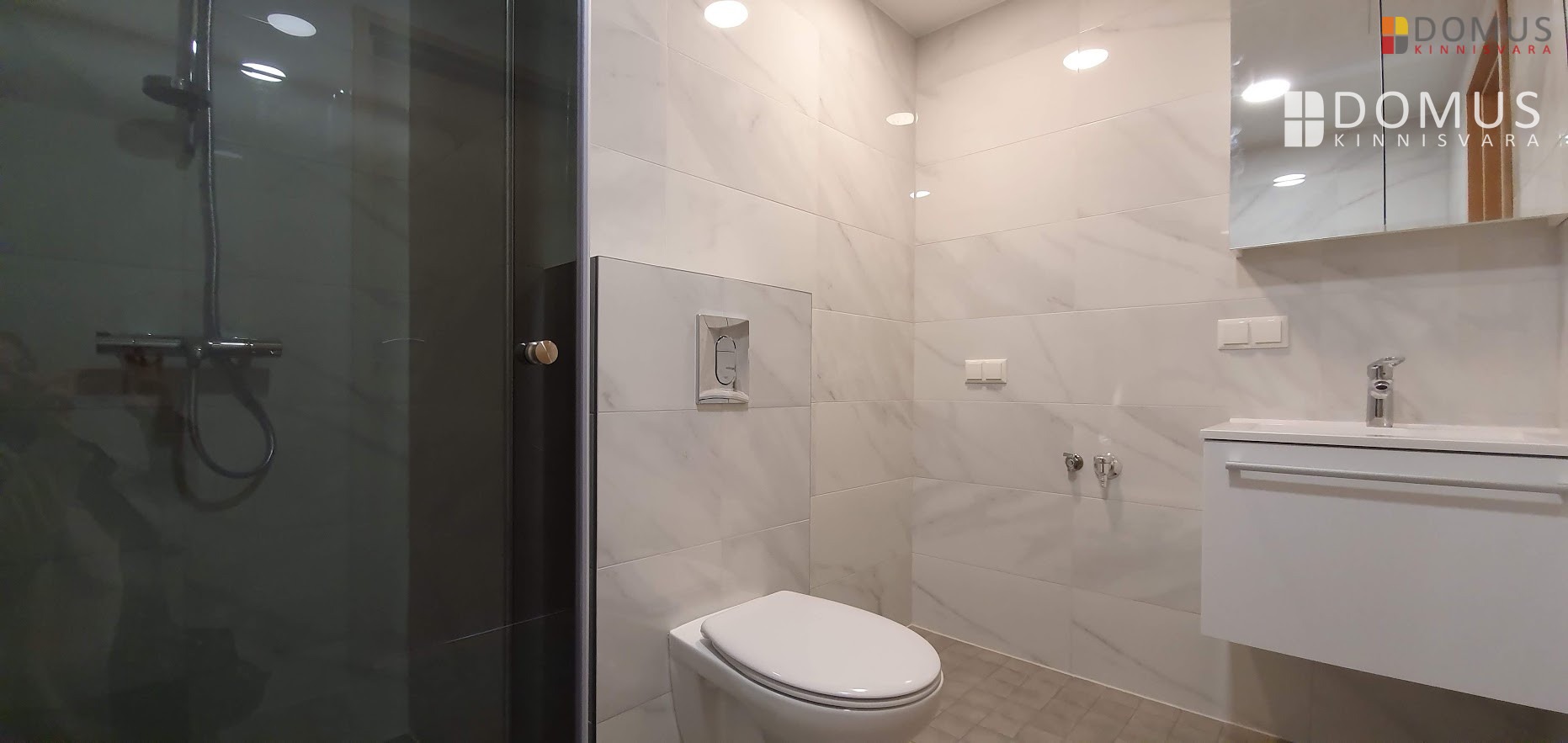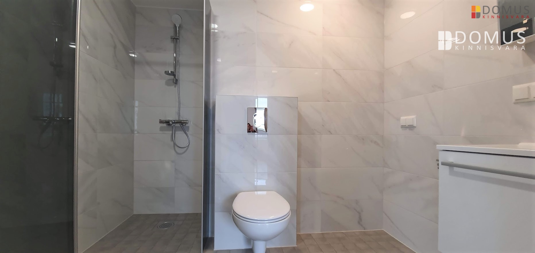 – Siseviimistlus: heledates toonides modernne stiil, naturaalne tammespoon-parkett, kõrged aknad ja laed loovad avarust ja valgust. Vannitoas keraamilised plaadid, dušinurk, pesumasin, kapiga kraanikauss ja peegel